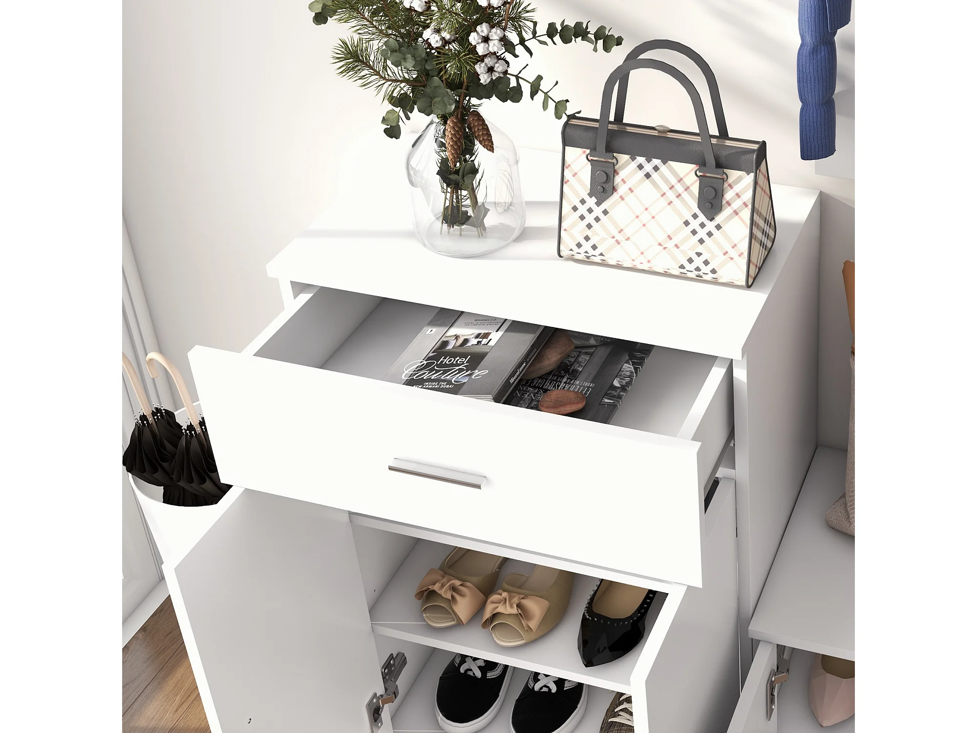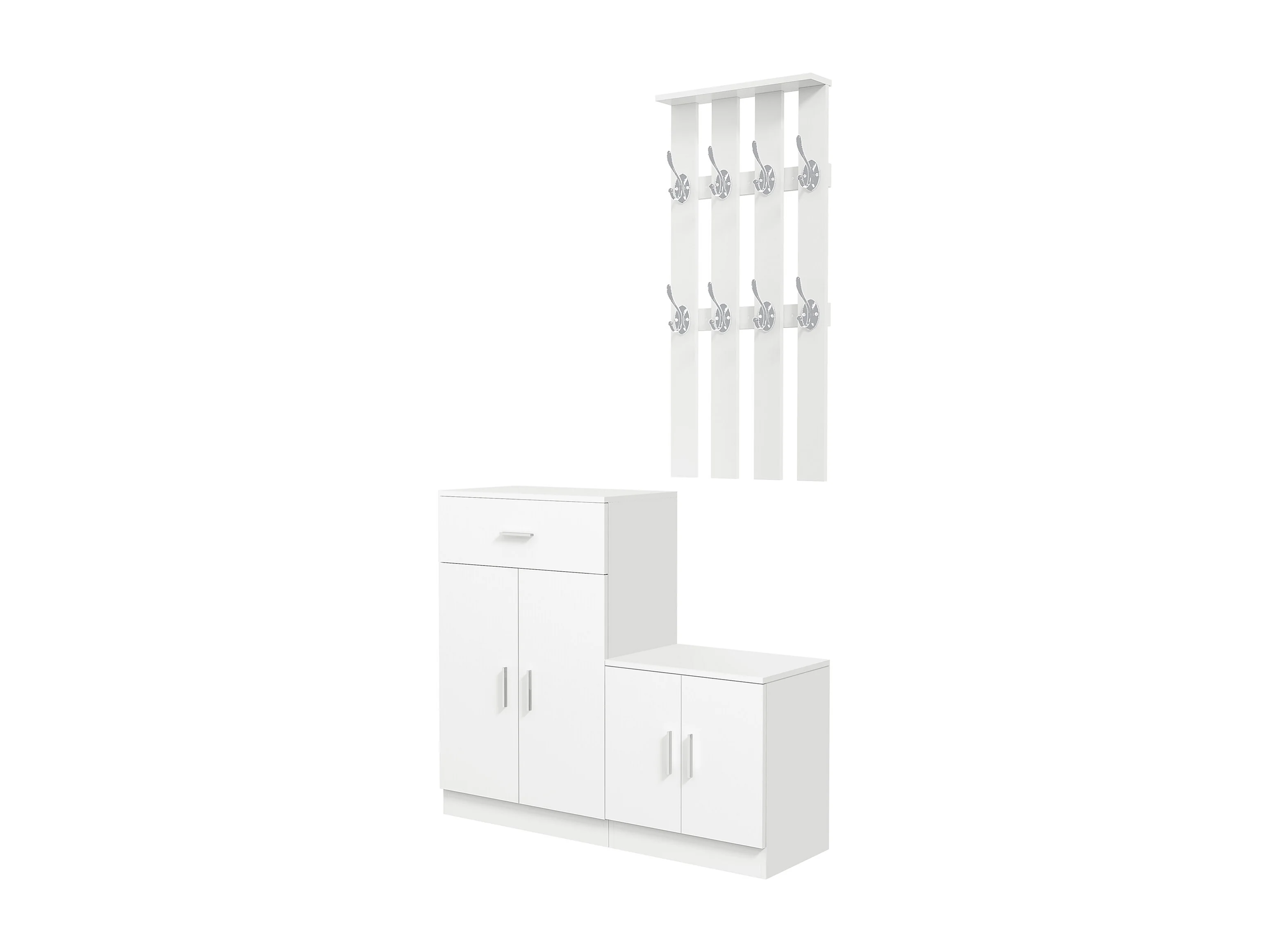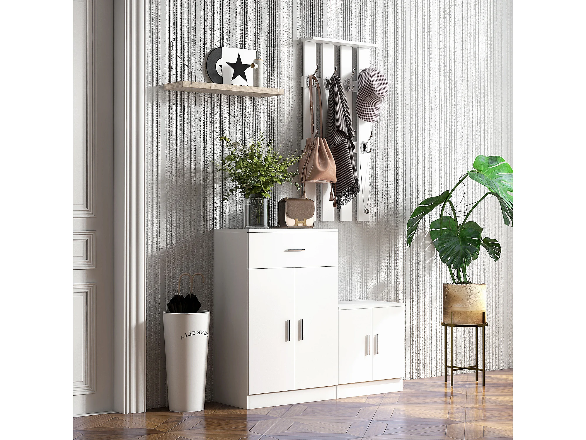 Mobile da ingresso appendiabiti con scarpiera in legno bianco