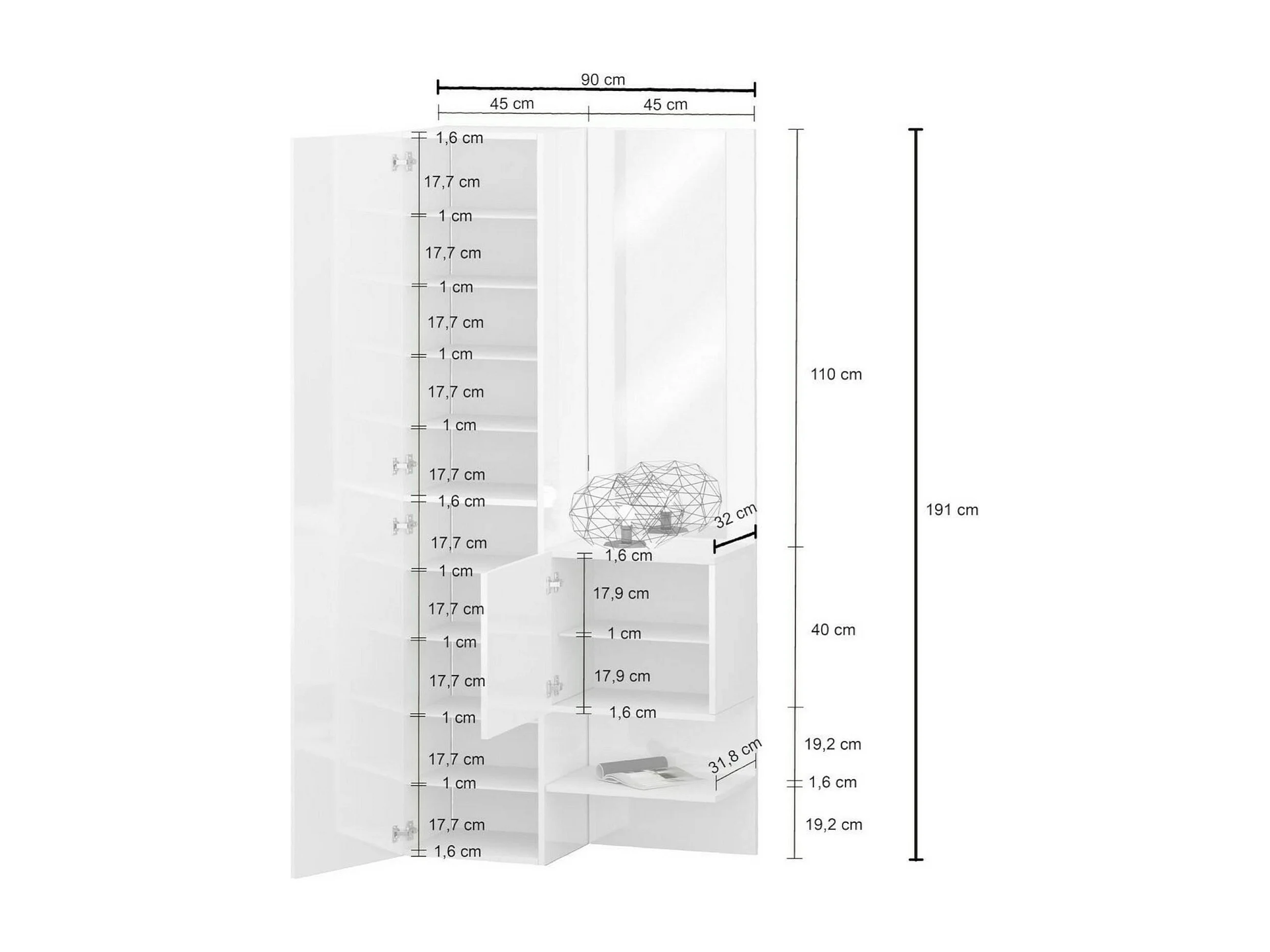Mobile da Ingresso Bauladu, Specchio Incluso Made in Italy, 35x90x190h cm Bianco
