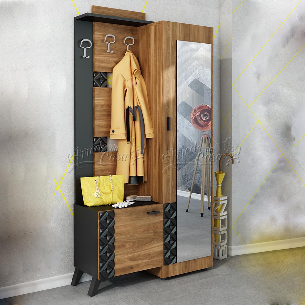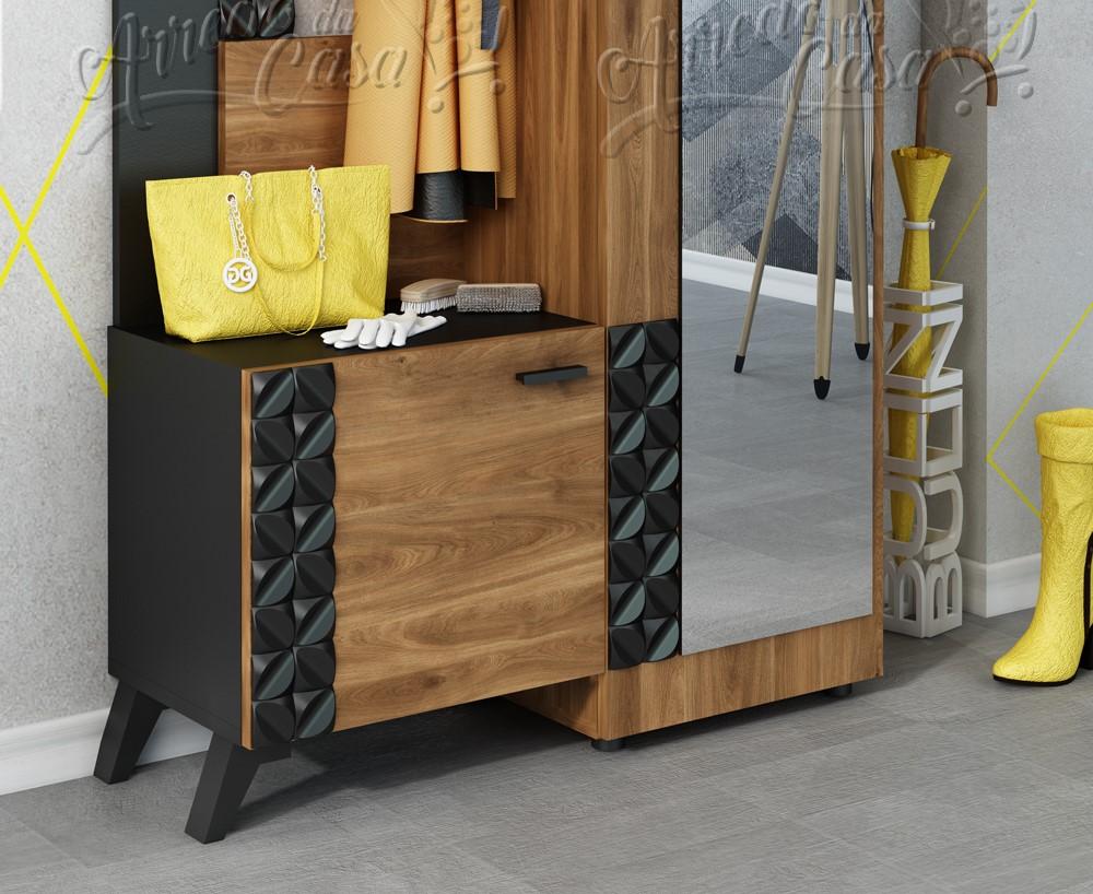 Mobile da ingresso con specchio 104x198,5 nero e castagno naturale IU24