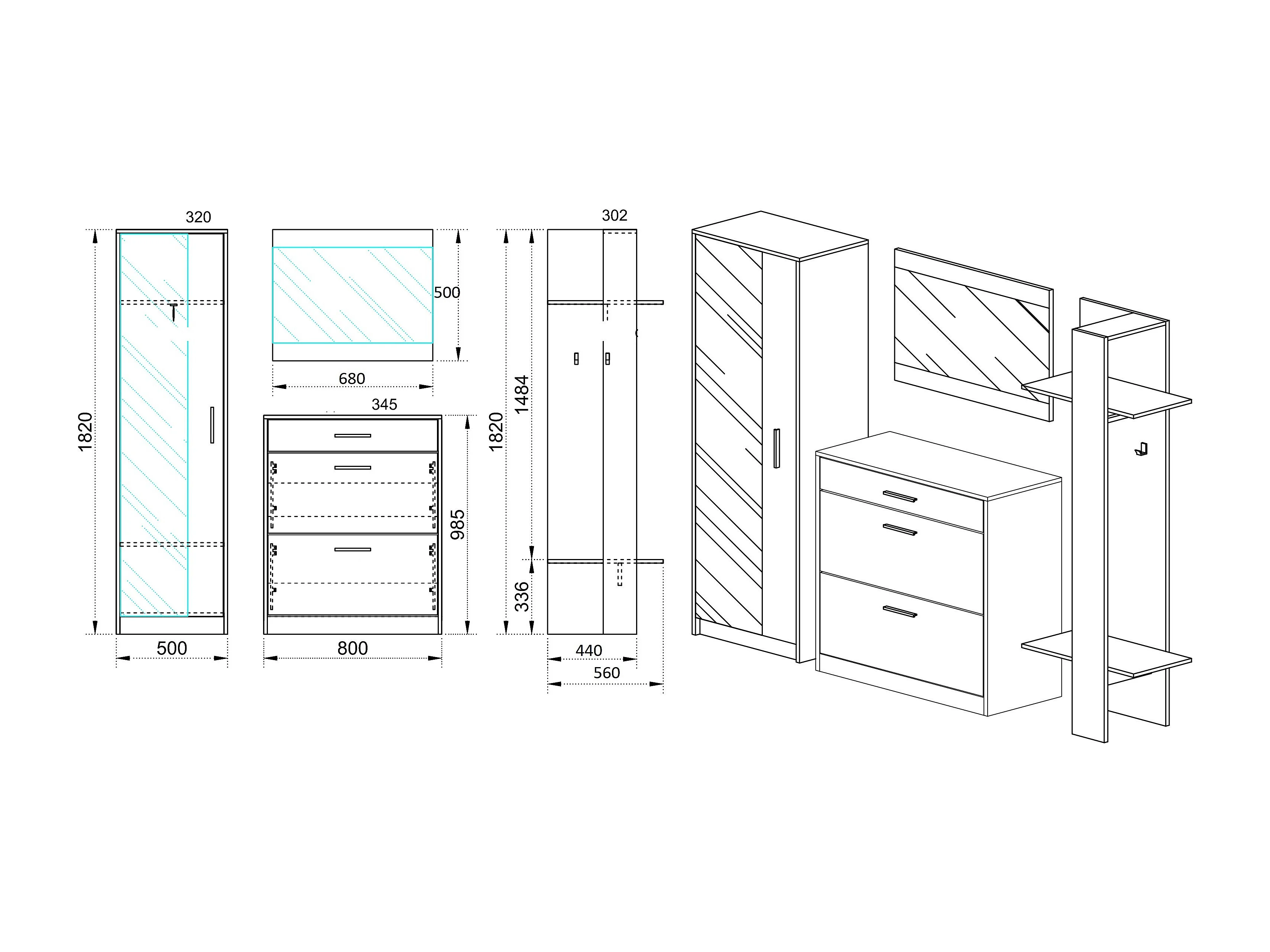Mobile ingresso con specchio e ripiani117x188,5 grigio e rovere chiaro IU17