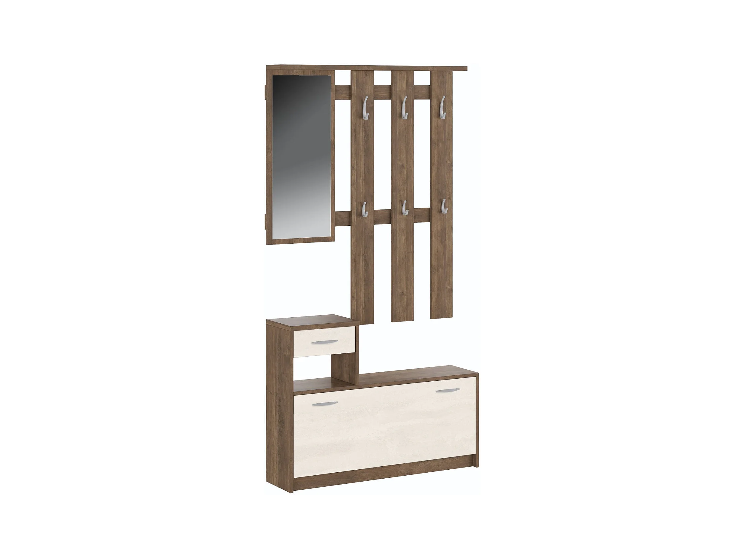 Mobile da ingresso Clint, Entratina moderna con specchio, Mobile con scarpiera, Armadietto multifunzione, 100x25h180 cm, Bianco e Quercia