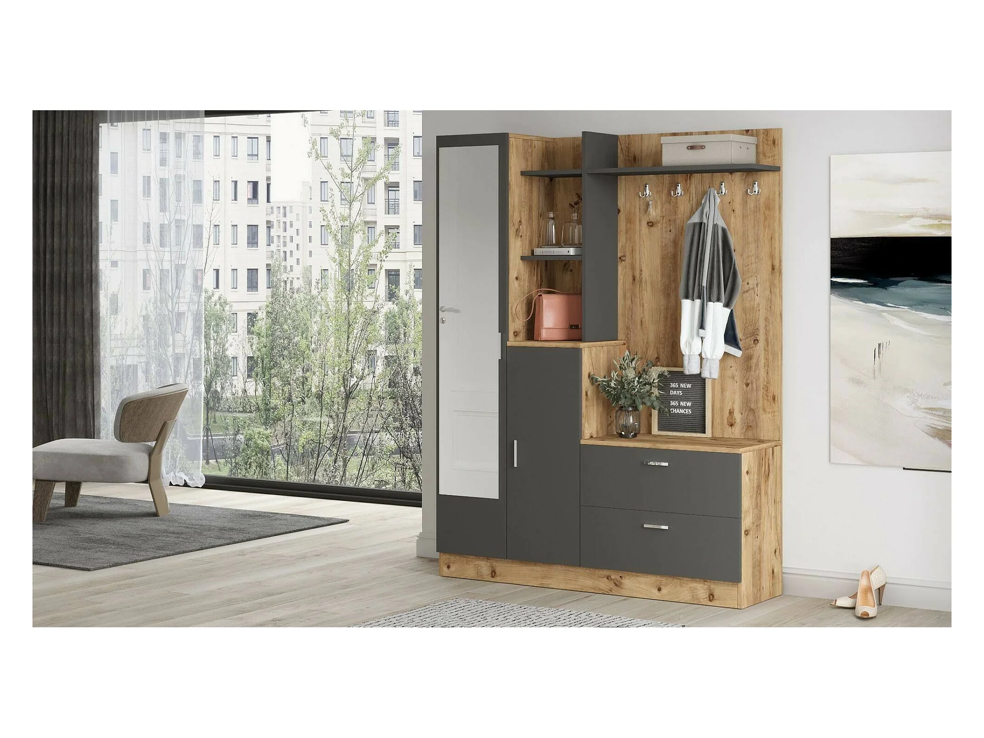 Dmora - Mobile da ingresso Artin, 187x38h180 cm, Quercia e Antracite