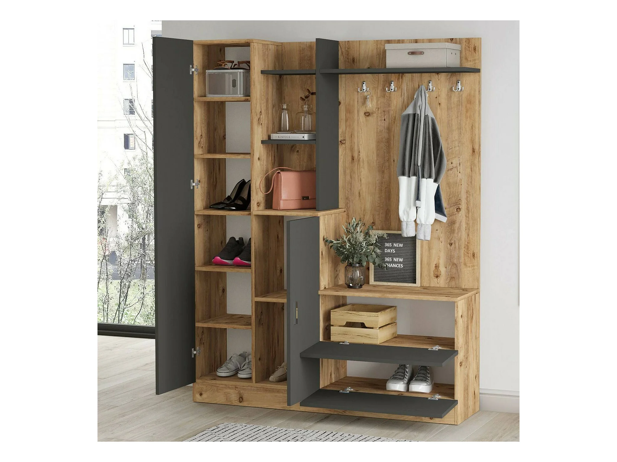 Dmora - Mobile da ingresso Anumali, 140x37h182 cm, Quercia e Antracite