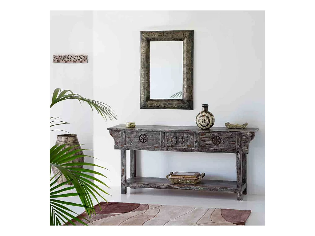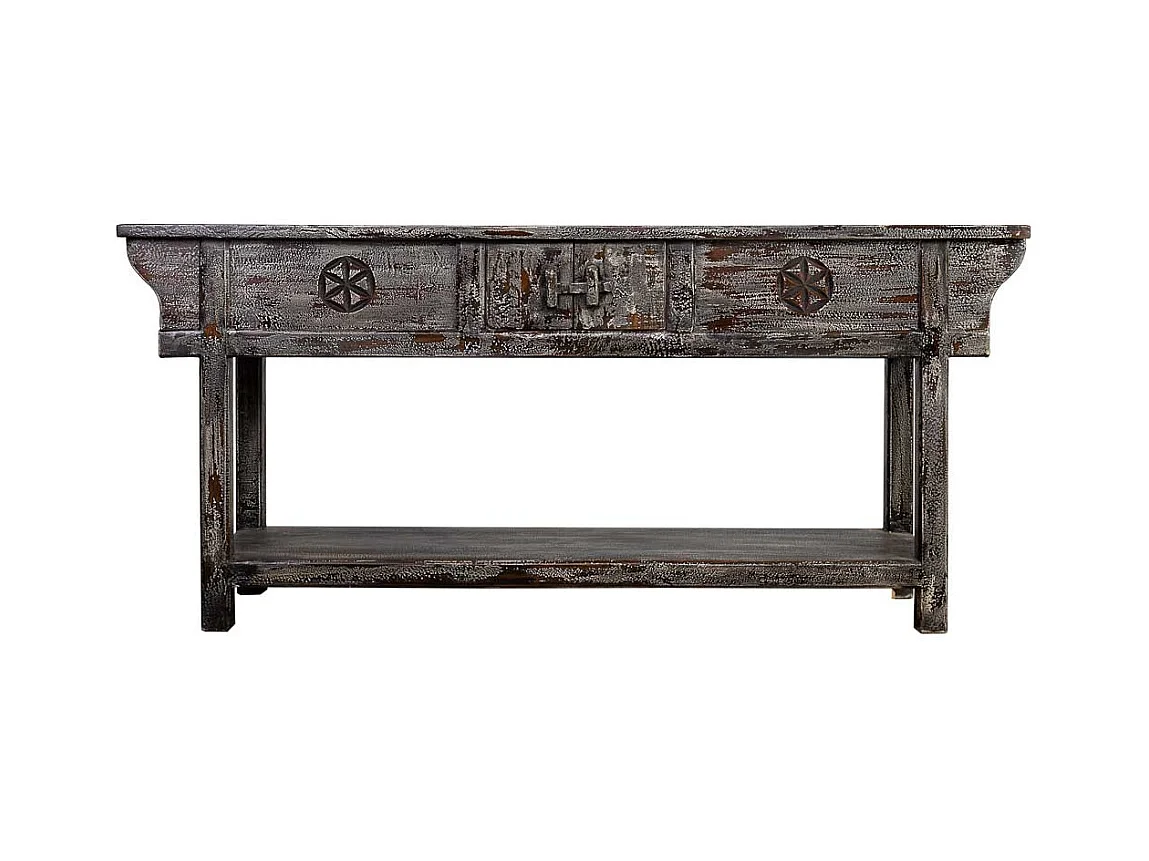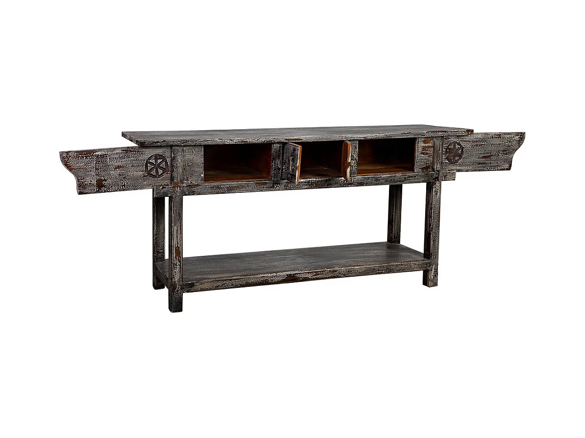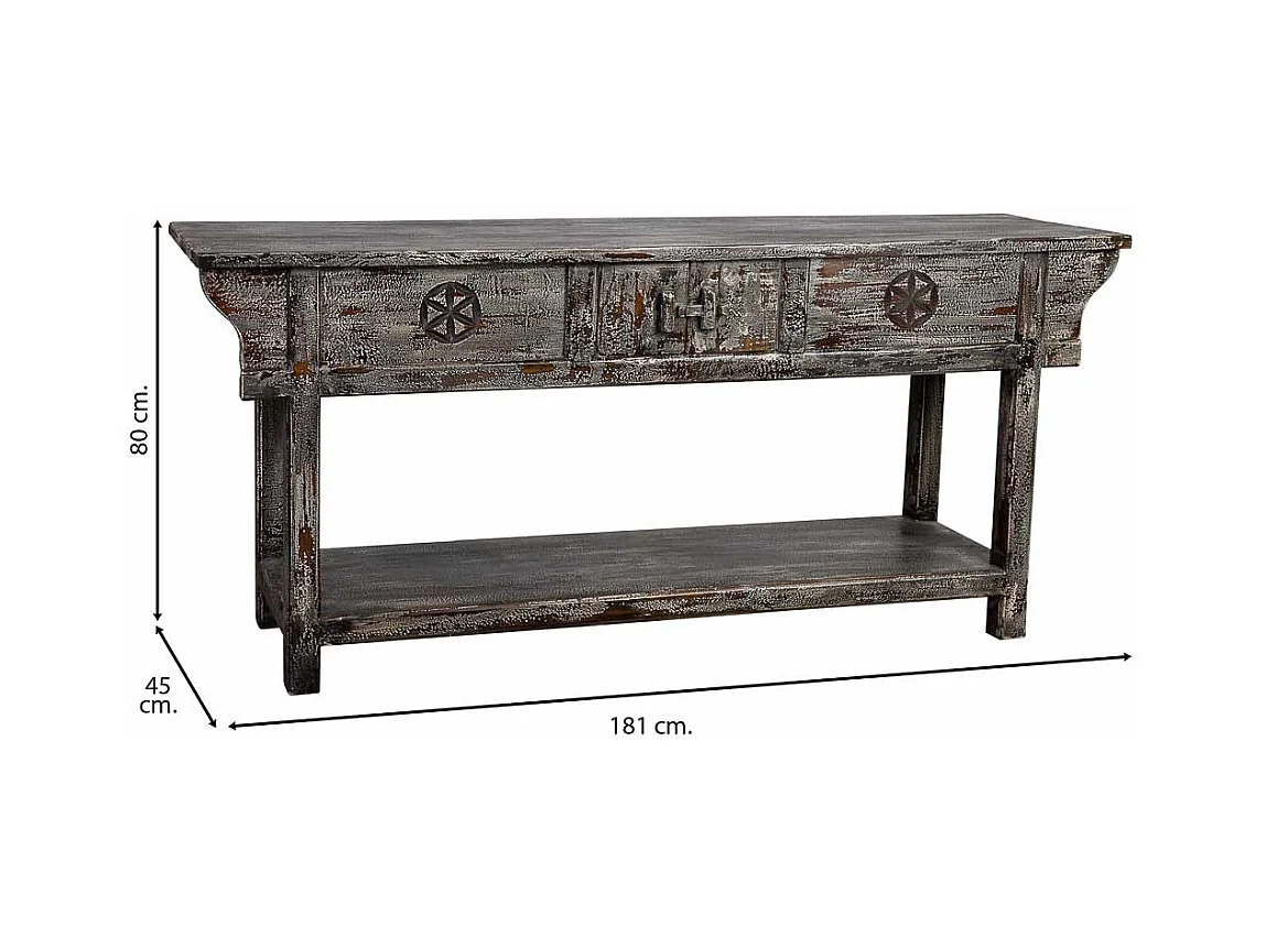 Console in legno con 4 cassetti finitura invecchiata 142,5x42x85h cm
