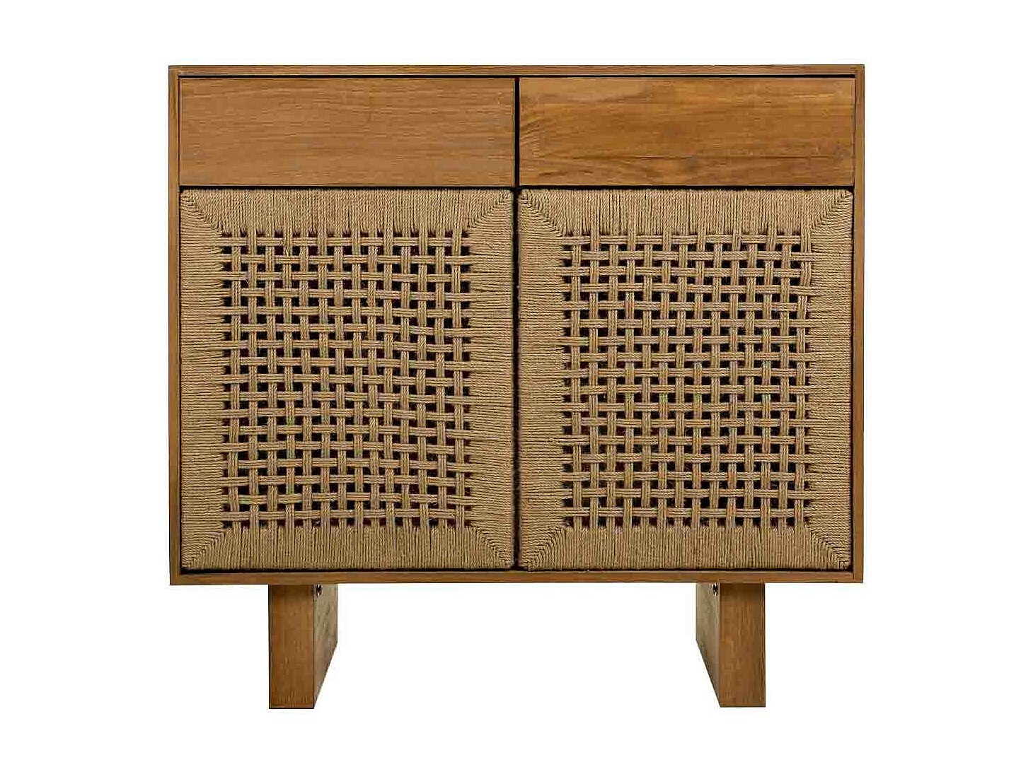 Mobile da ingresso in legno e corda intrecciata marrone 80x36x75h