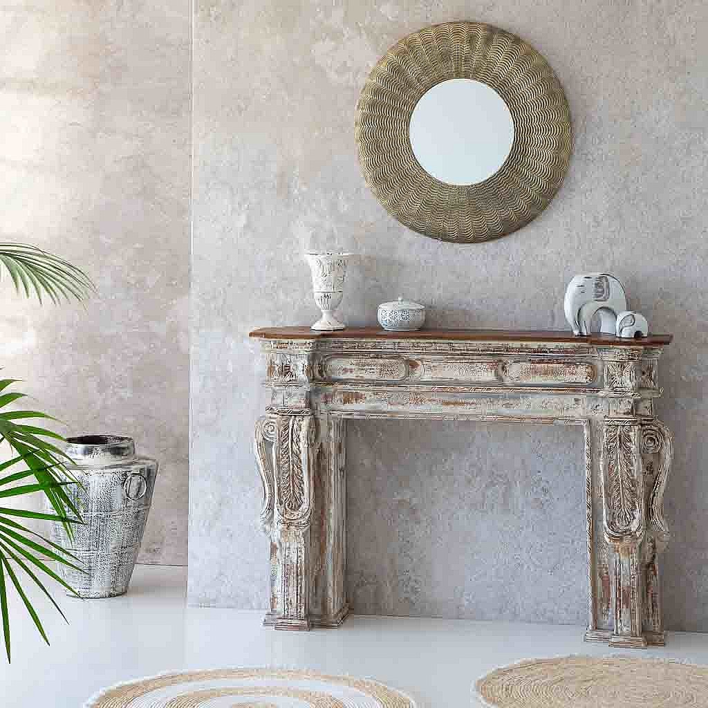 Mobile da ingresso in legno bianco intagliato 80x36x83h