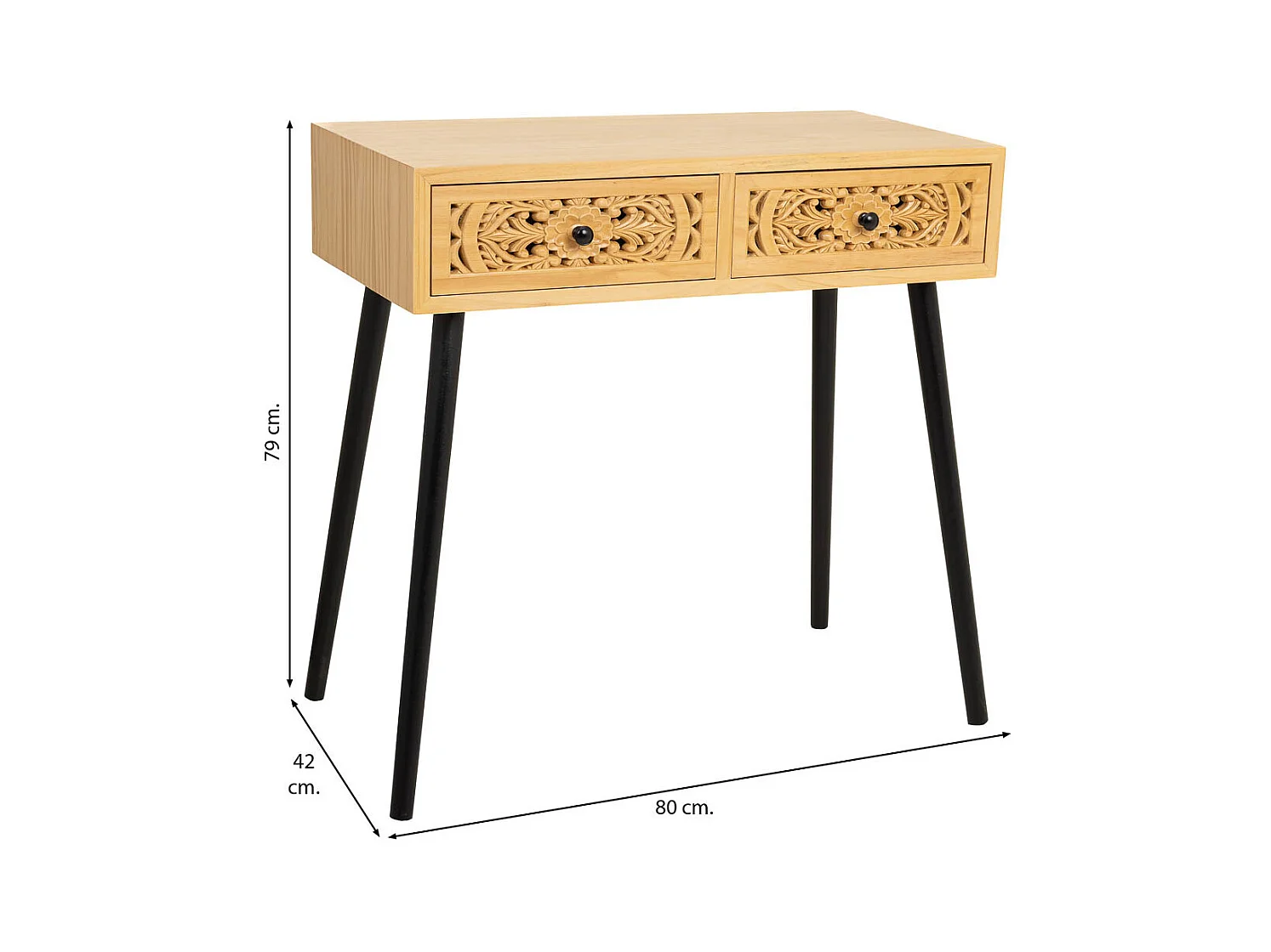 Consolle Hill con 2 cassetti 110x45x74 cm Legno di pino massiccio