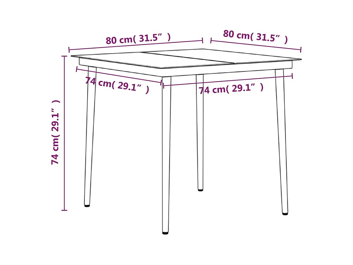 Set di tavolo e sedie da giardino rettangolare in metallo