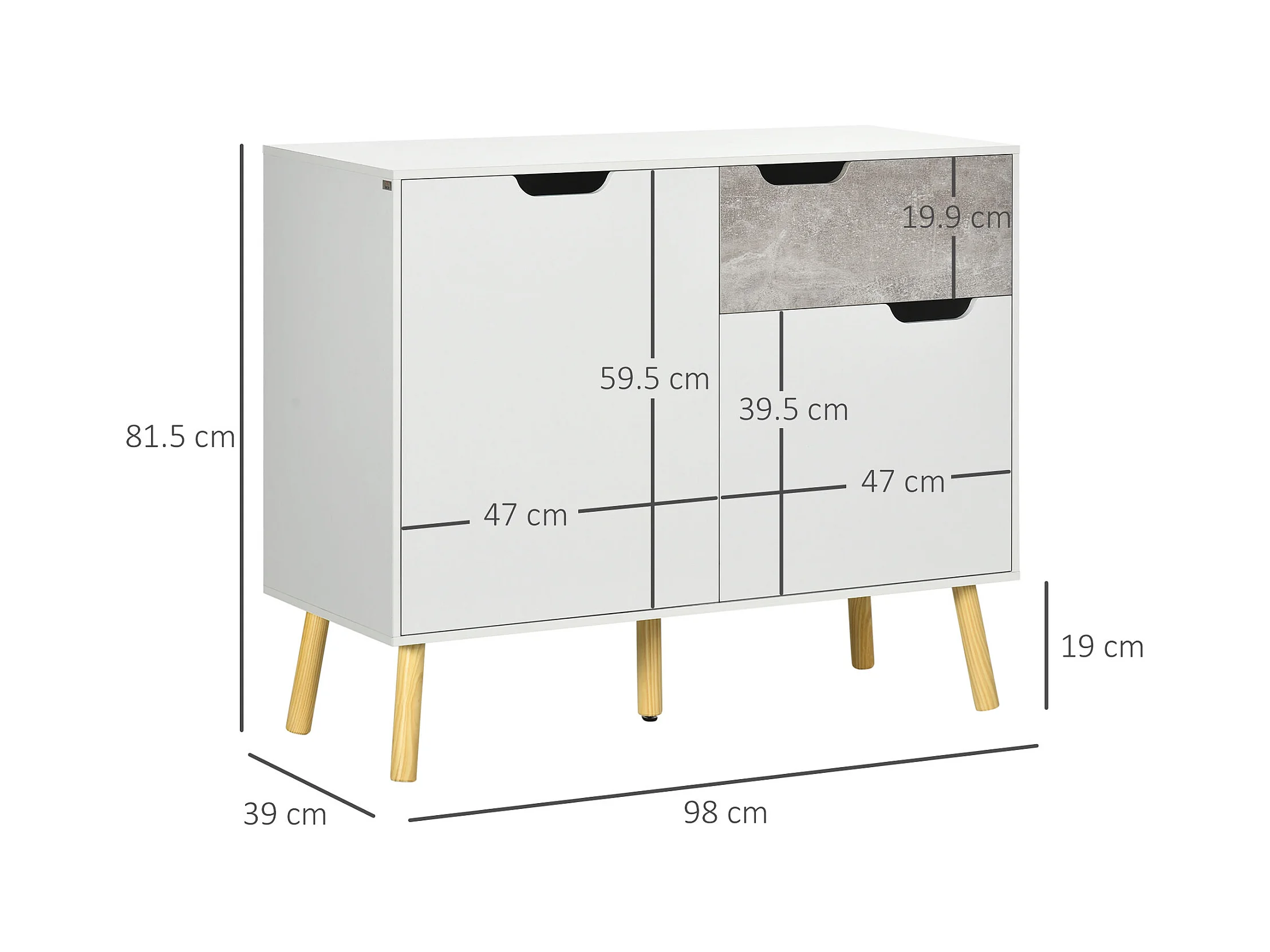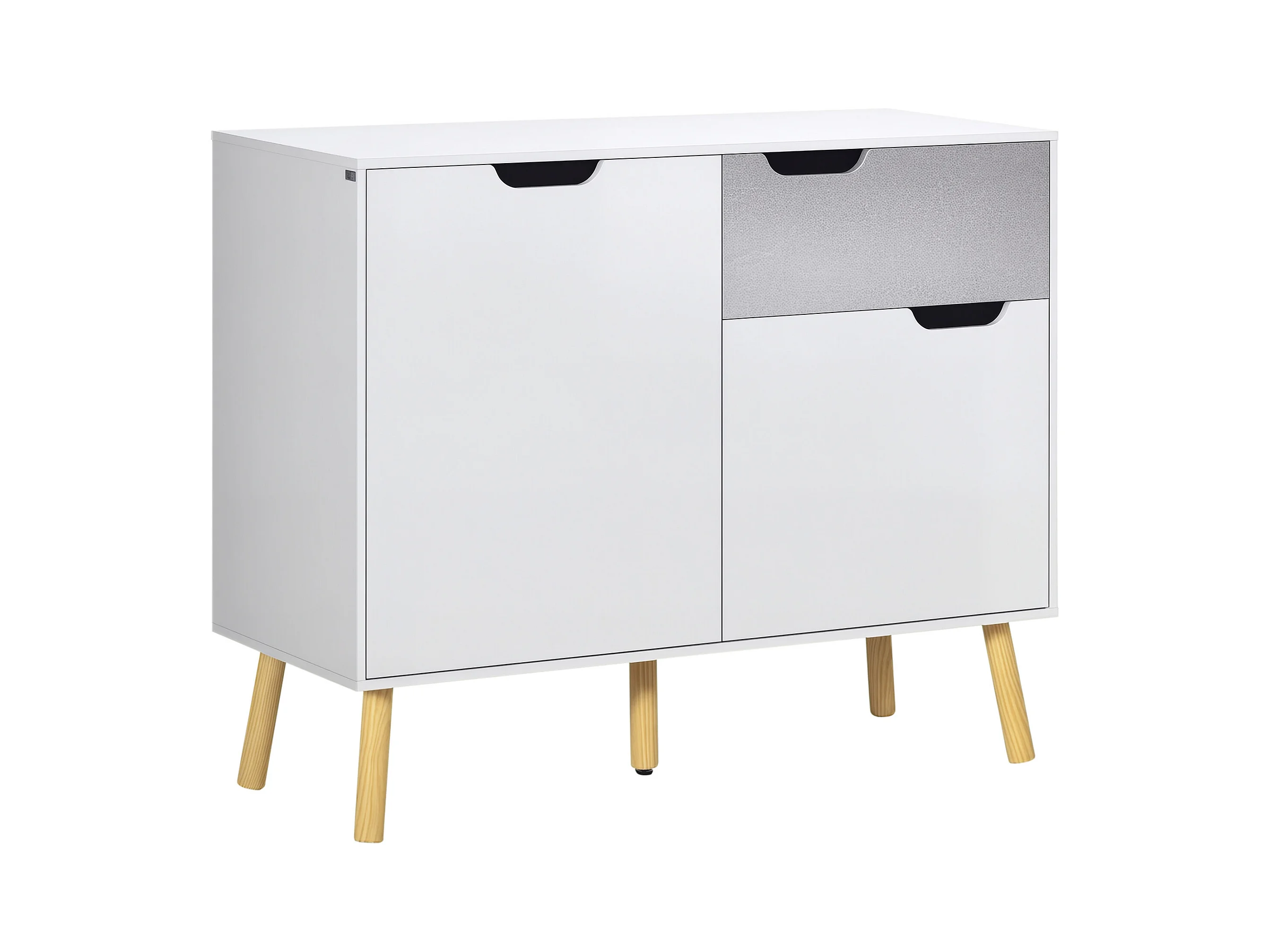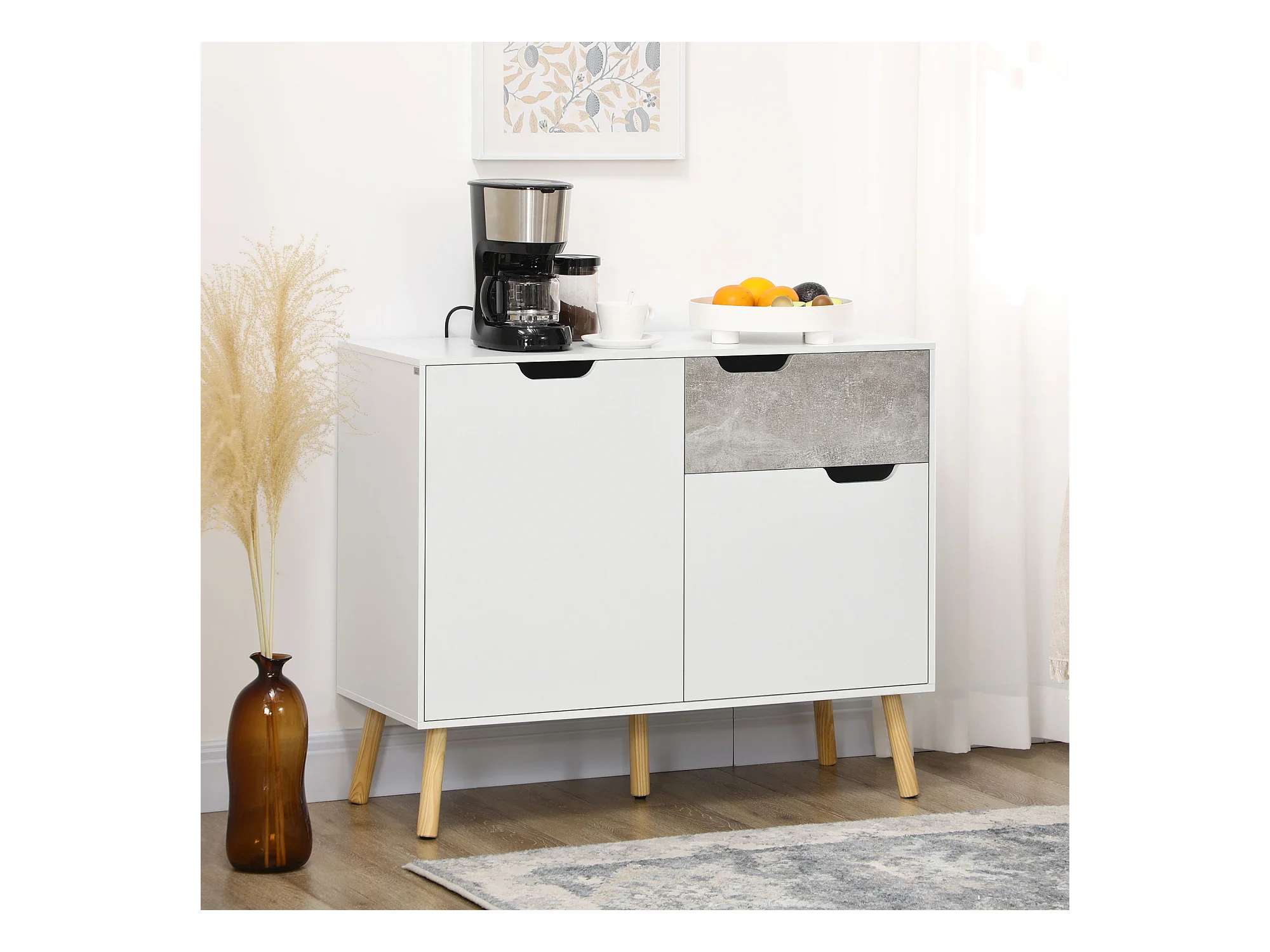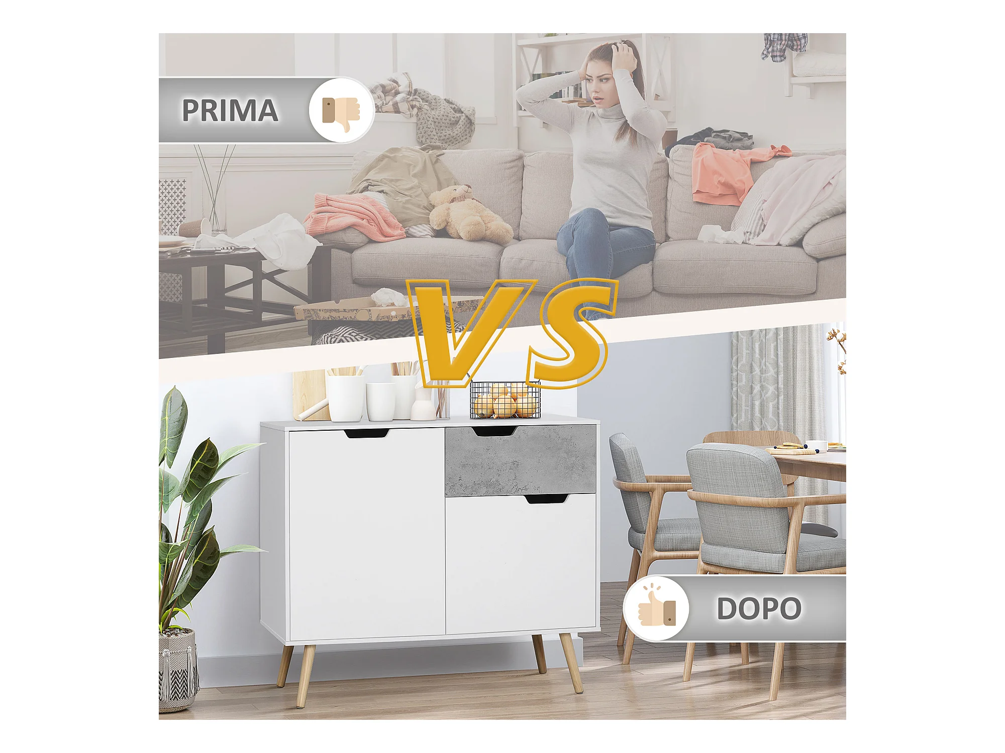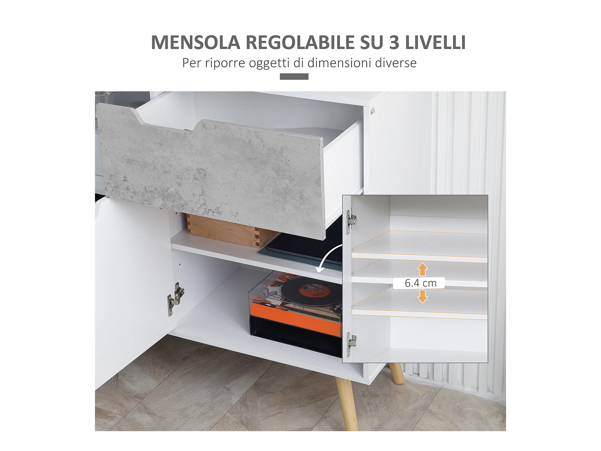 Mobile da salotto con 2 armadietti e cassetto grigio e bianco