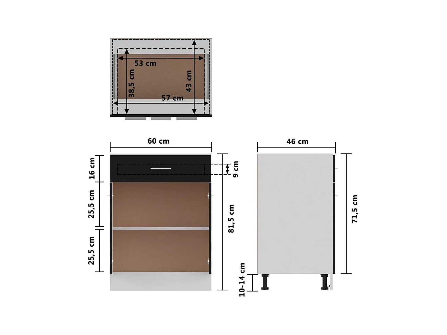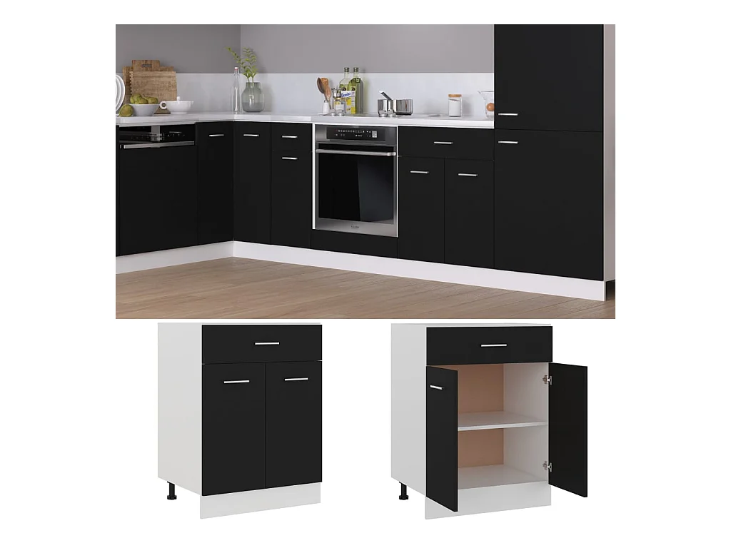 Mobile da terra con cassetto Nero 60x46x81,5 cm MDF