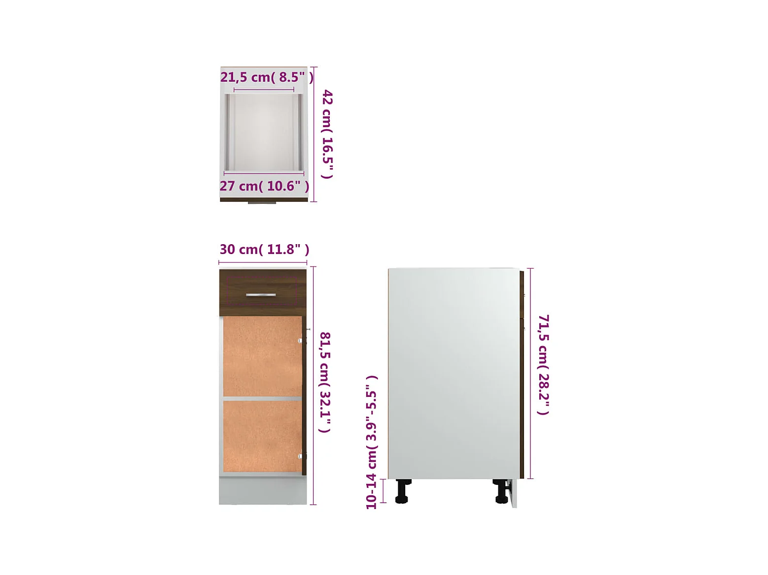 Mobile da terra con cassetto Rovere bruno 30x46x81,5 cm