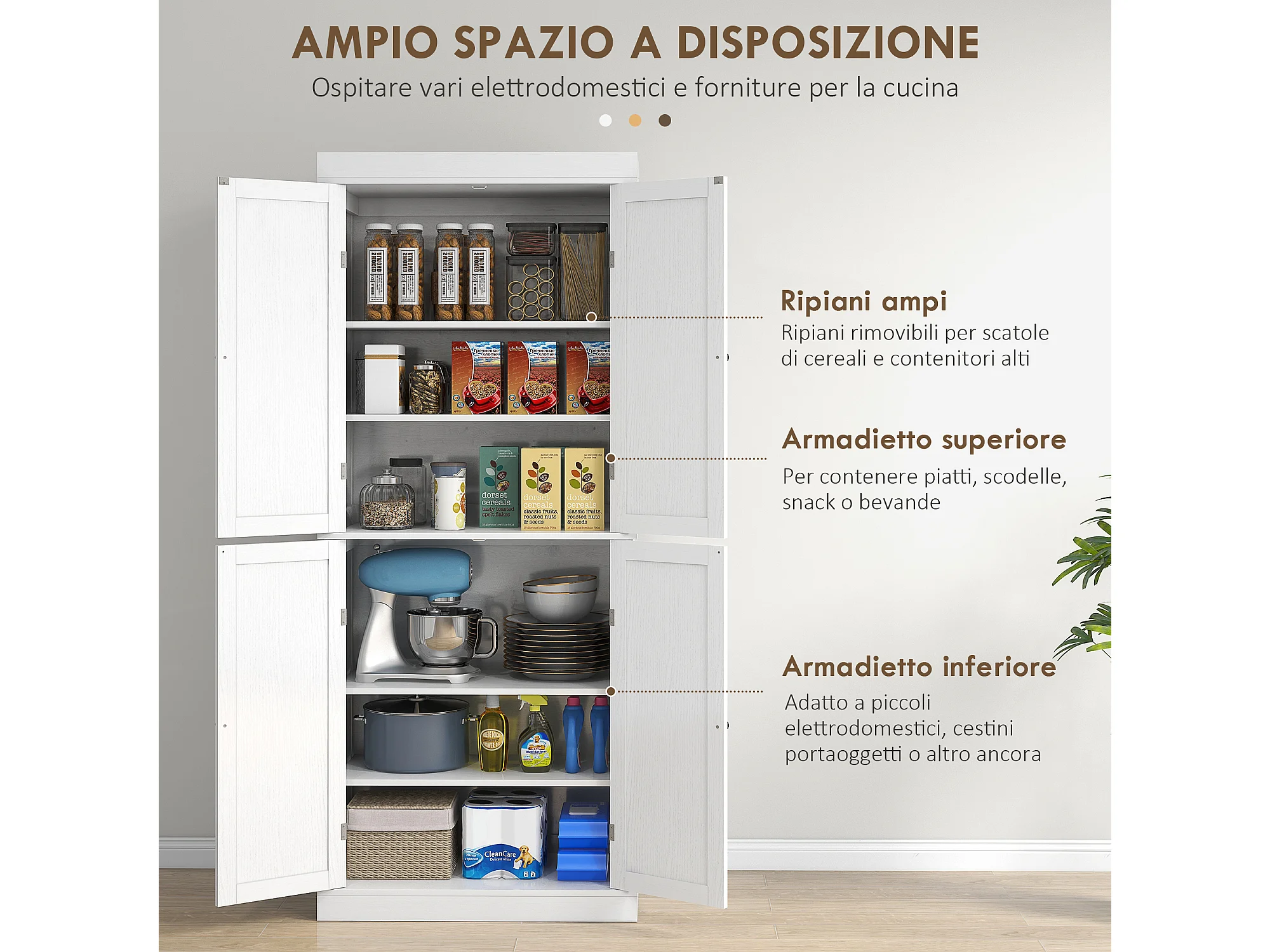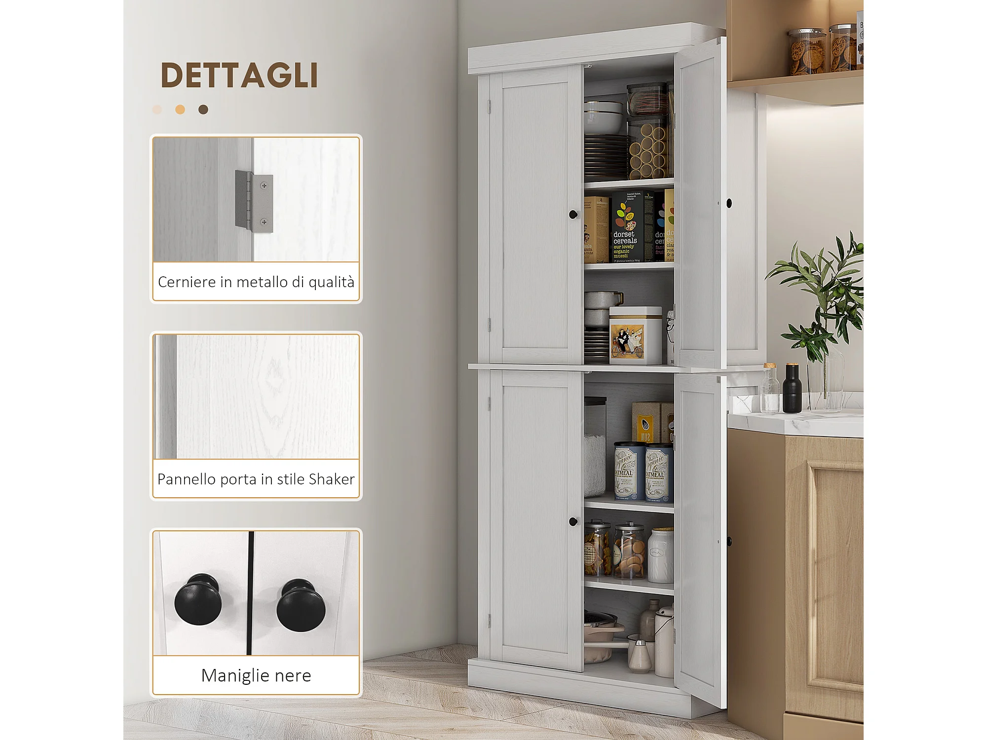 Dispensa cucina a 4 ante e 3 ripiani regolabili e 5 mensole
