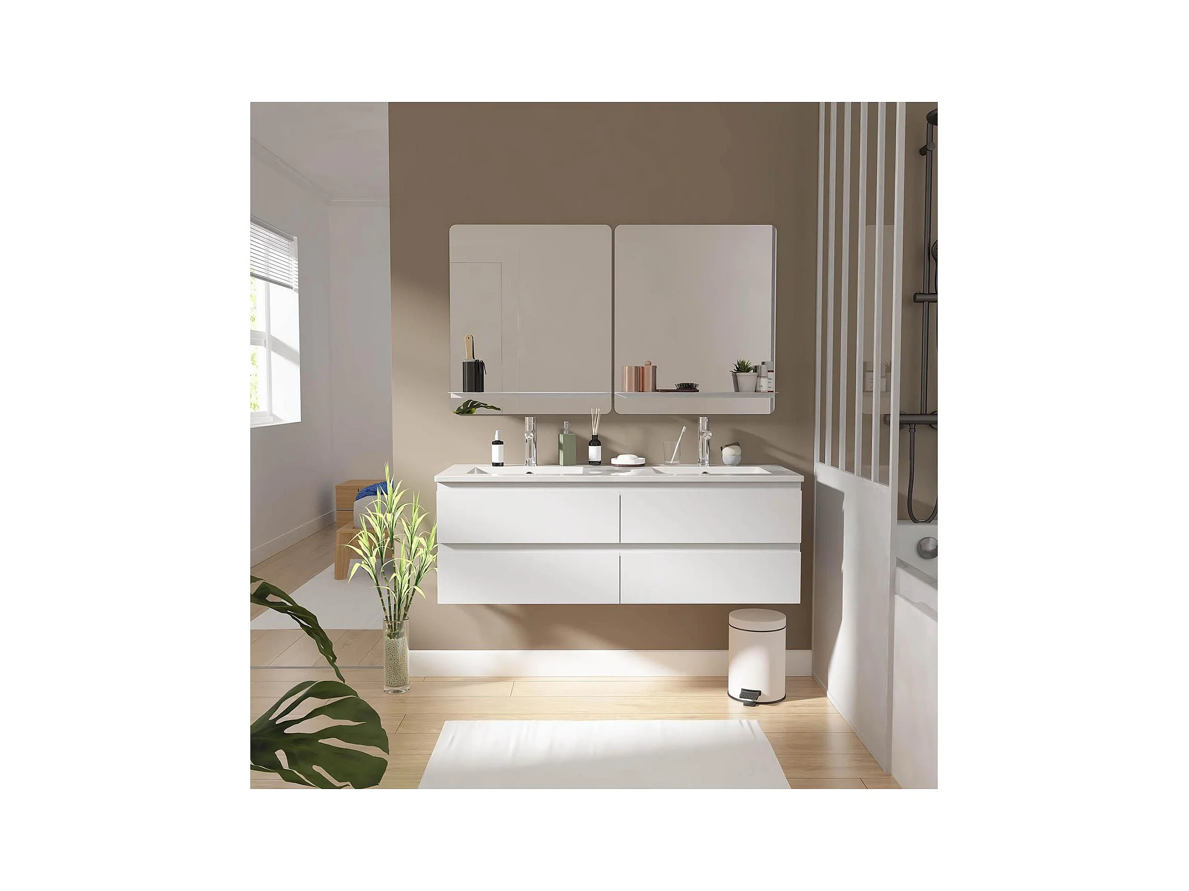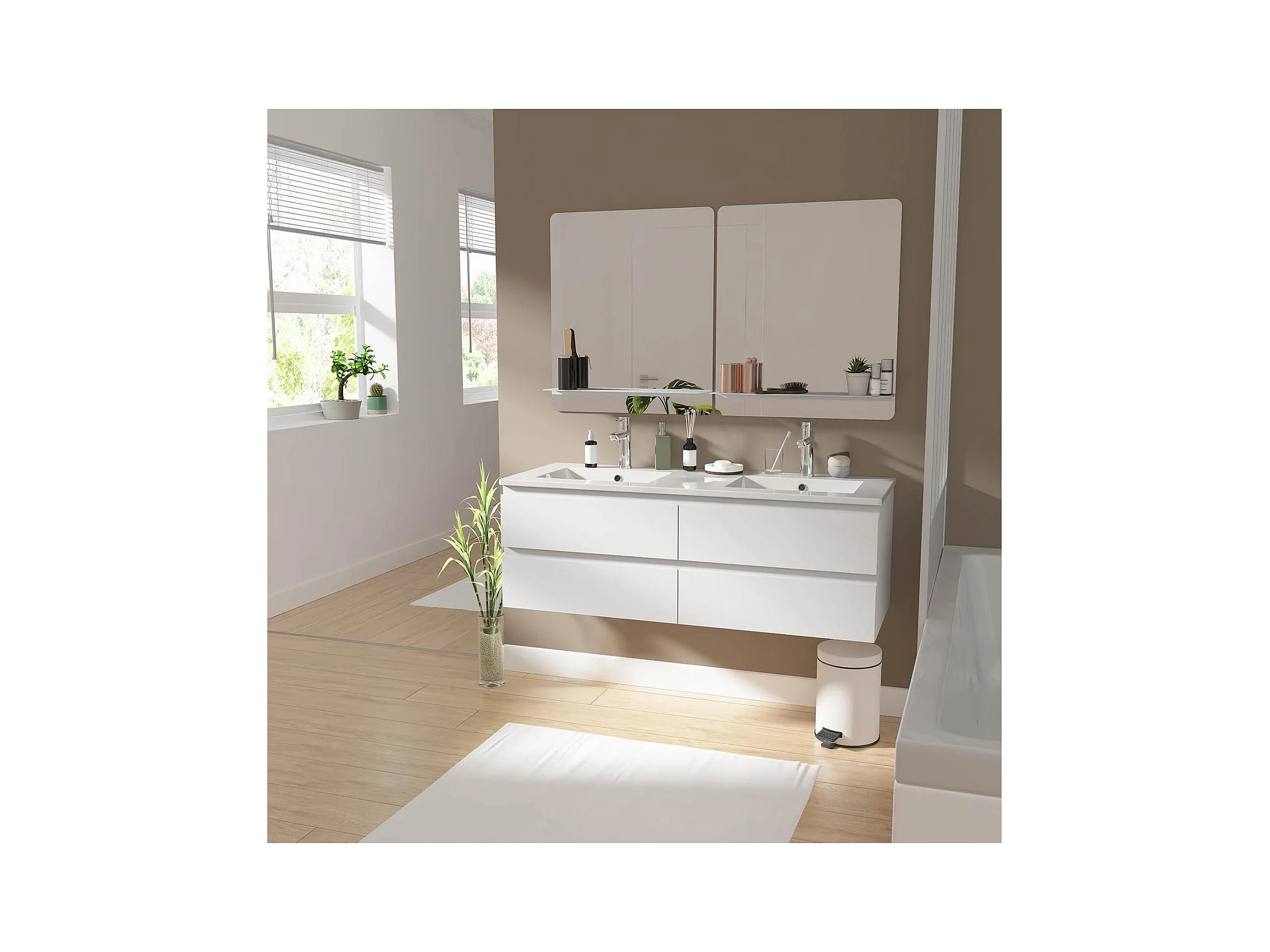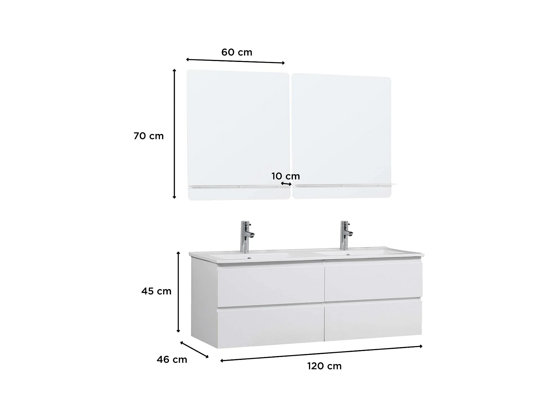 Mobile lavabo doppio + lavandino + rubinetto + specchio WILL