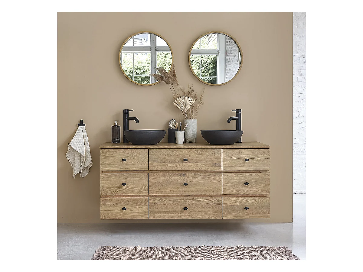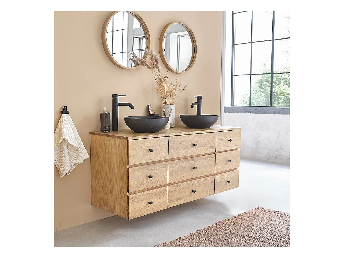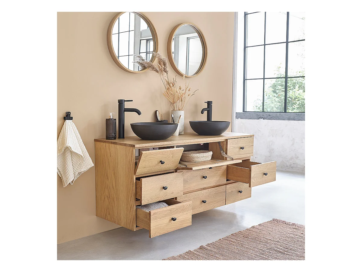 Mobile doppio lavabo sospeso in massello di rovere 140 cm