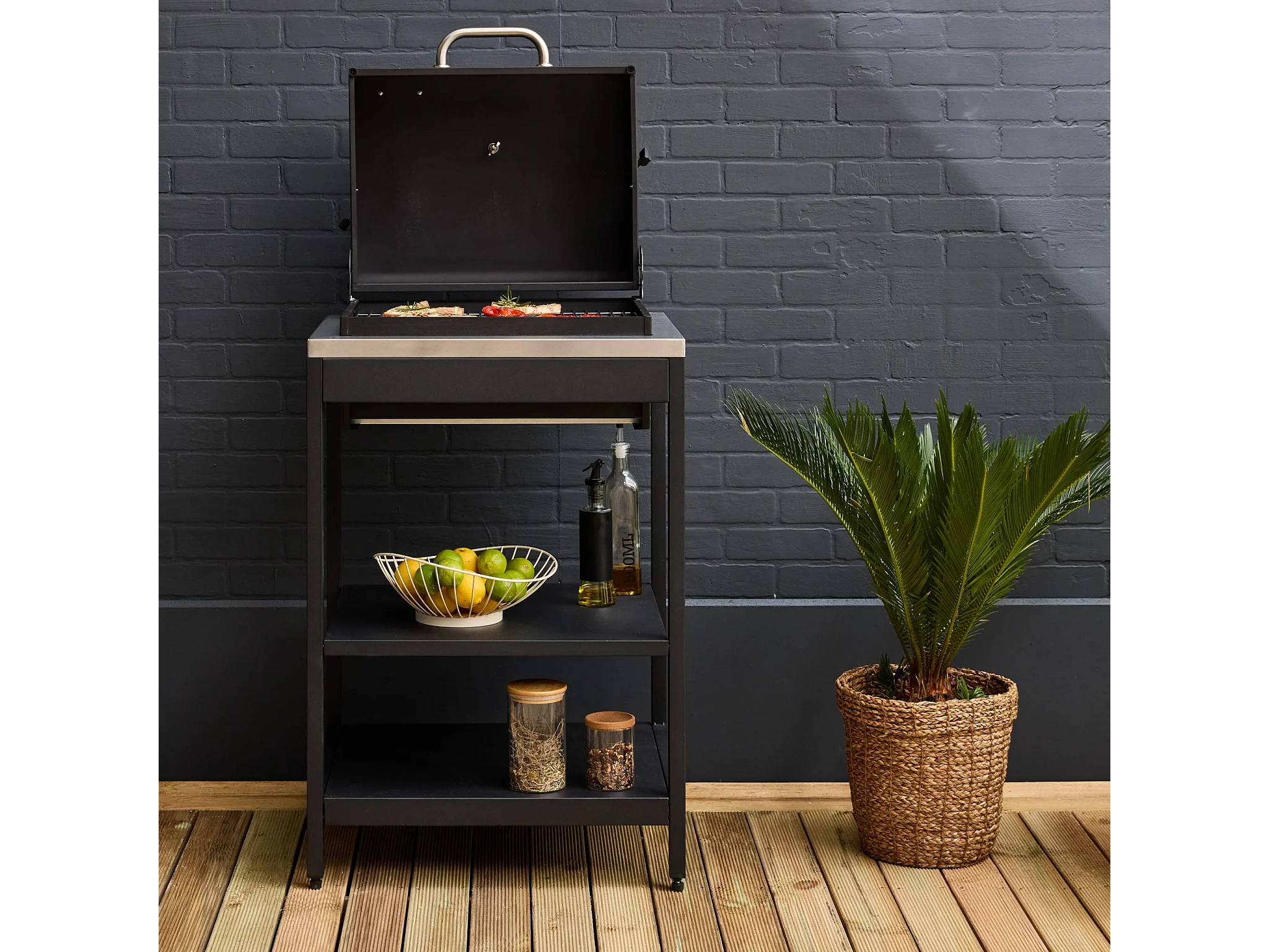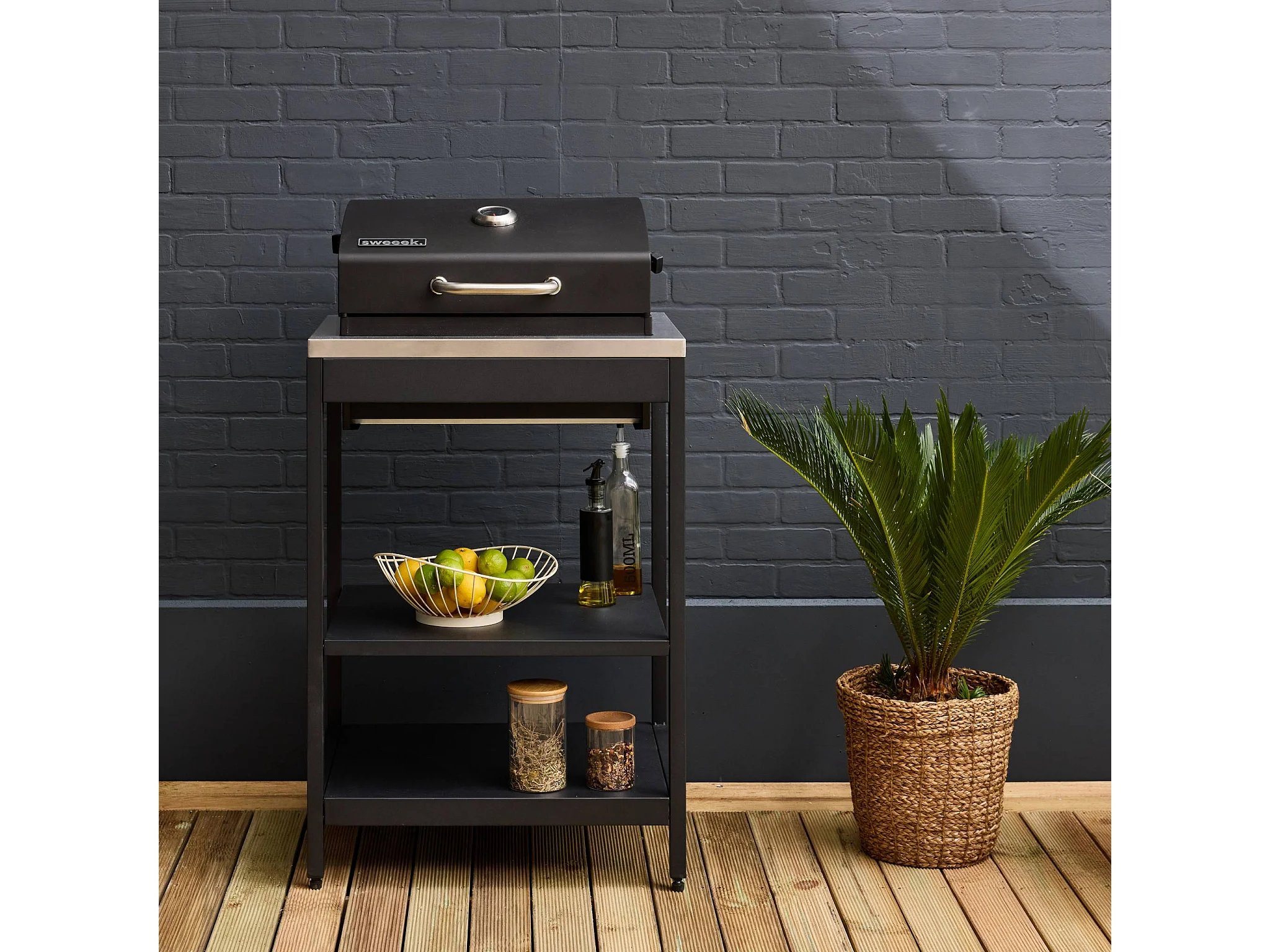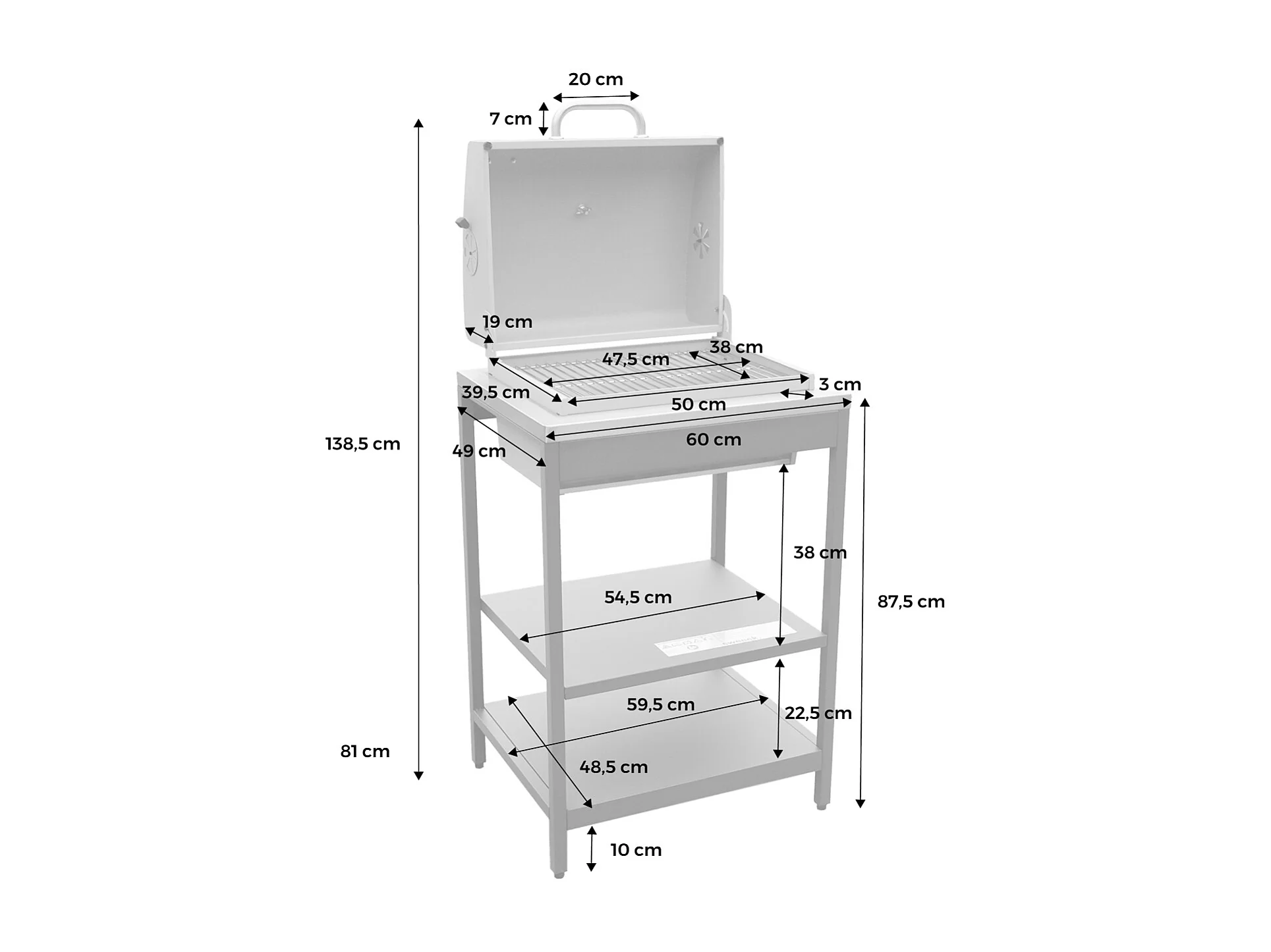 Mobile e barbecue a carbone in acciaio inossidabile con griglia