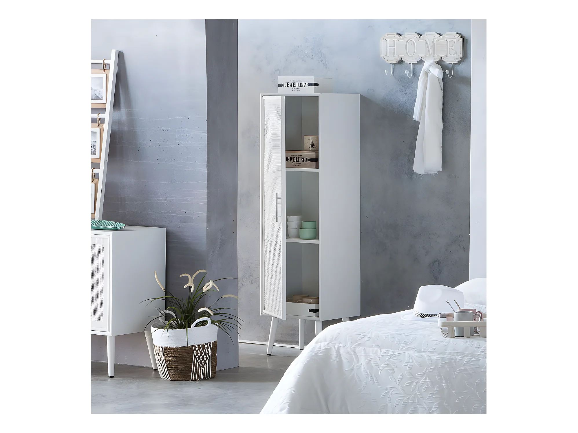 Mobile in legno bianco e rete 40,5x37x139,5h