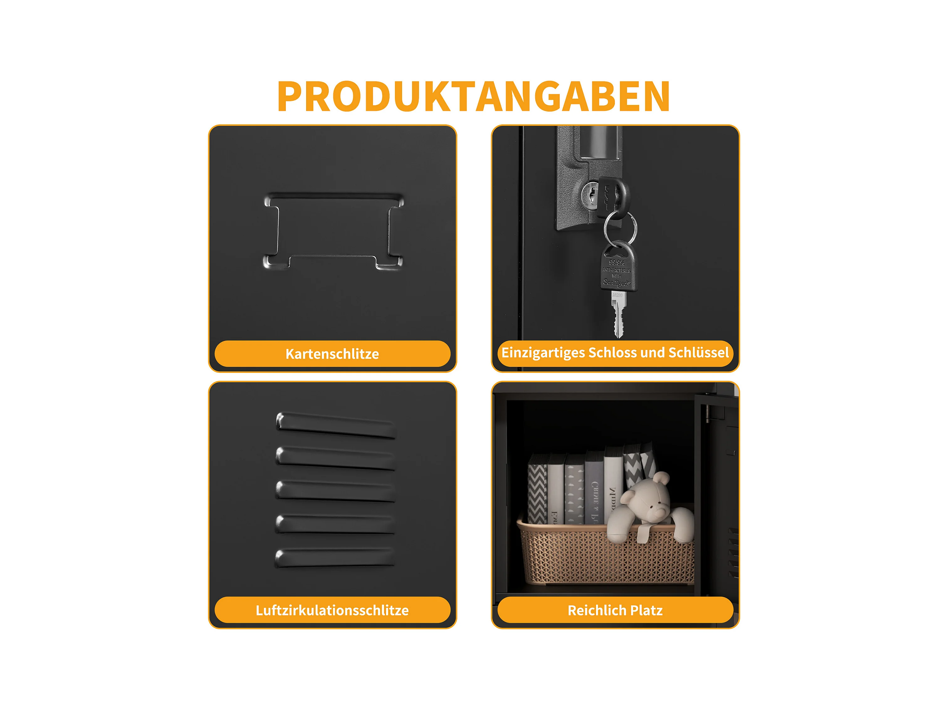 Armadio per ufficio Armadio in acciaio Armadio in metallo 38x38x137,5 cm Nero
