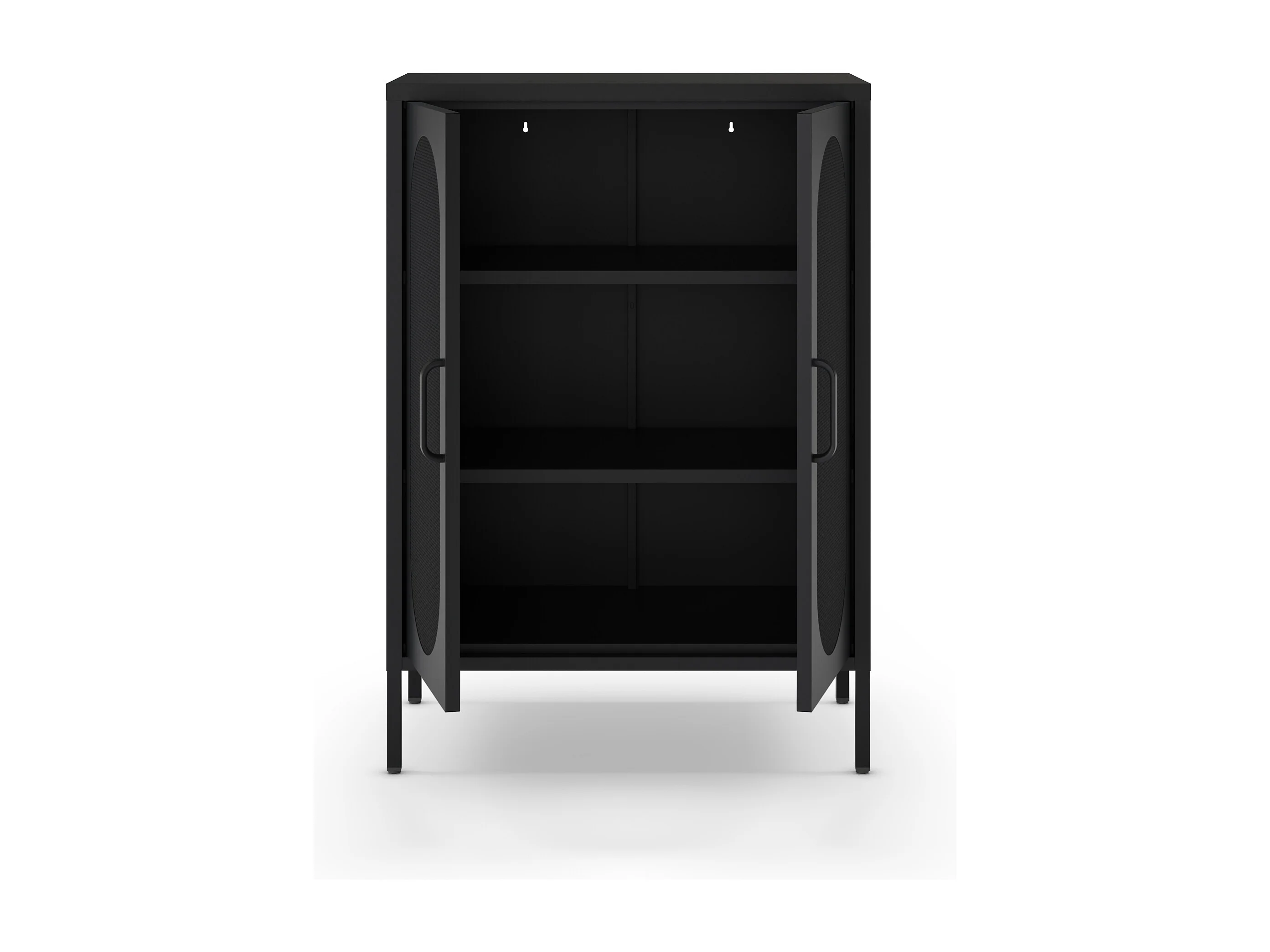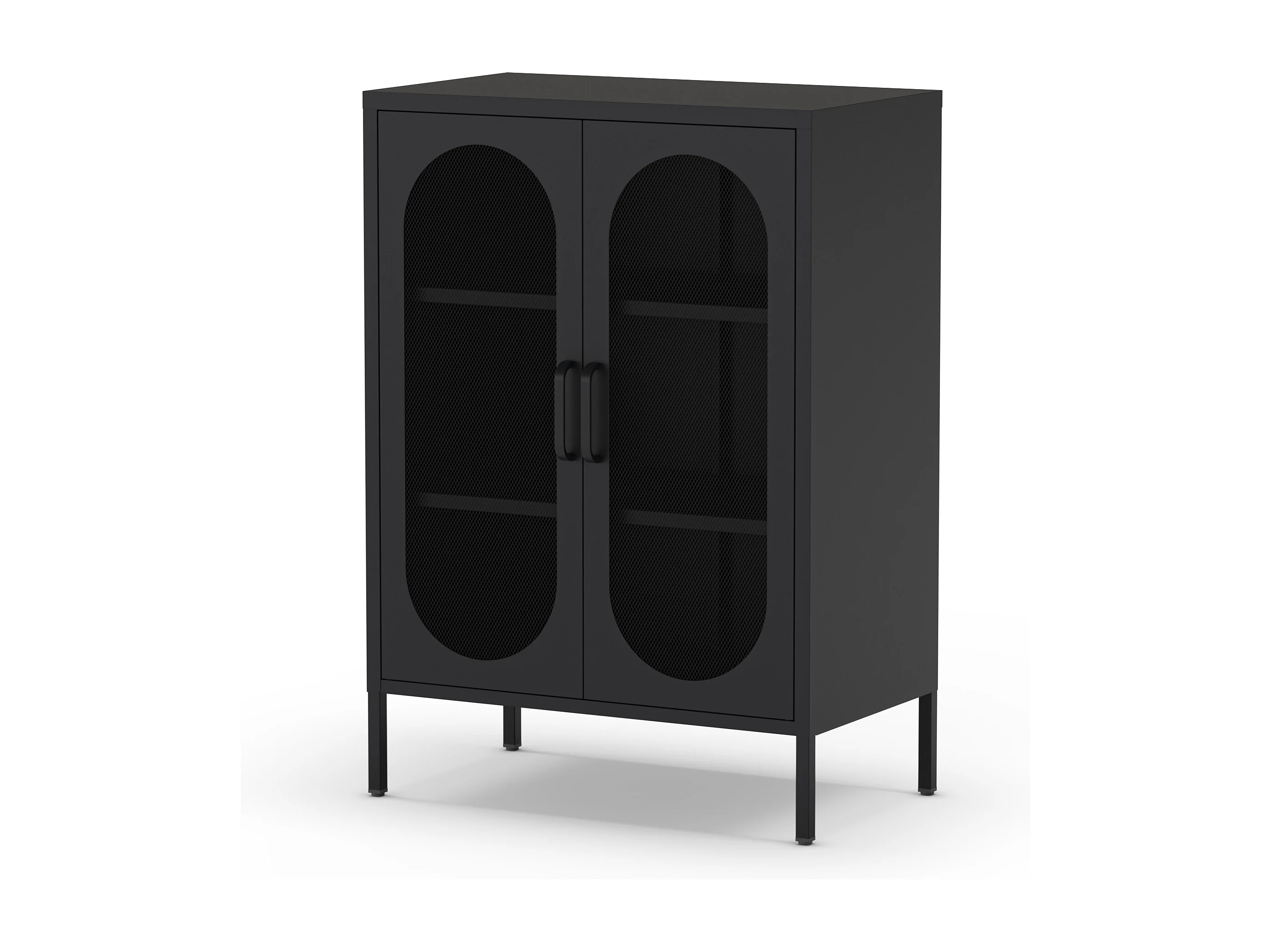 Mobile in metallo Diora nero con ante reticolate 70x40x100H – Design industriale, anima versatile