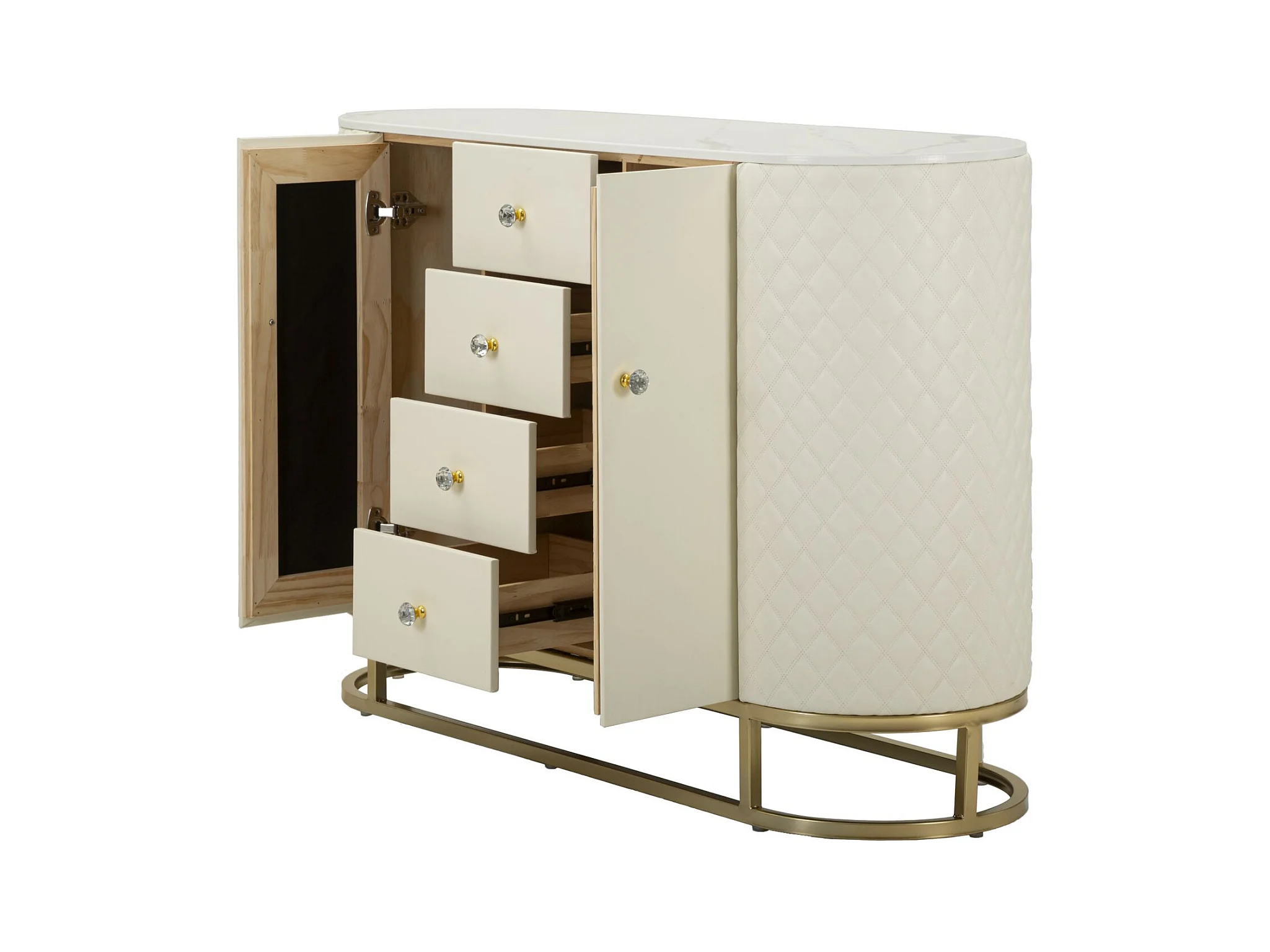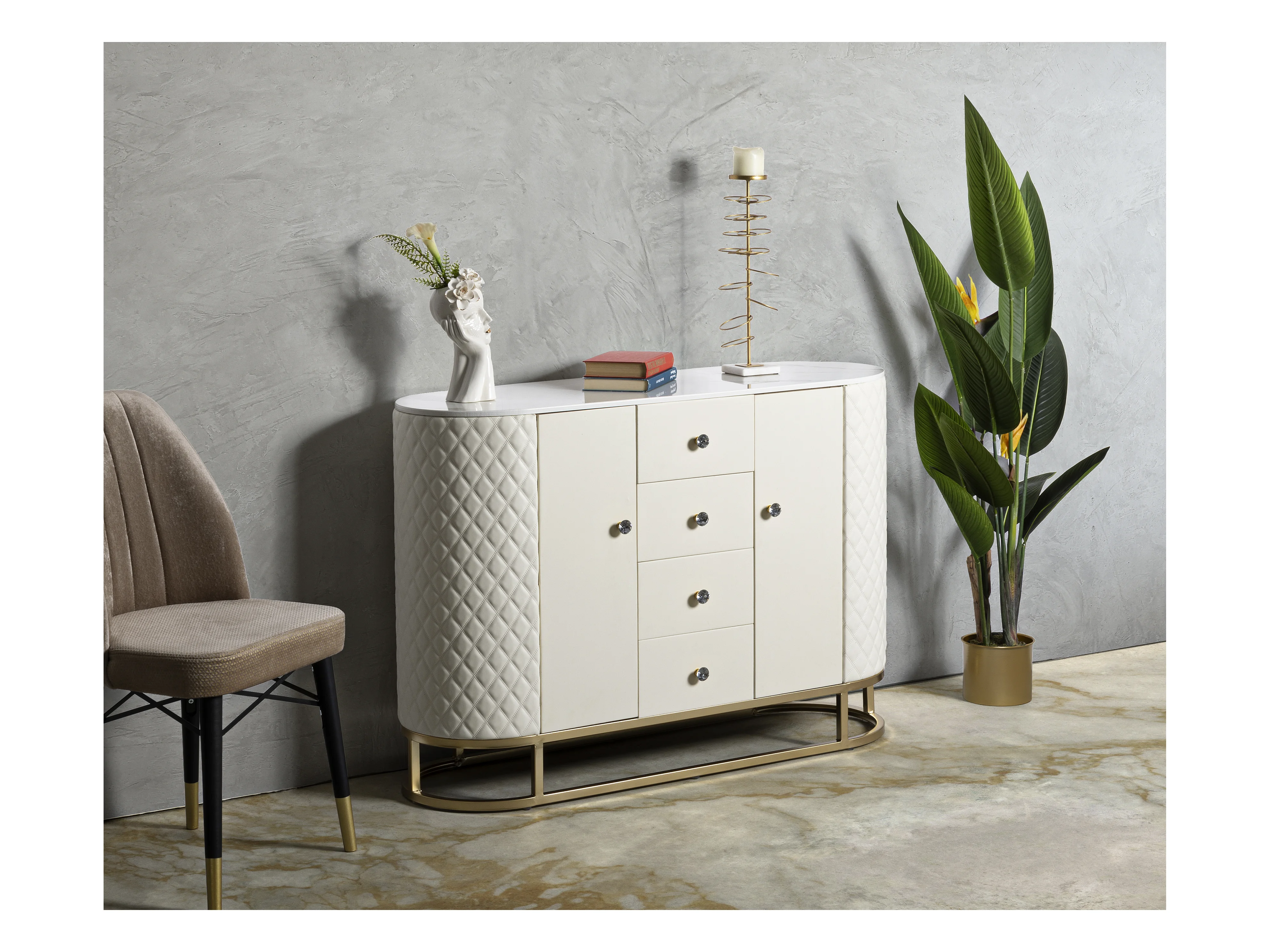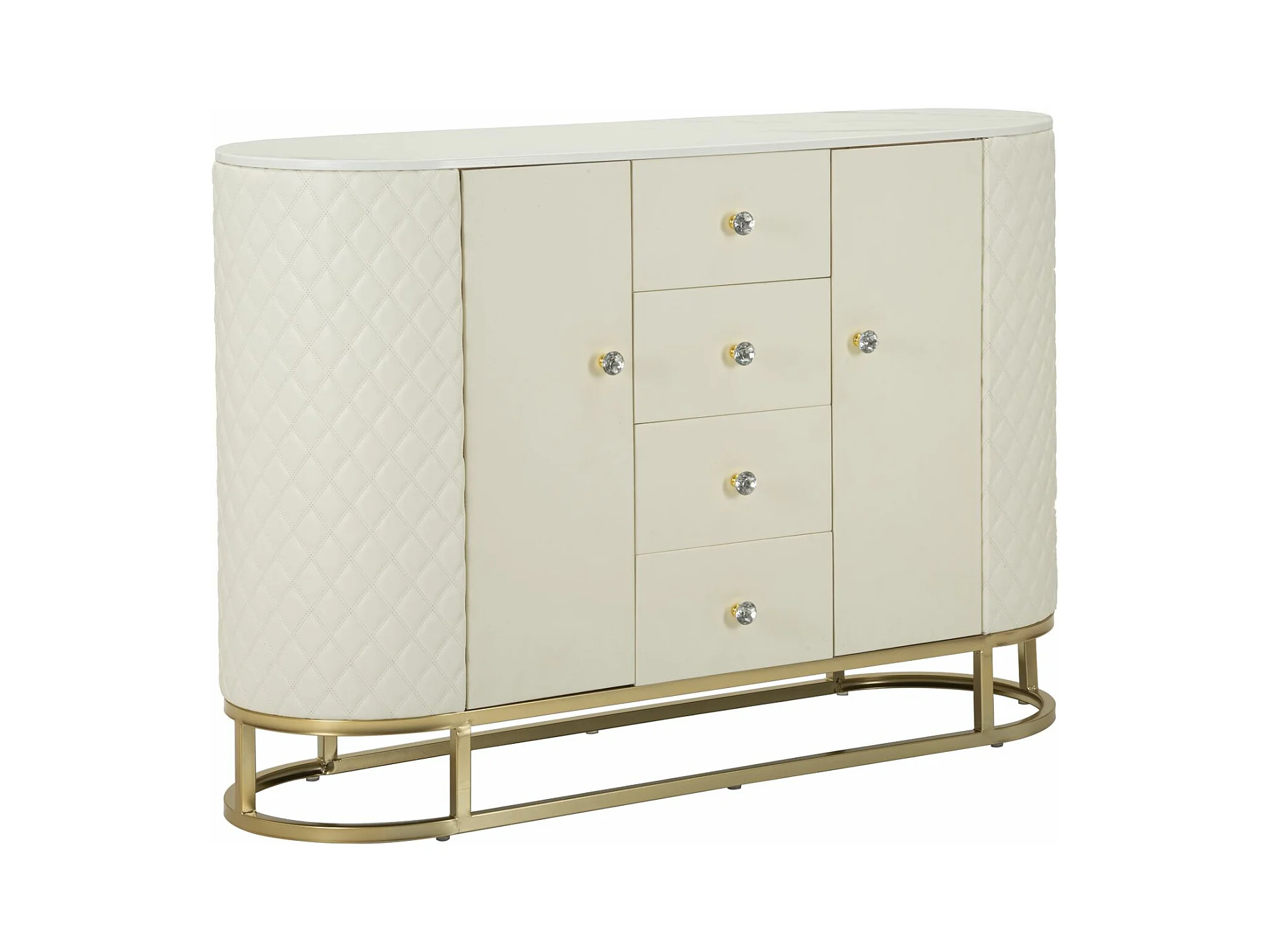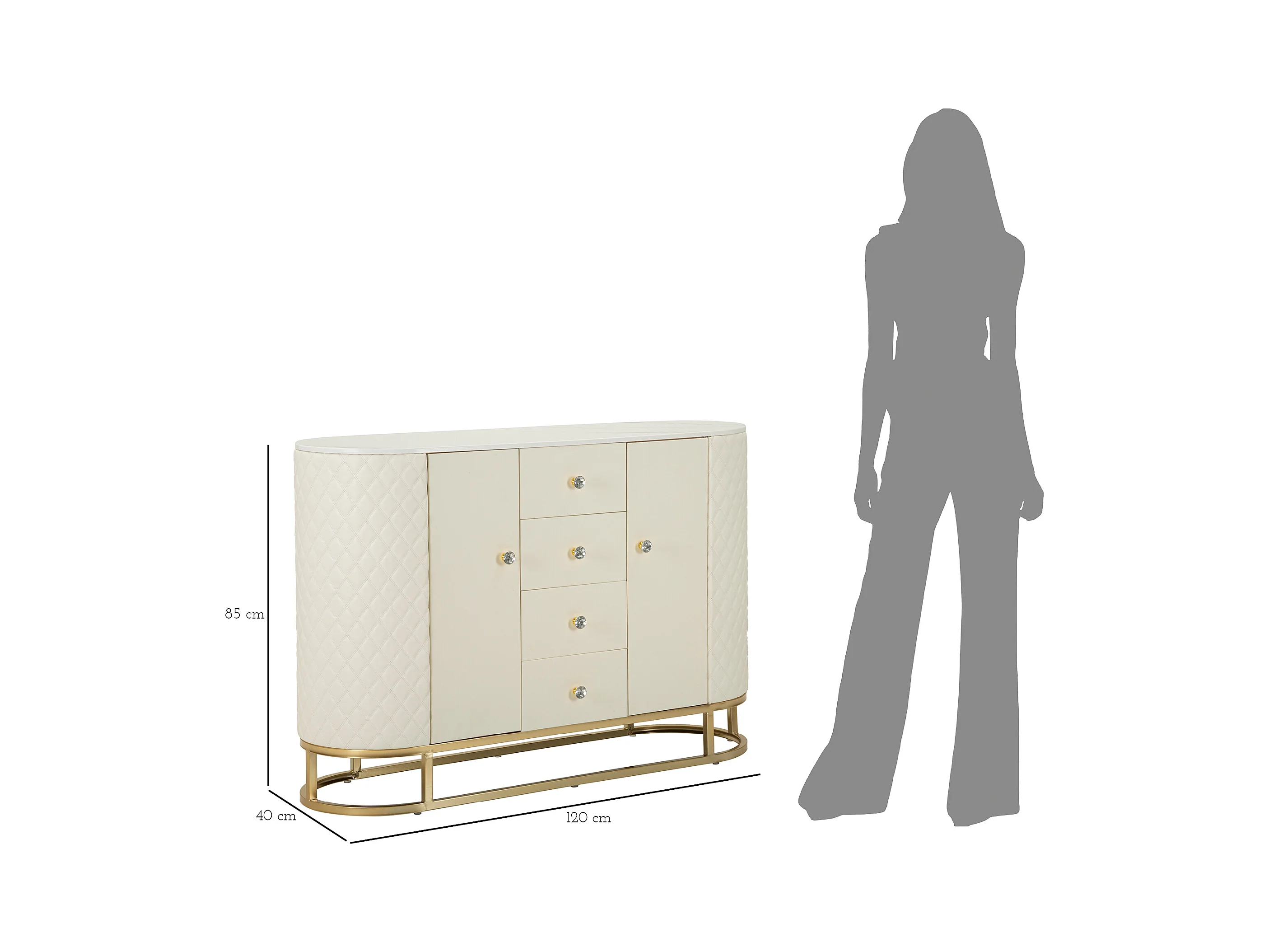 Mobile in metallo dorato e similpelle crema cm 120x40x85