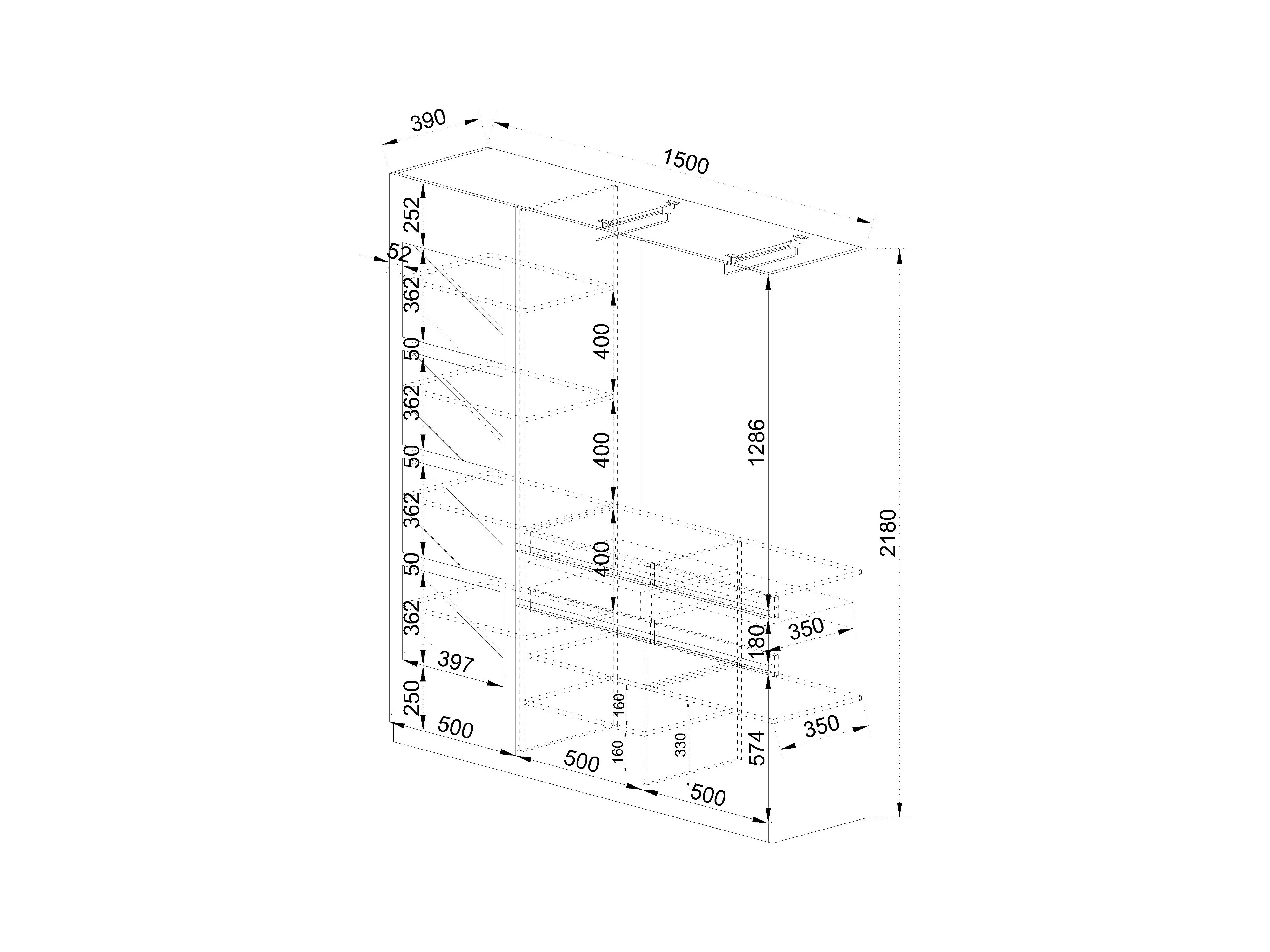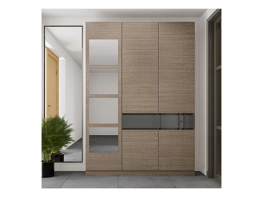 Mobile ingresso 150x218 cm marrone moka e grigio lucido con 4 specchi II25