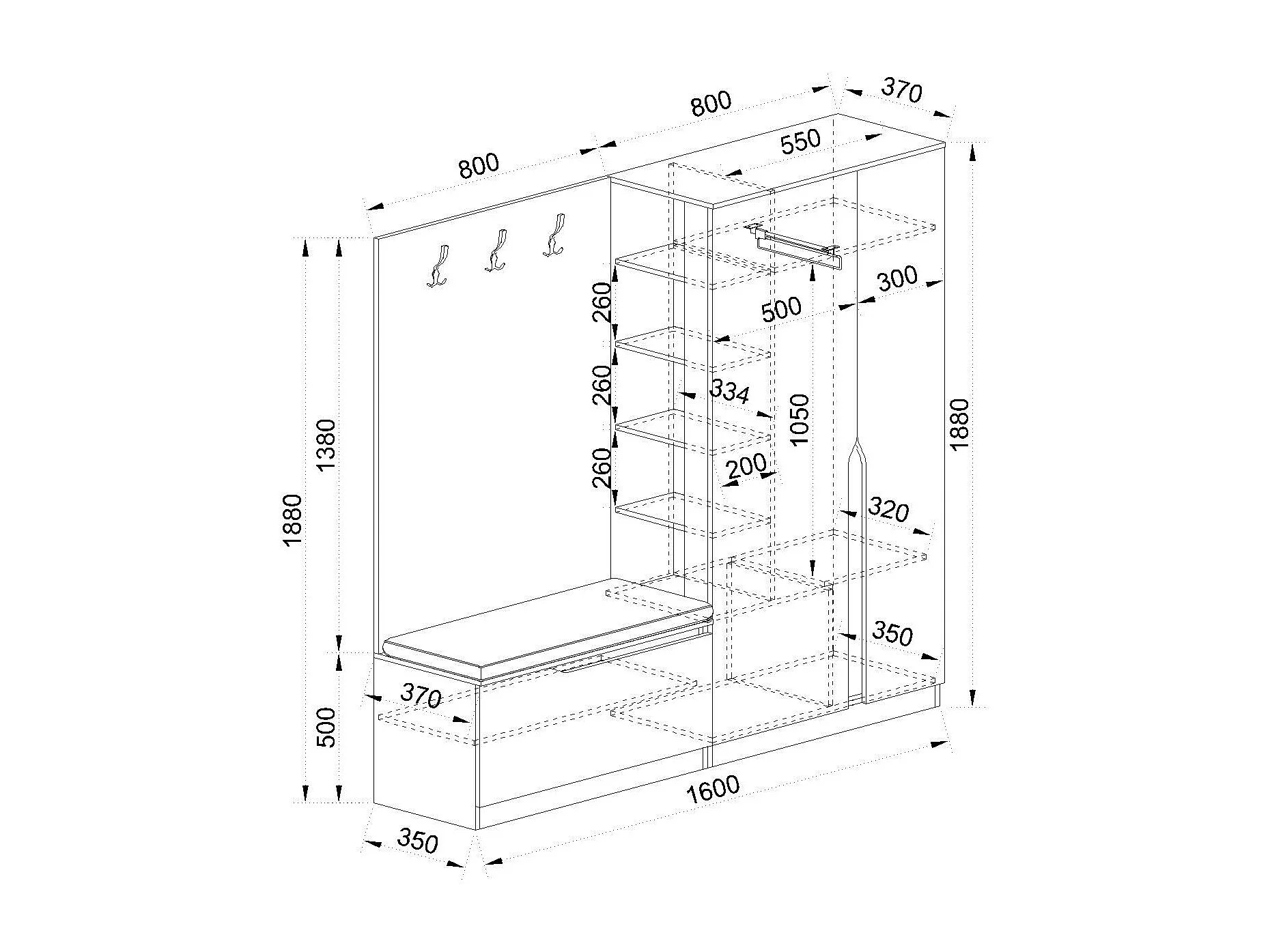 Mobile ingresso 160x188 cm noce e beige con 3 ganci appendiabiti e scarpiera a ribalta II26