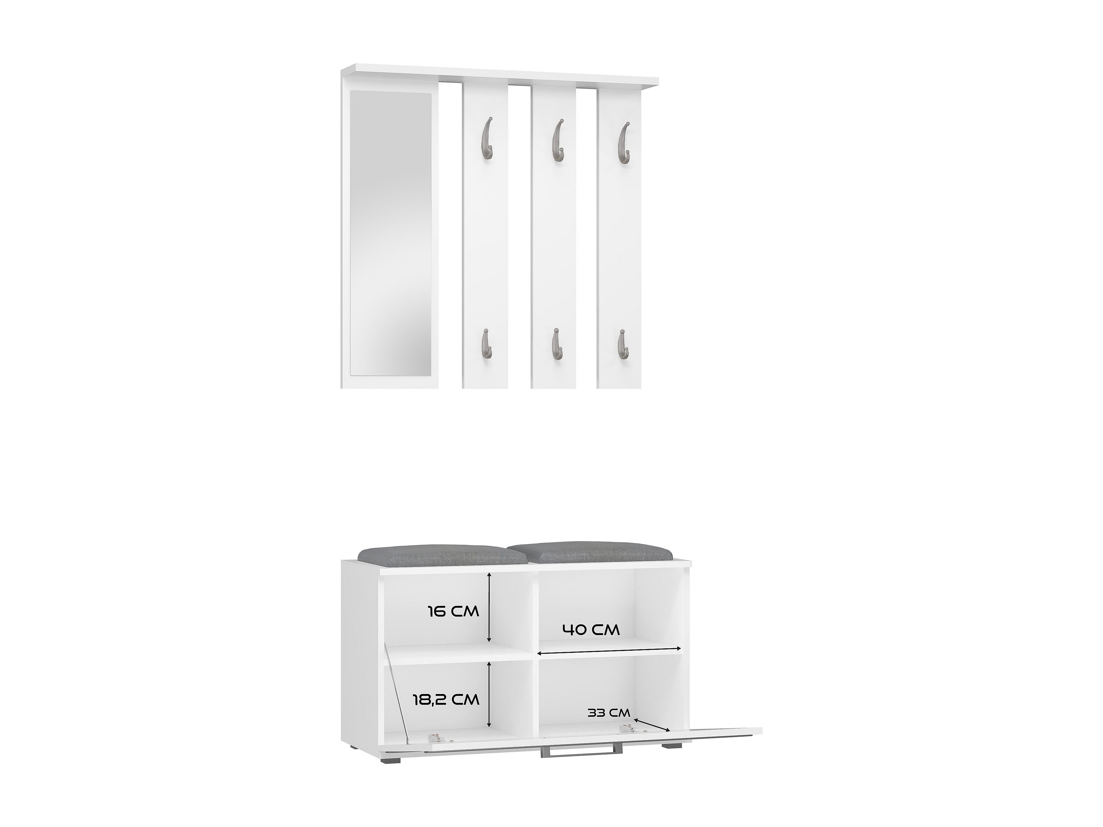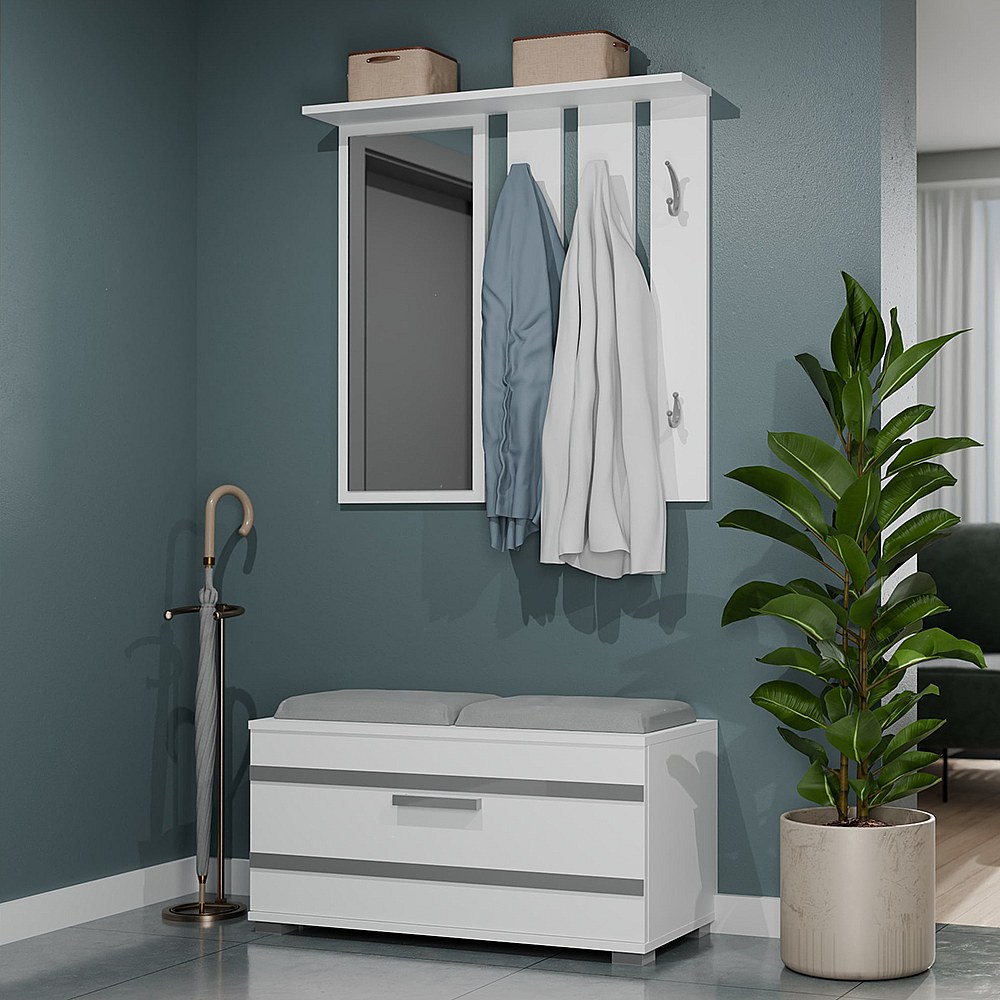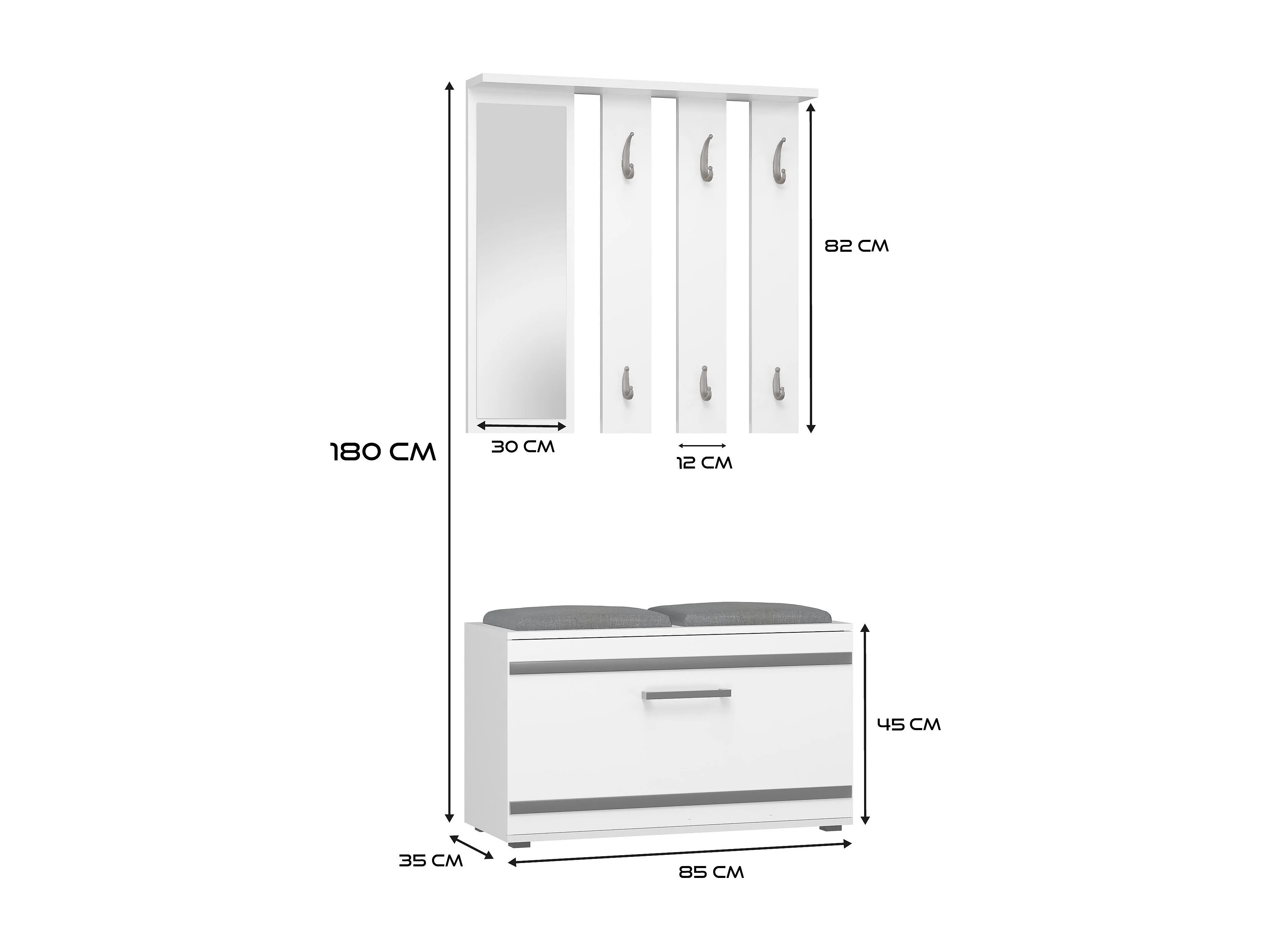 Mobile ingresso appendiabiti e scarpiera bianco e grigio MIT2