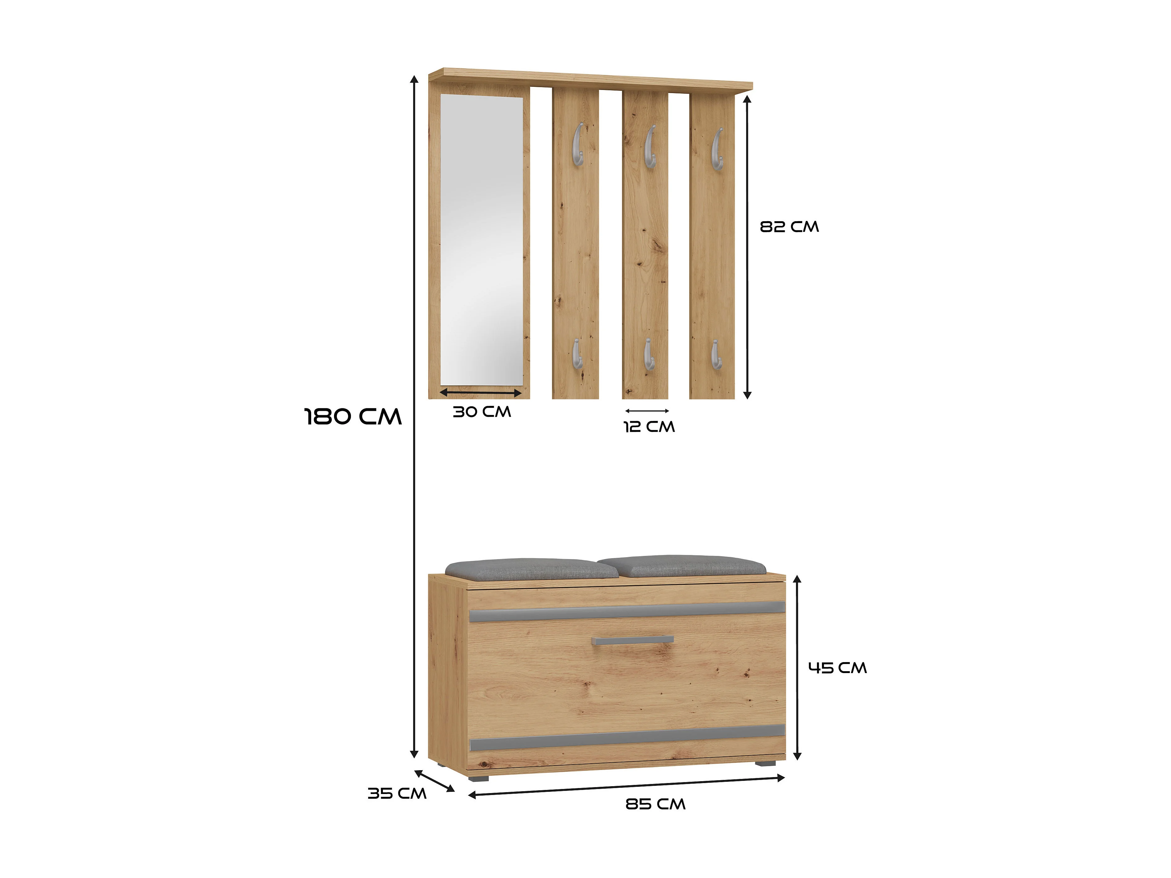 Mobile ingresso appendiabiti e scarpiera rovere e grigio MIT2