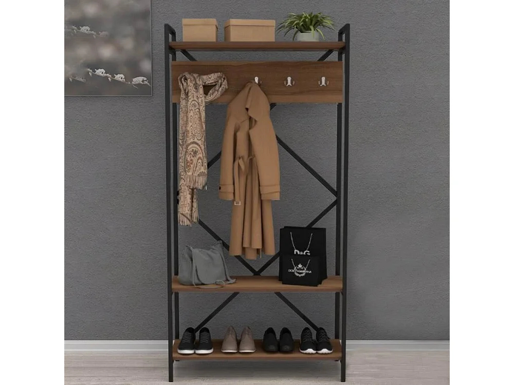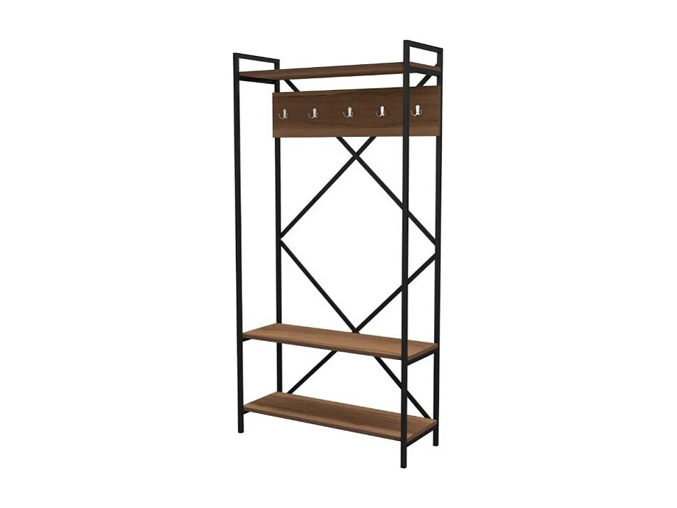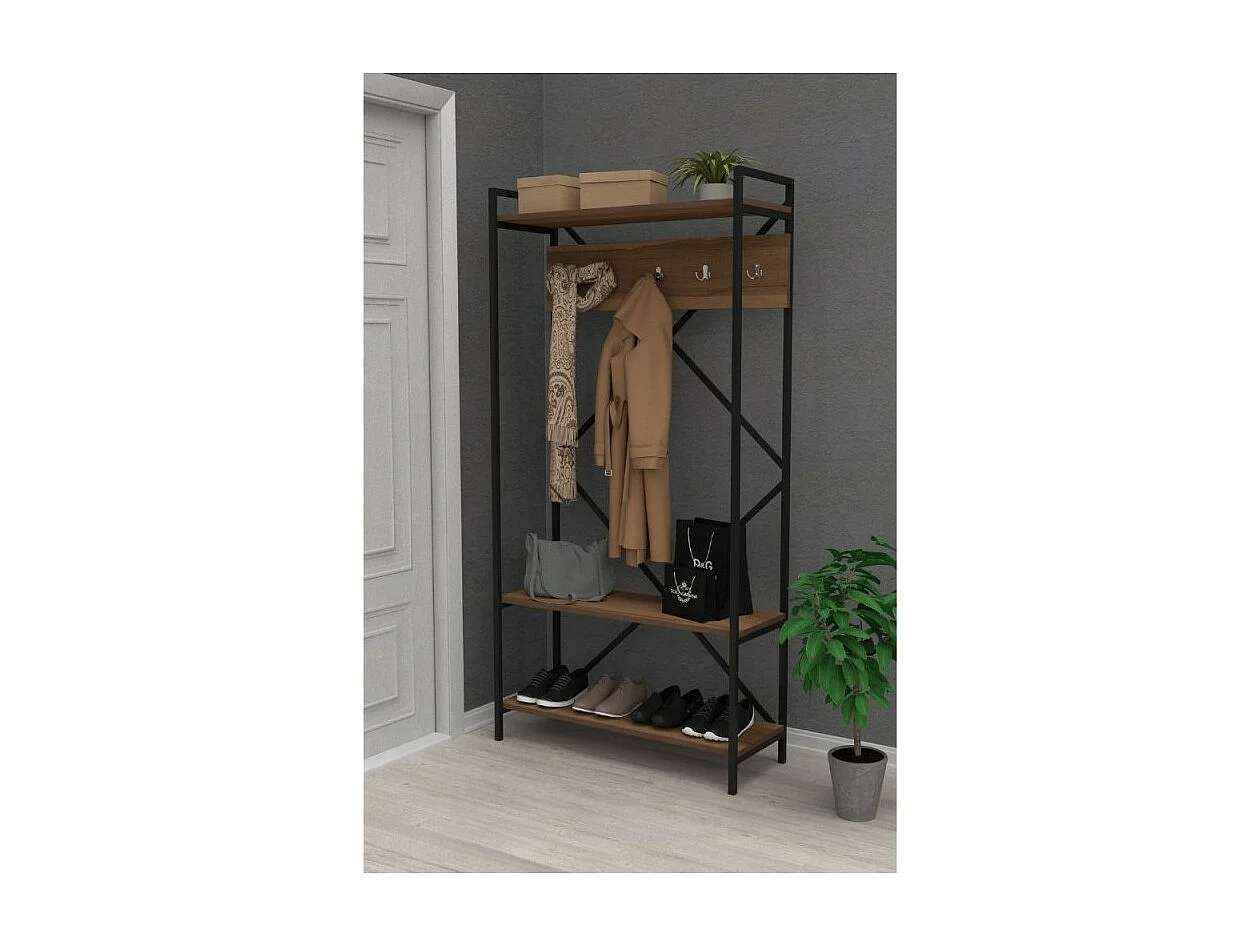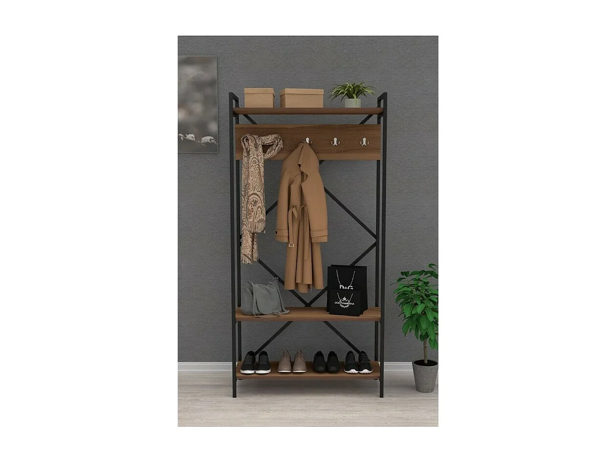 Mobile ingresso appendiabiti struttura in metallo e ripiani noce Navis