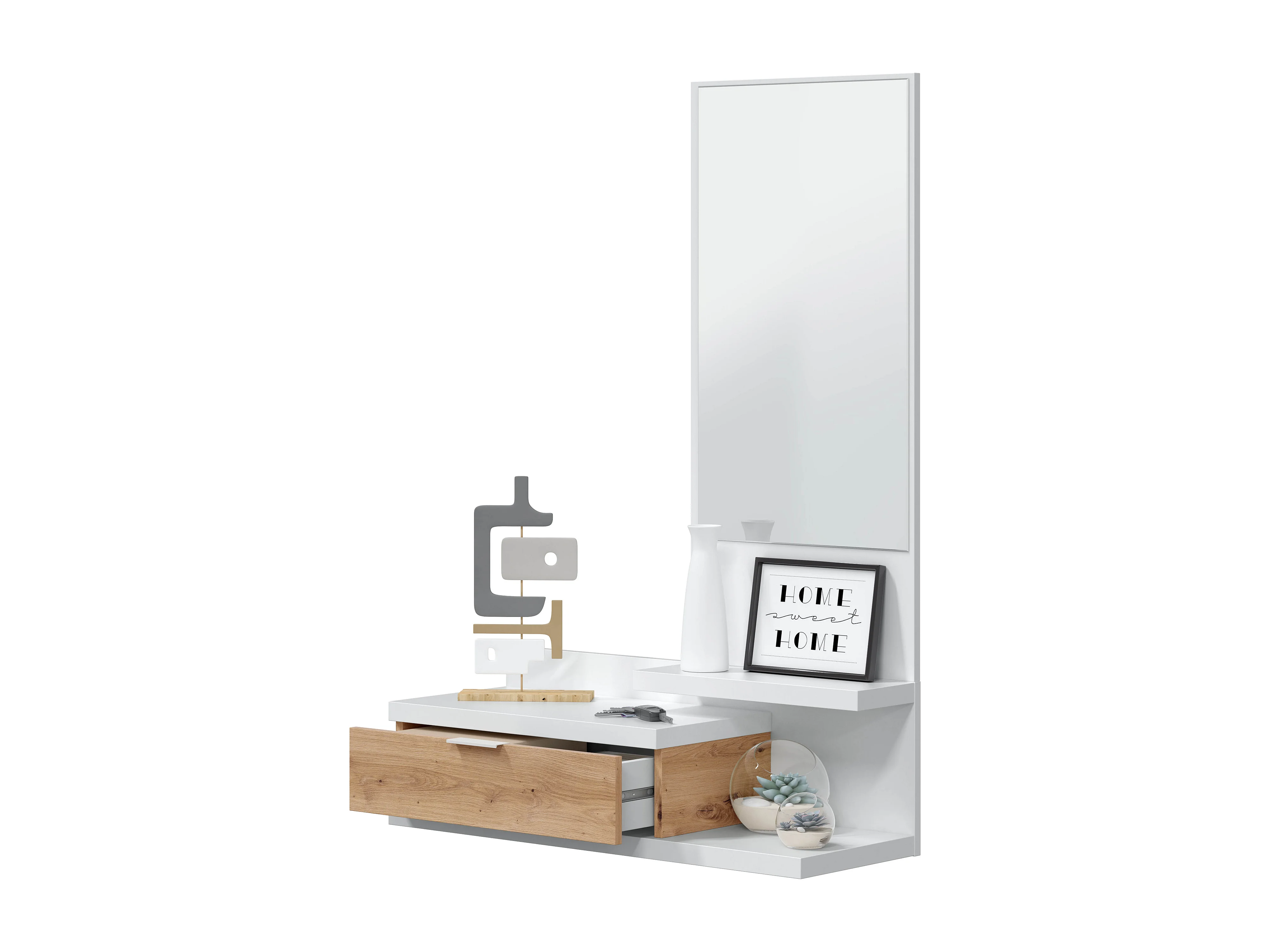 Mobile Ingresso Con Cassetto Specchio E Mensola Design Moderno Salvaspazio Ideale Per Ingresso Soggiorno Con Stile E Funzionalità; 81 x 116 x 29 Cm Bianco E Rovere