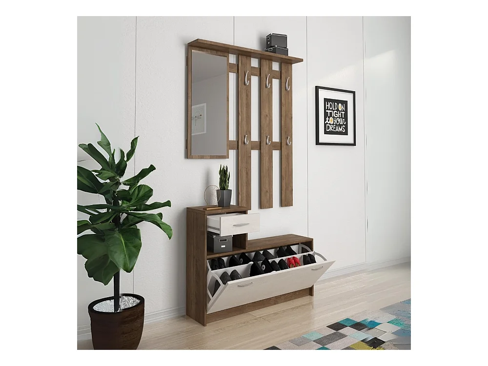 Mobile ingresso con scarpiera Rudolf colore noce eastwood e spatolato