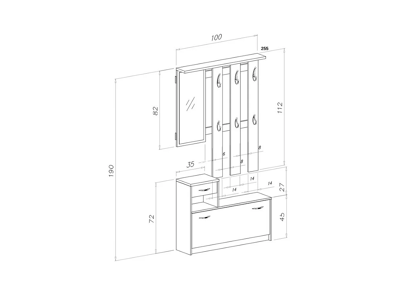 Mobile ingresso con frontale cannettato e specchio Medan42B colore quercia antracite 122x37x190H