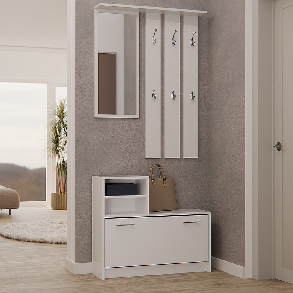 Guardaroba con attaccapanni e panca portascarpe - 60,5x35,2x180,5 cm - Pannello truciolare - Bianco