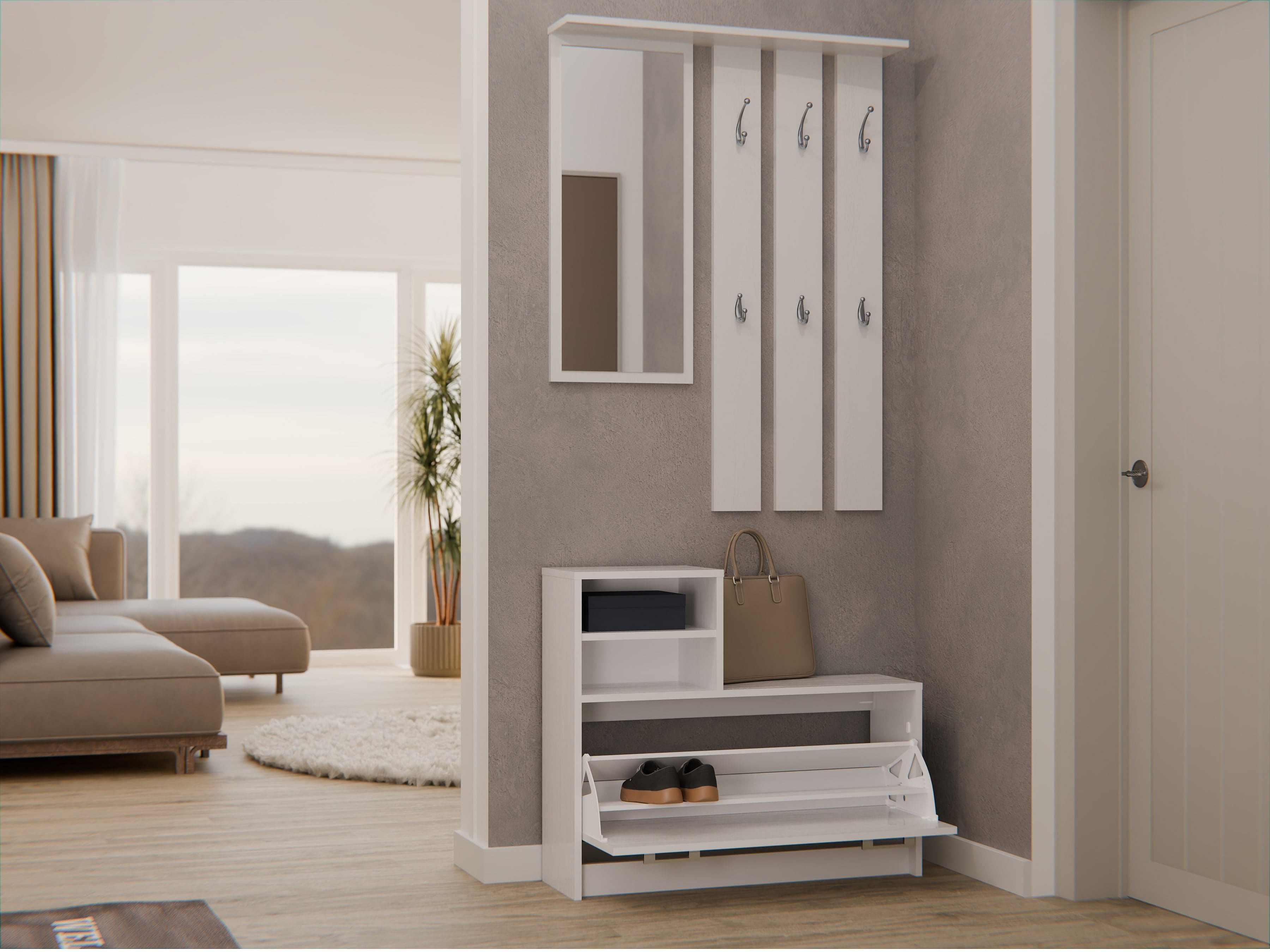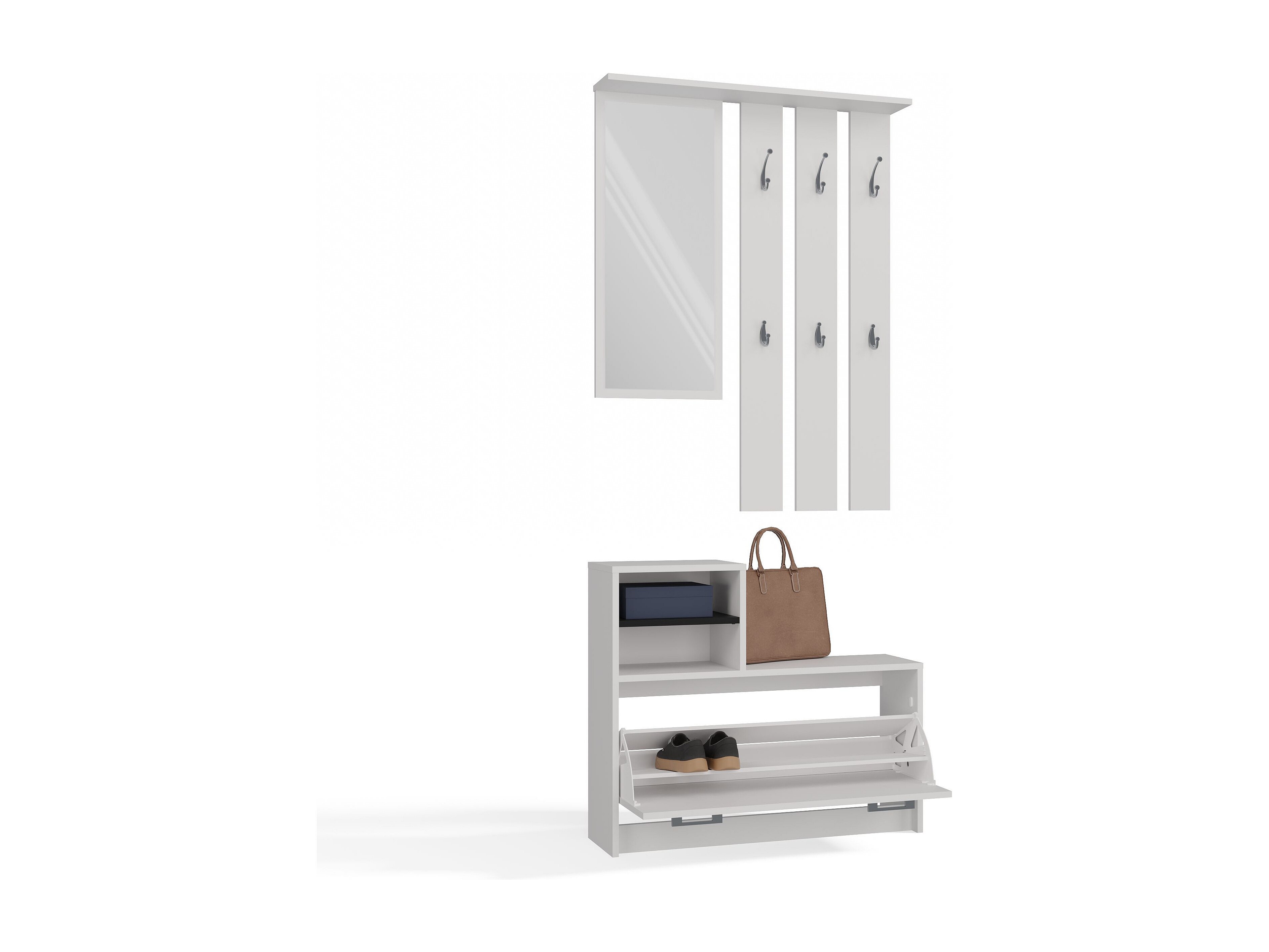 Mobile ingresso con specchio e scarpiera bianco MIT5