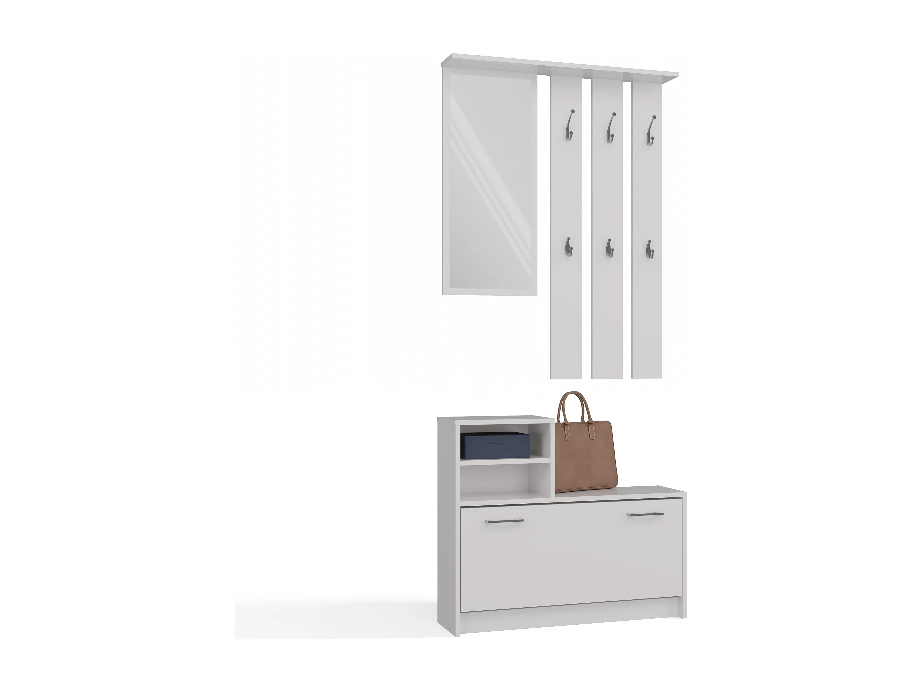 Armadio con specchio e panca - 90 x 34,5 x 190 cm - con scarpiera + ganci + cassetto - bianco
