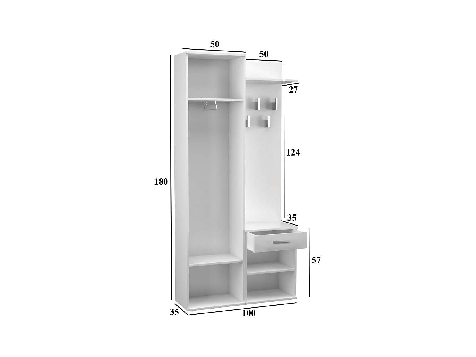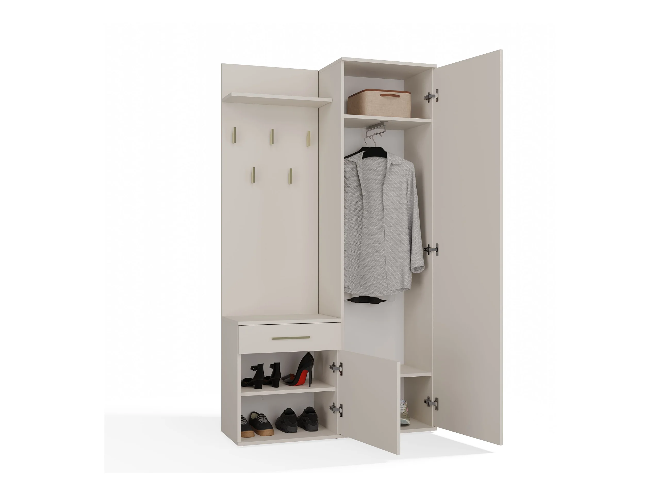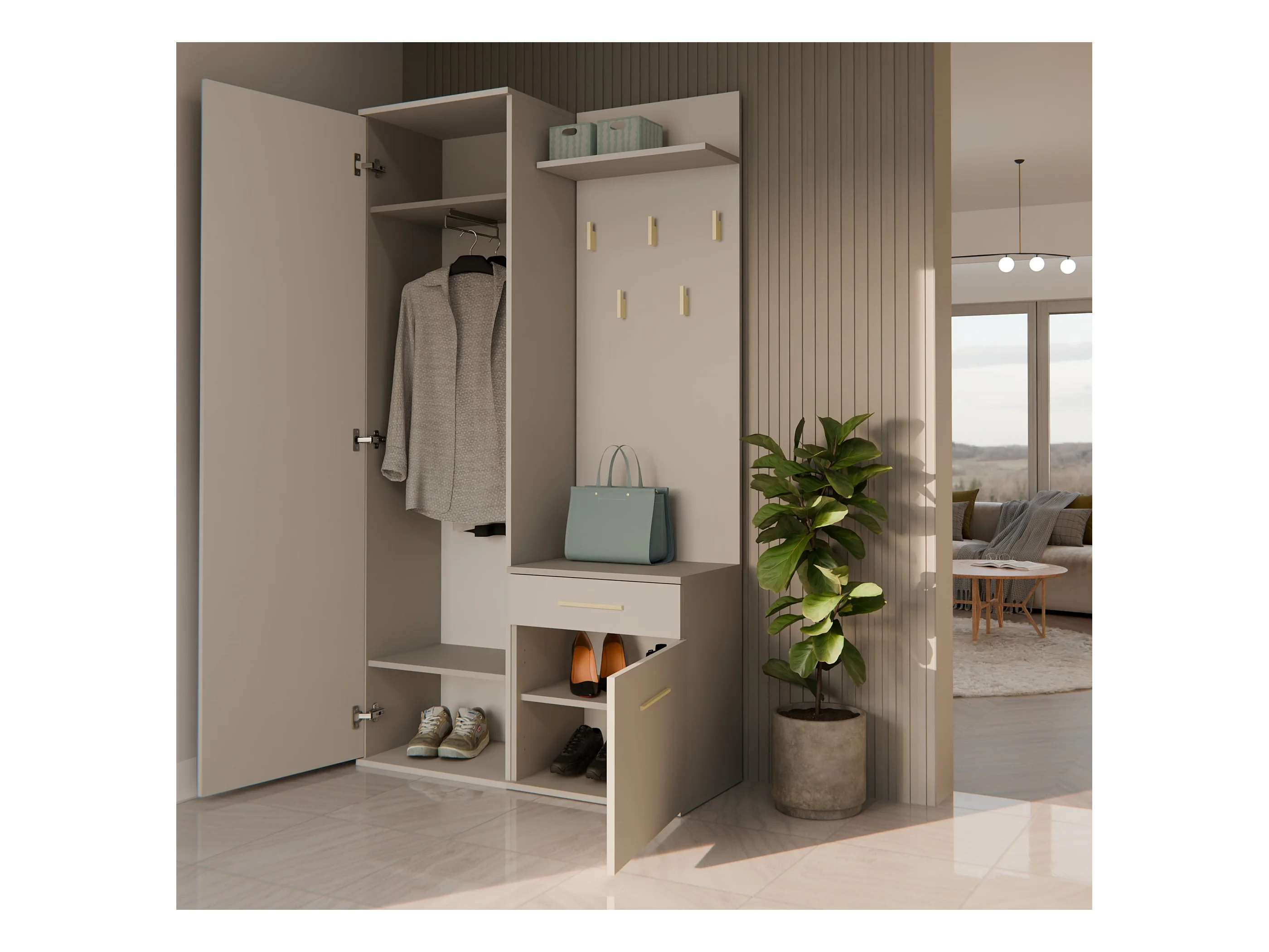 Set guardaroba/guardaroba con scarpiera + 4 ganci + 1 cassetto e 2 ante - 108,5 x 35 x 180 cm - Truciolato - Naturale
