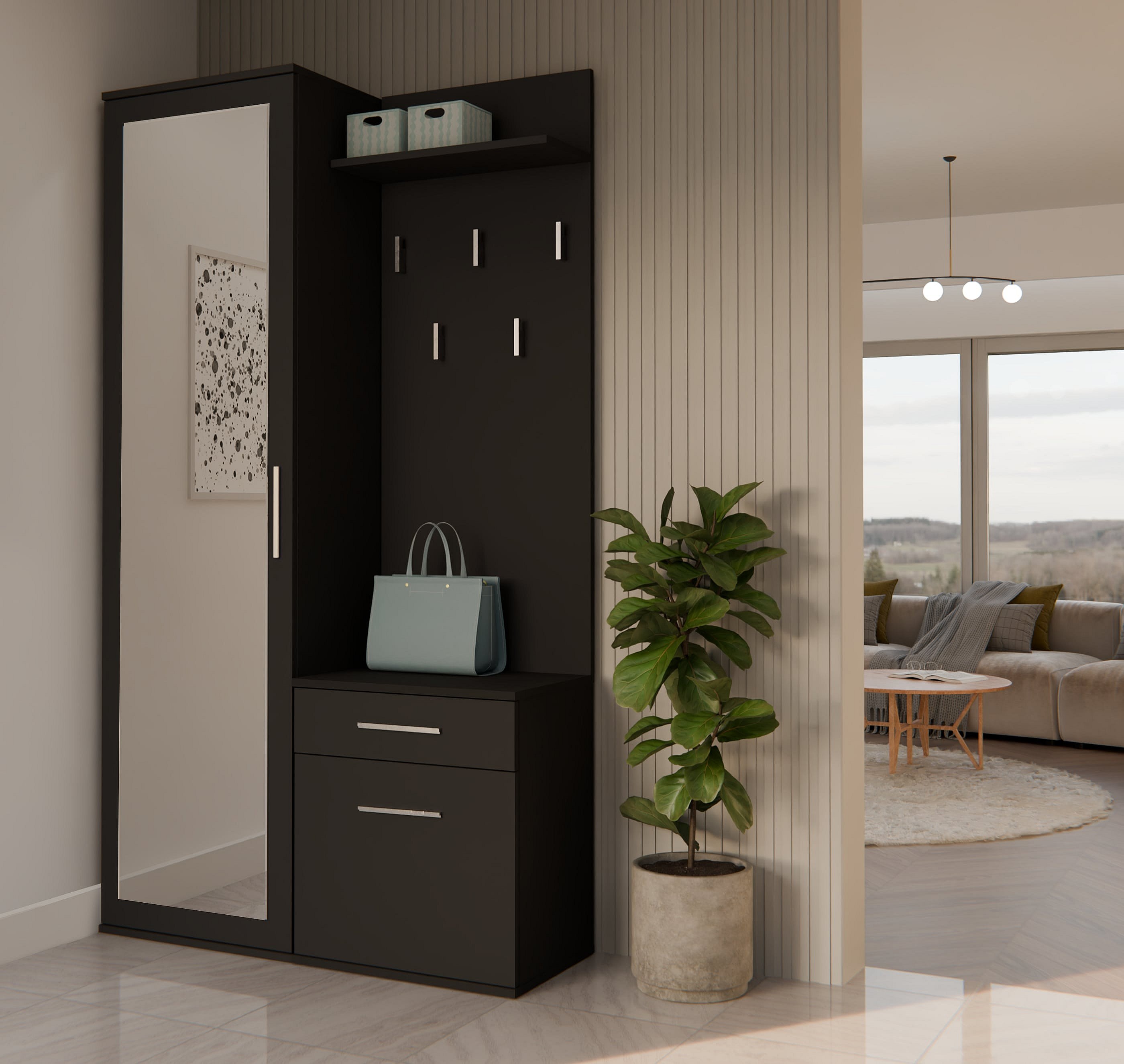Mobile ingresso con specchio 85x180 cm nero MIT1