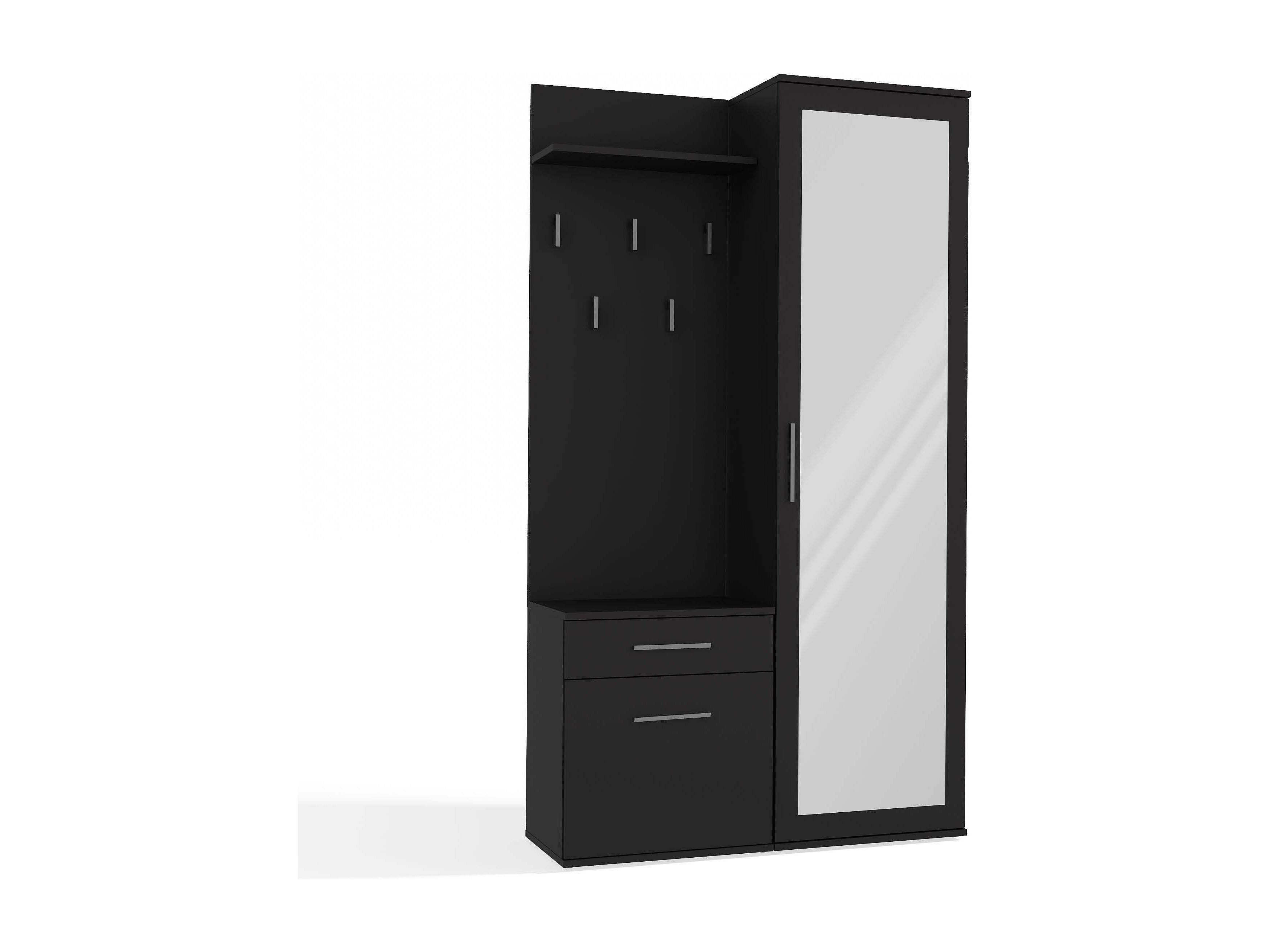 Set da ingresso con appendiabiti, specchio, panca e contenitore, MDF e truciolato, nero (105x40x191,5cm)