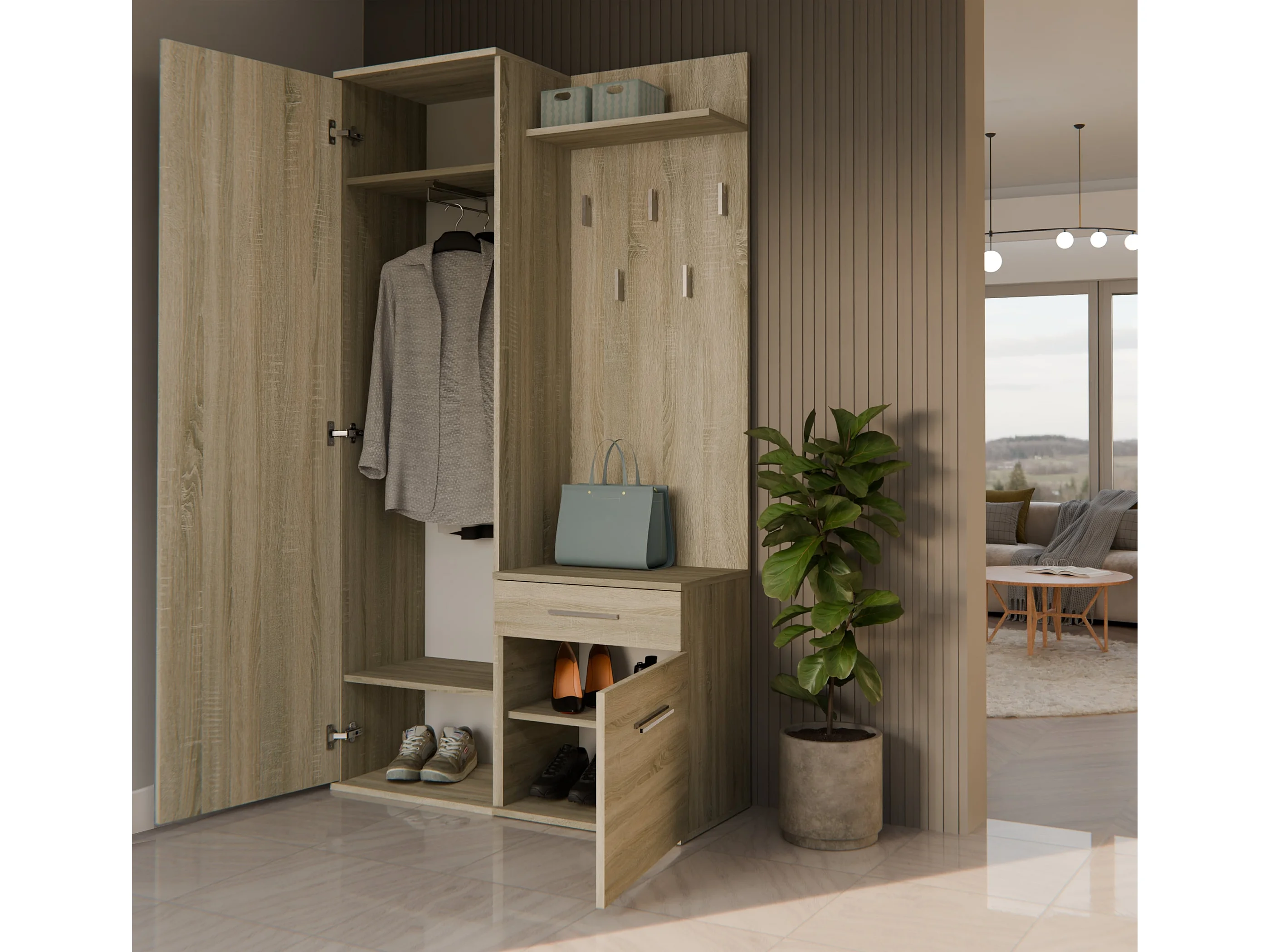 Set guardaroba/guardaroba con scarpiera + 4 ganci + 1 cassetto e 2 ante - 108,5 x 35 x 180 cm - Truciolato - Naturale