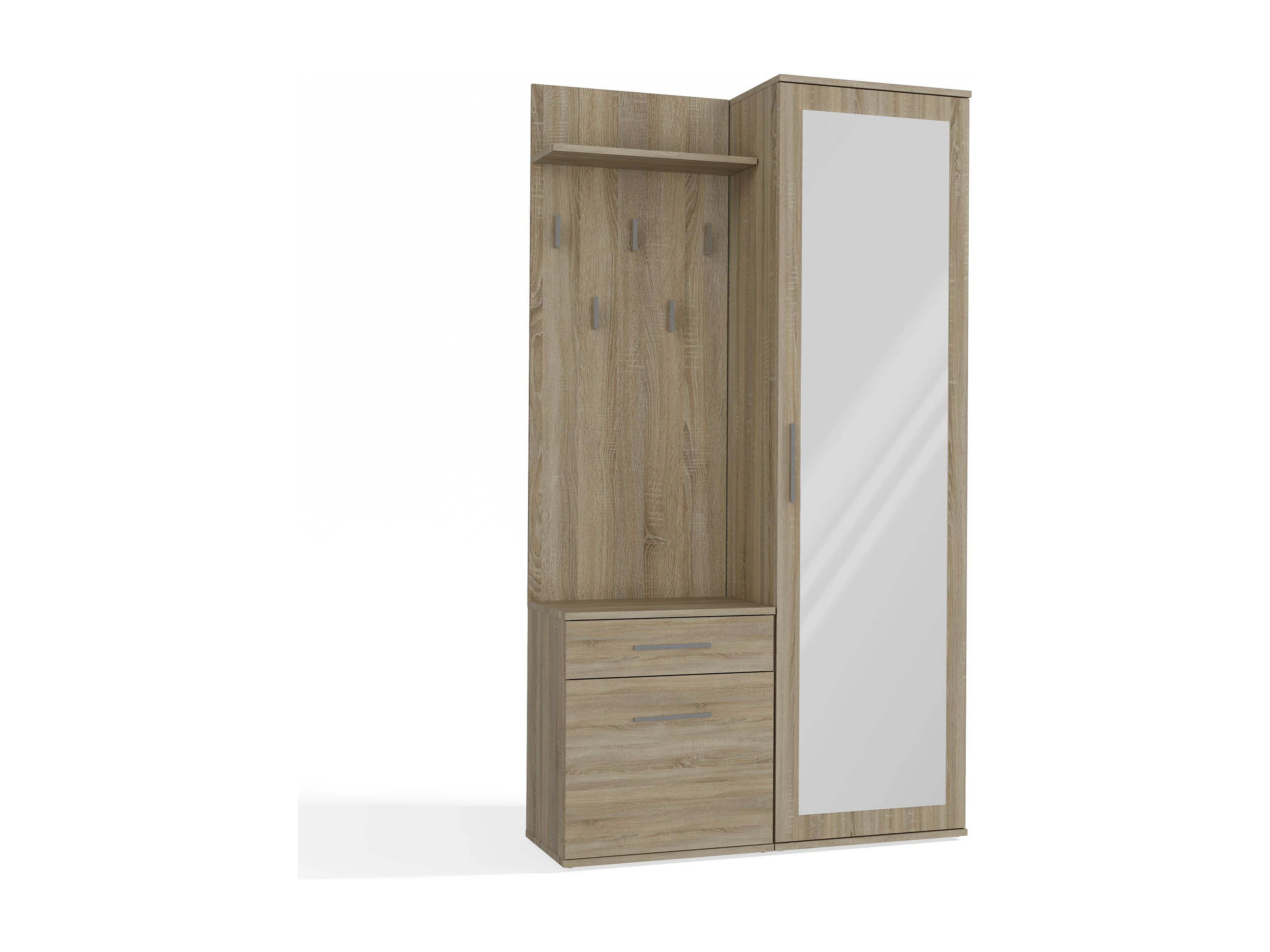Armadietto con specchio - 100 x 38,5 x 190 cm - con scarpiera + 1 cassetto + 1 armadio - truciolare - naturale