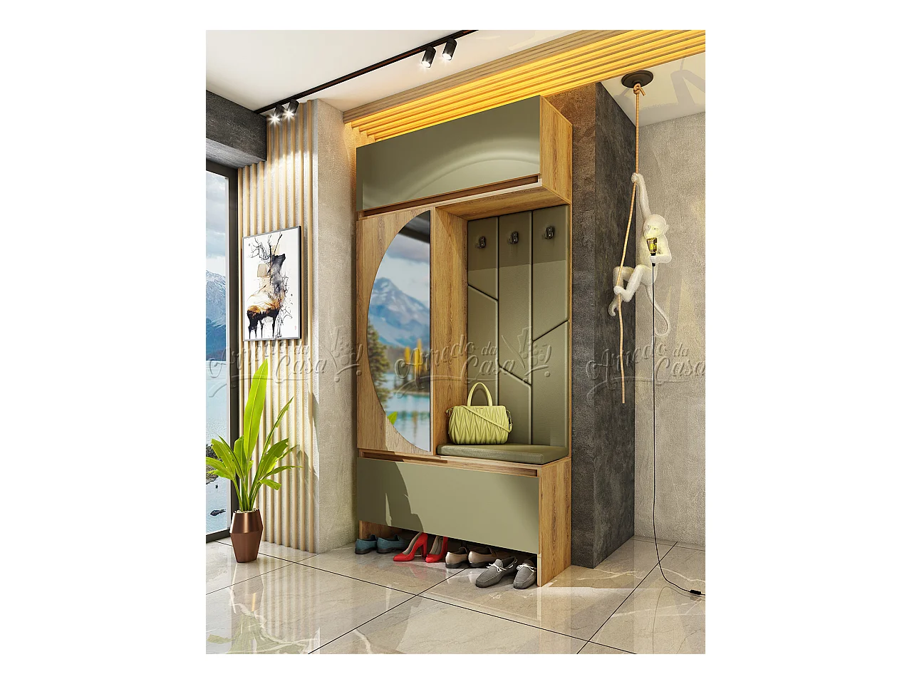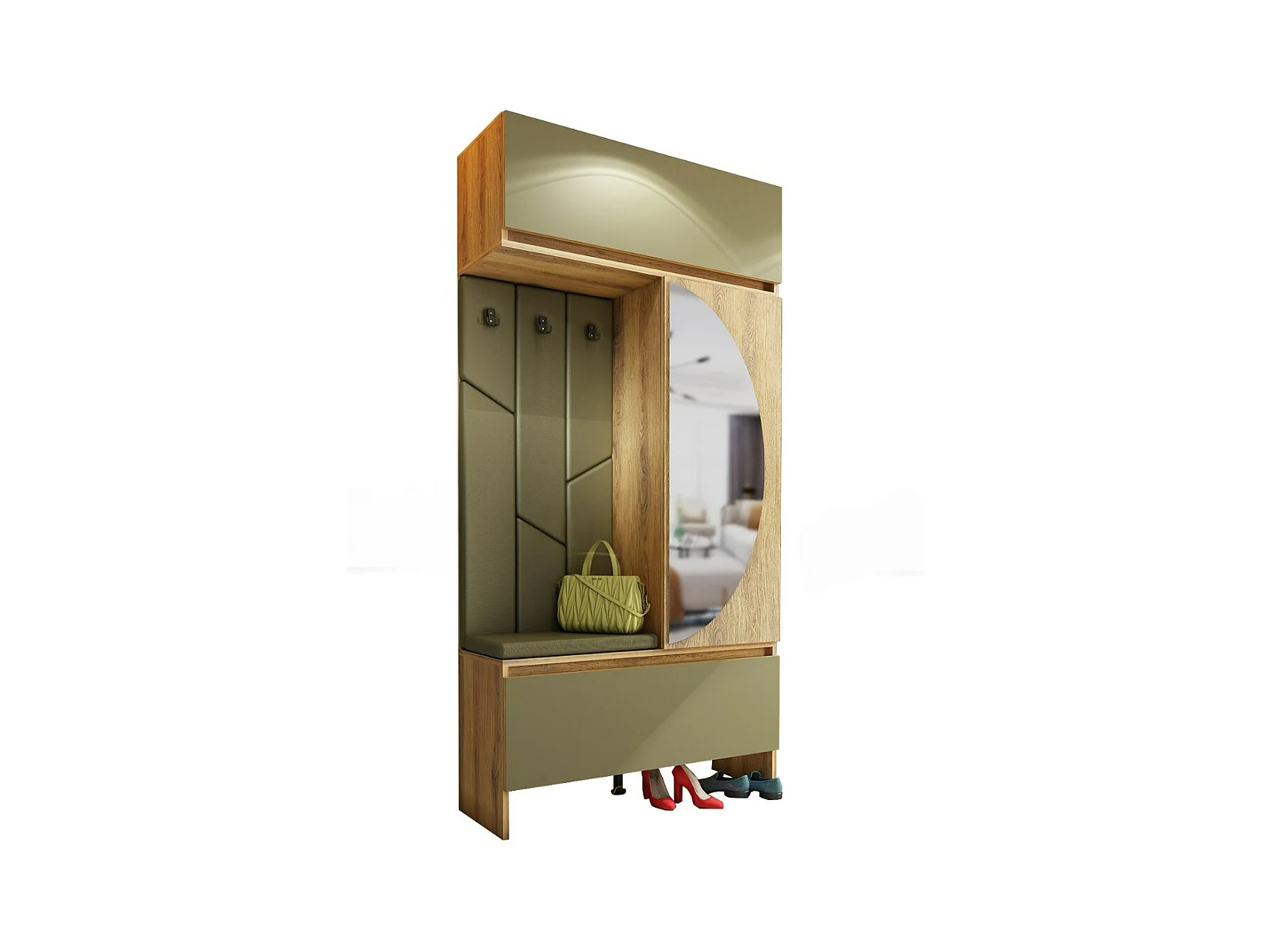 Mobile ingresso moderno con schienale imbottito 110x220x37,5 cm rovere naturale e verde oliva IU33