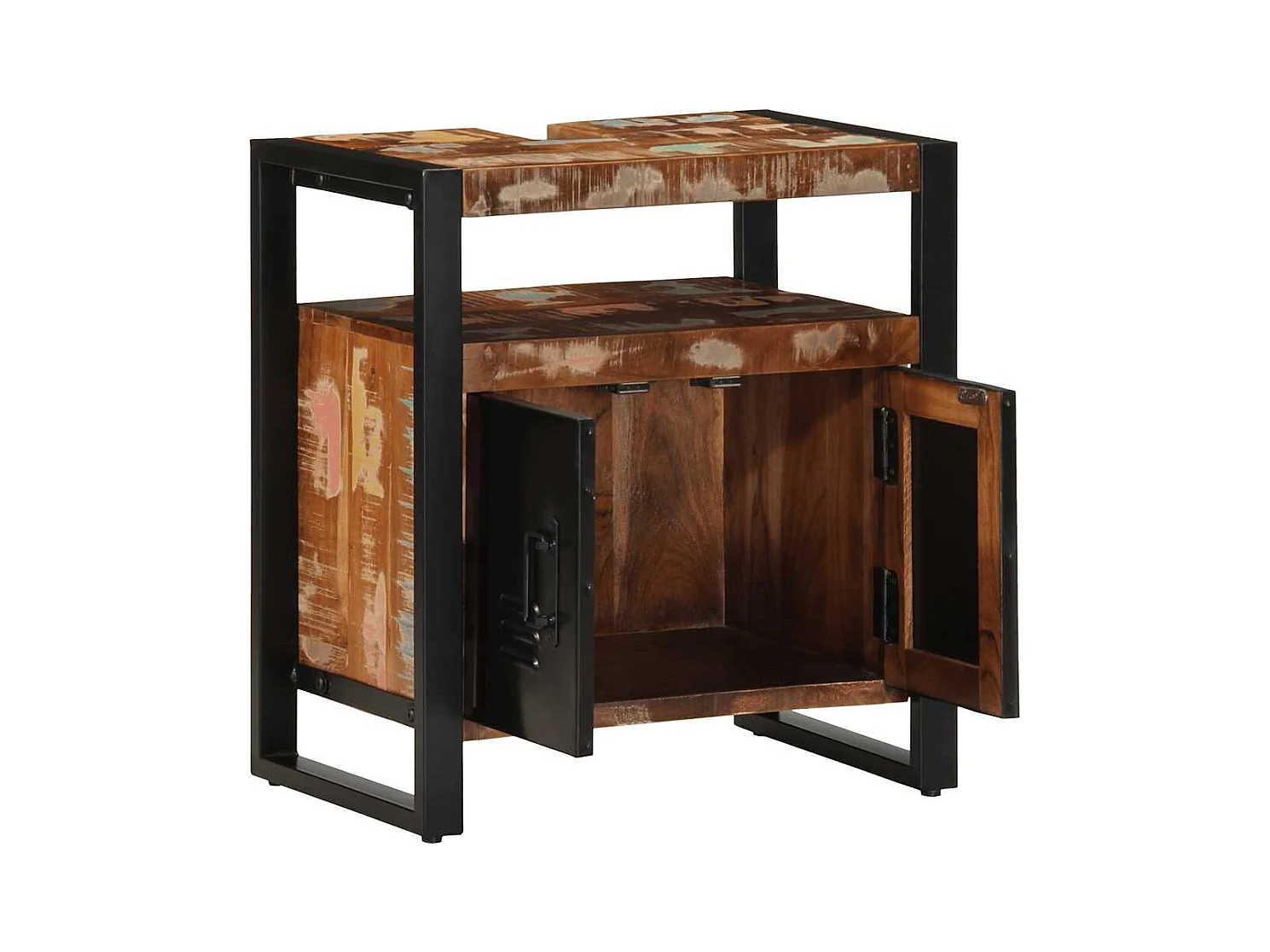 Mobile da bagno in legno massello di acacia e ferro