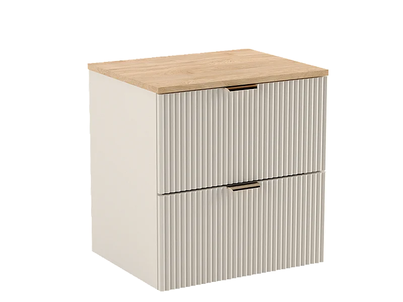 Mobile lavabo in cashmere con piano in noce 60 cm Frontali scanalati