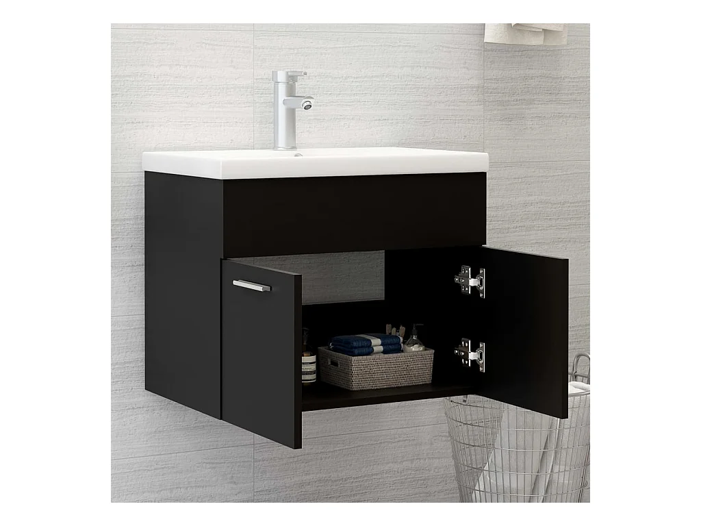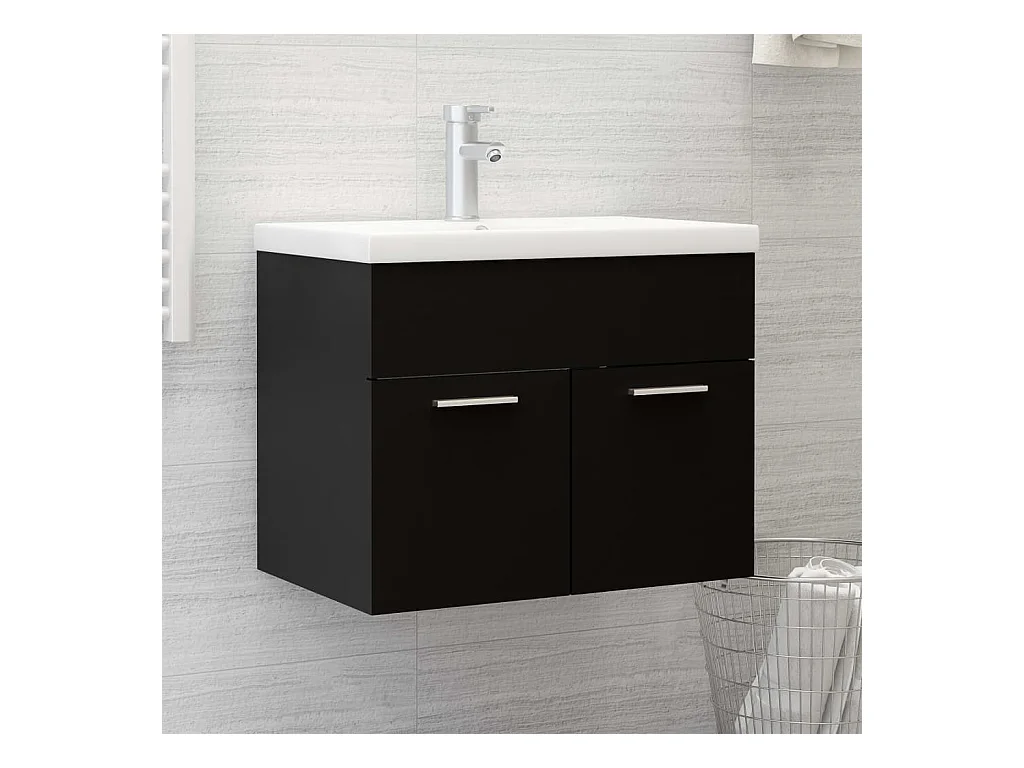 Mobile da Bagno con Lavabo Integrato Nero in Truciolato