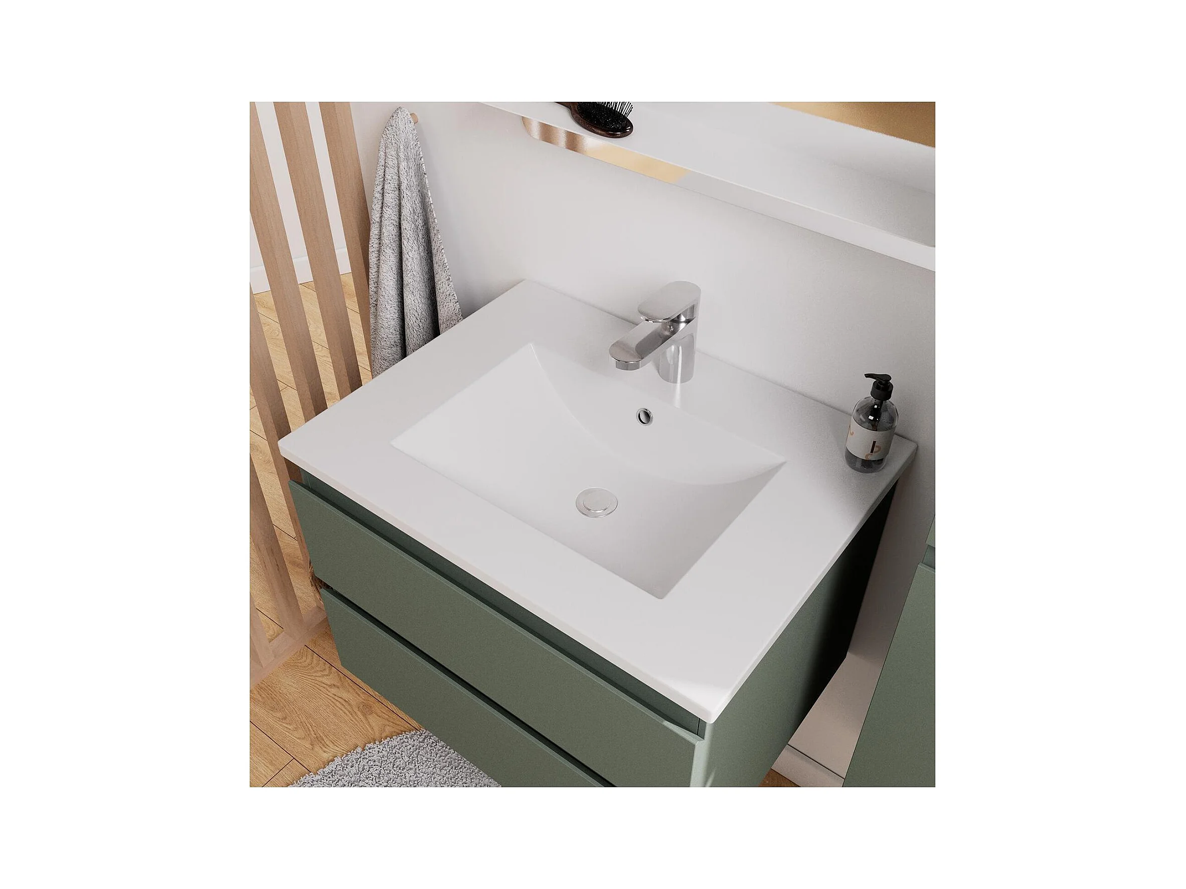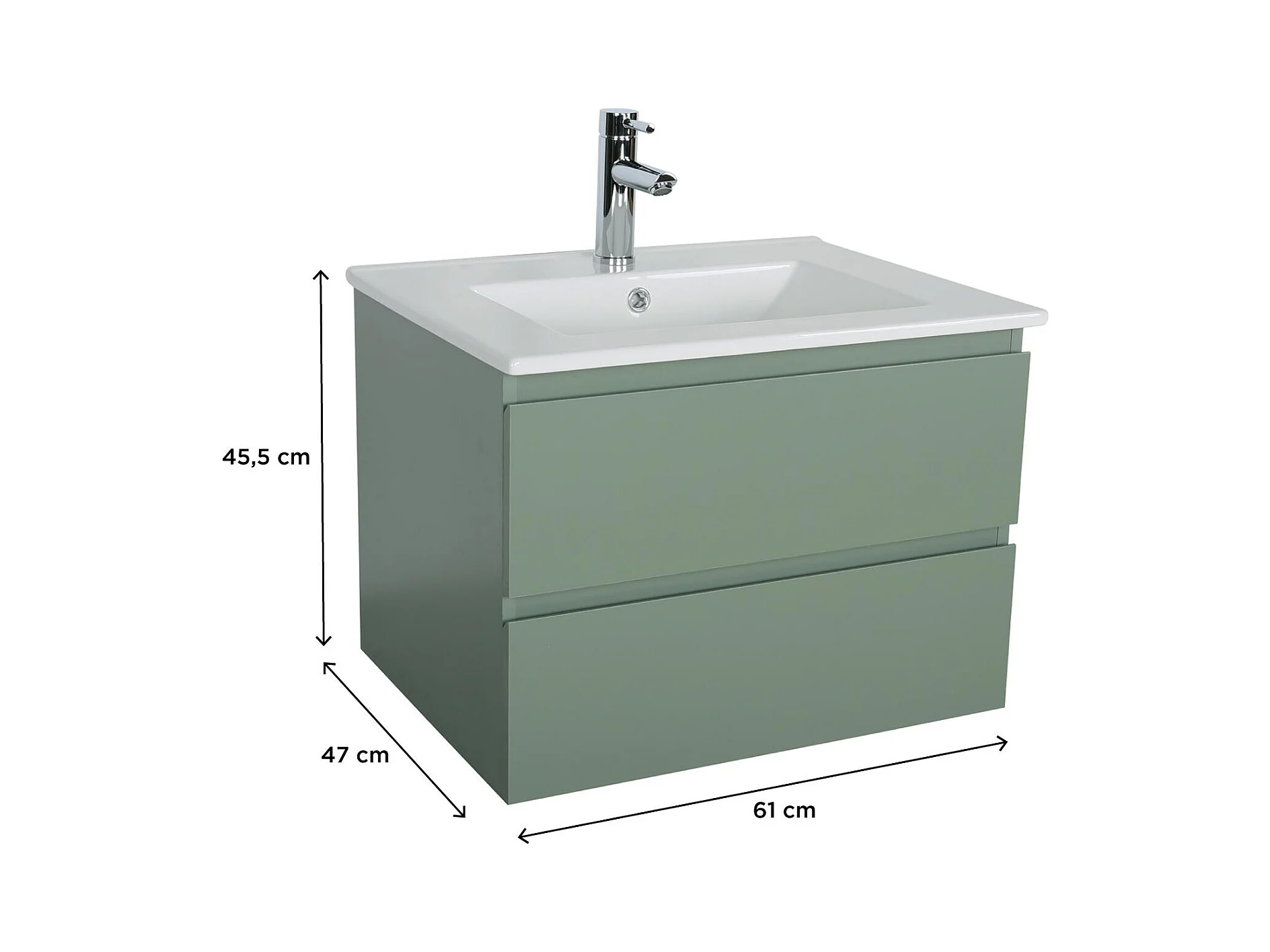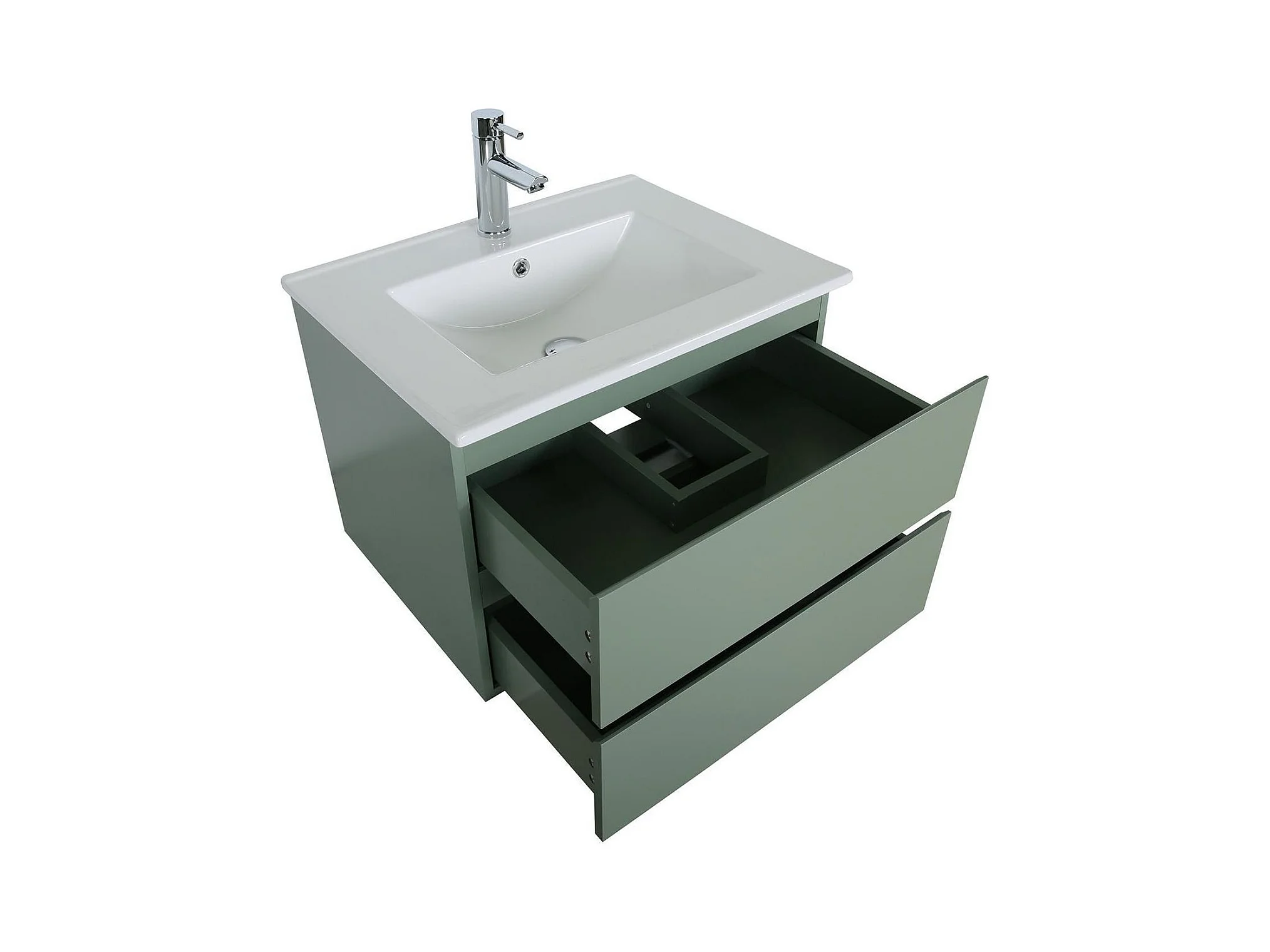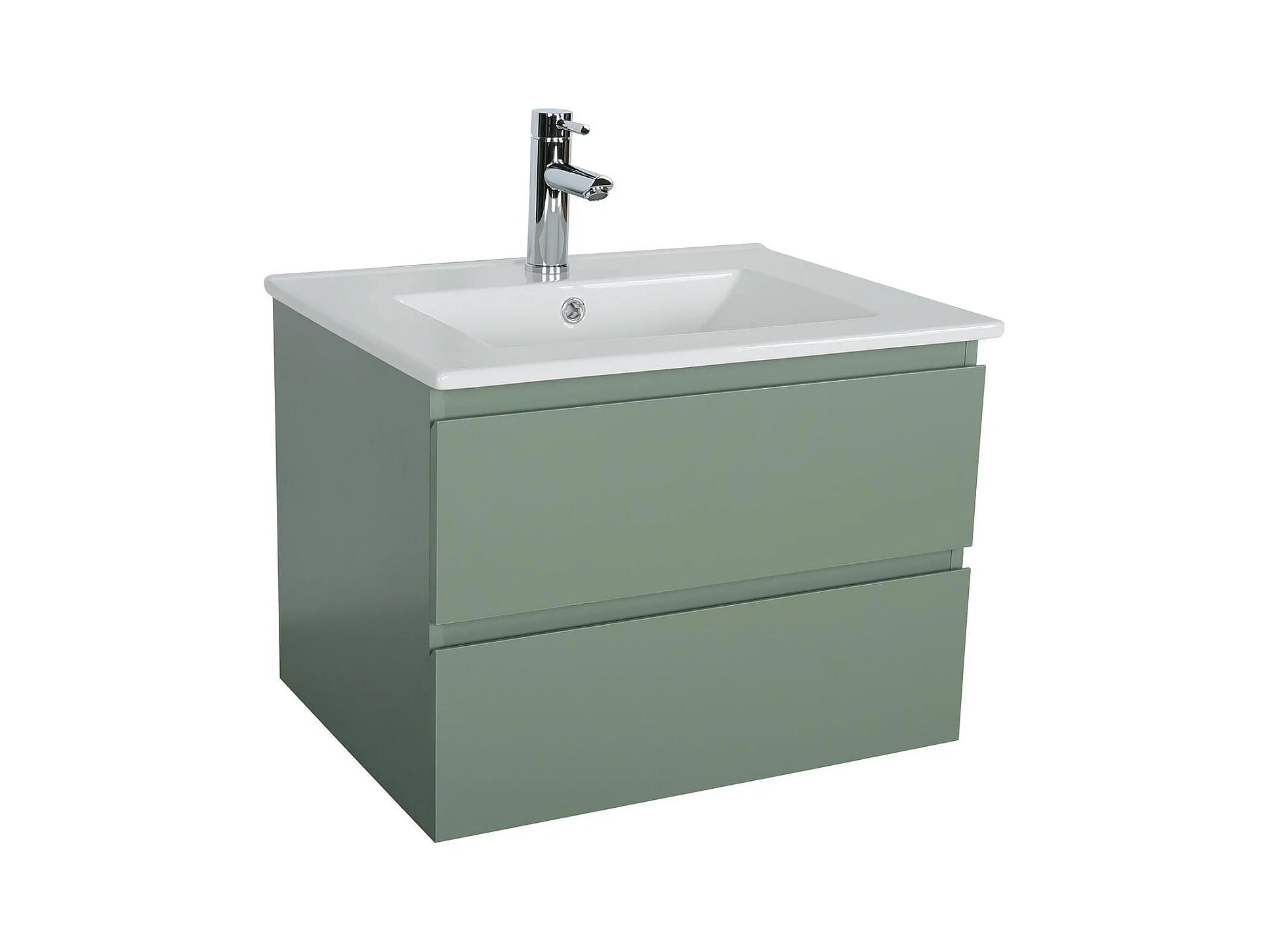 Mobile per bagno sospeso con scanalature con lavabo da incasso e colonna - Verde opaco - 60 cm - ZEVINI