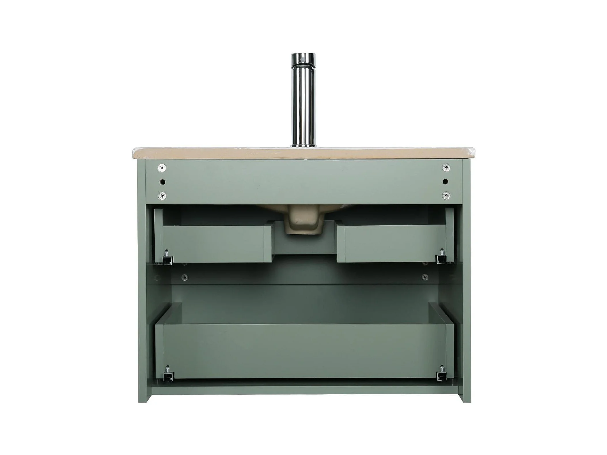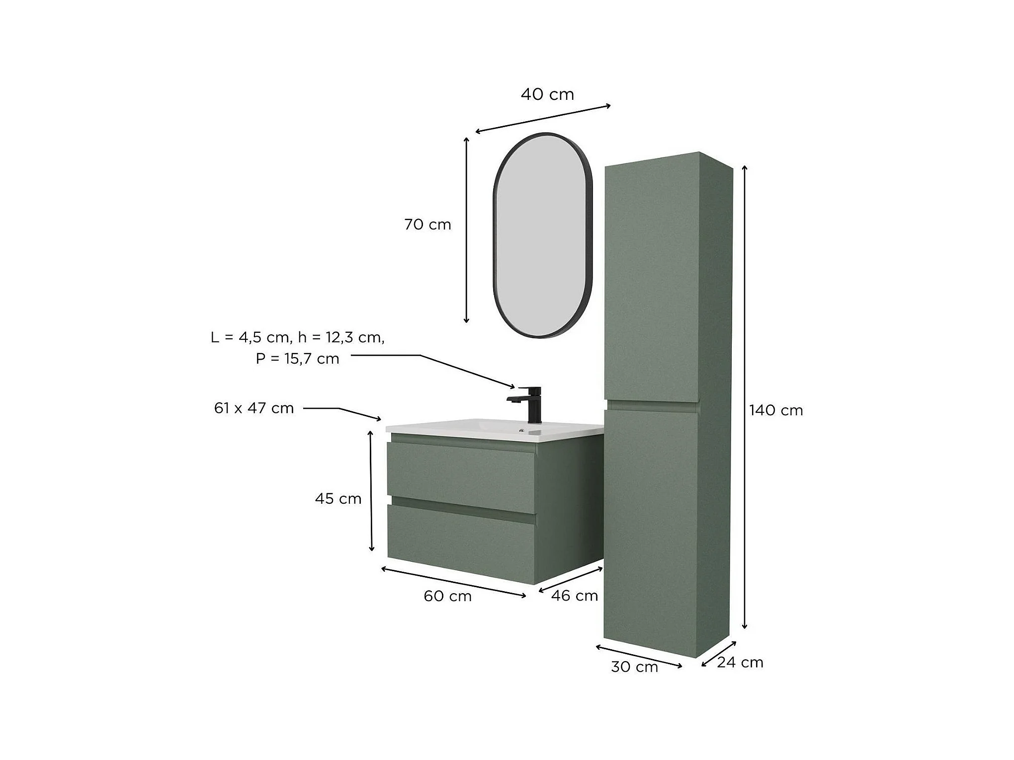 Mobile per bagno sospeso con scanalature con lavabo da incasso e colonna - Verde opaco - 60 cm - ZEVINI