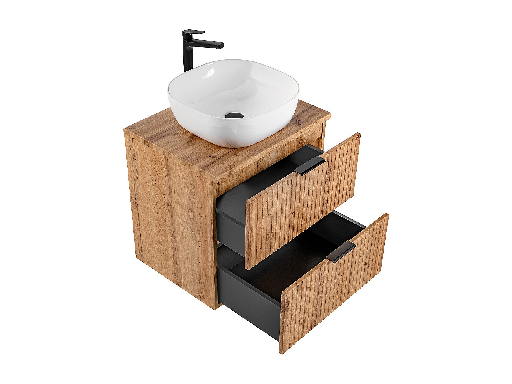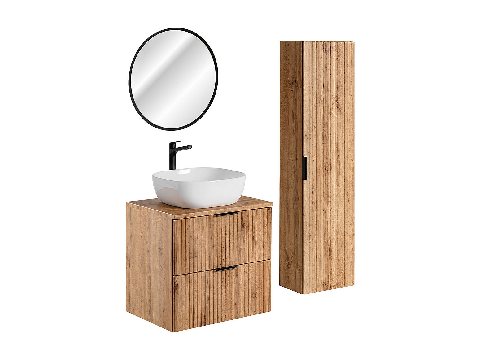 Set di lavabo singolo da 60 cm con specchio LED e colonna in legno Adriel
