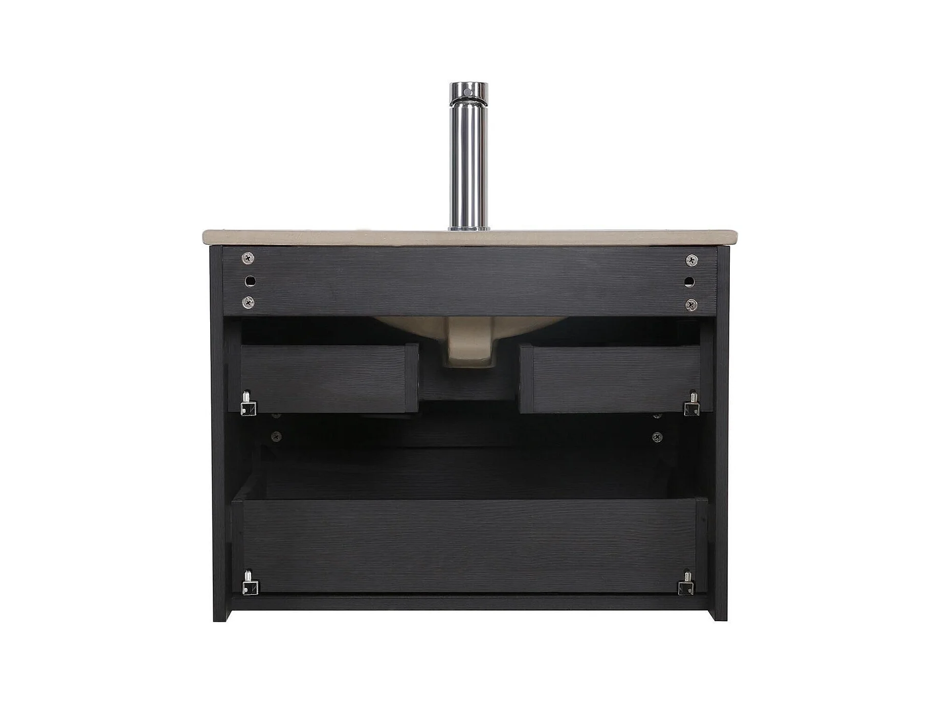 Lavabo sospeso con vasca in ceramica nera, piano in pietra sinterizzata, mobile in multistrato a 2 ante (61x50x55,1cm)