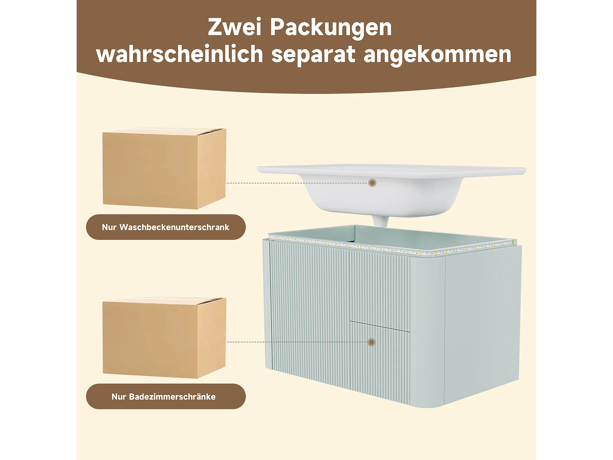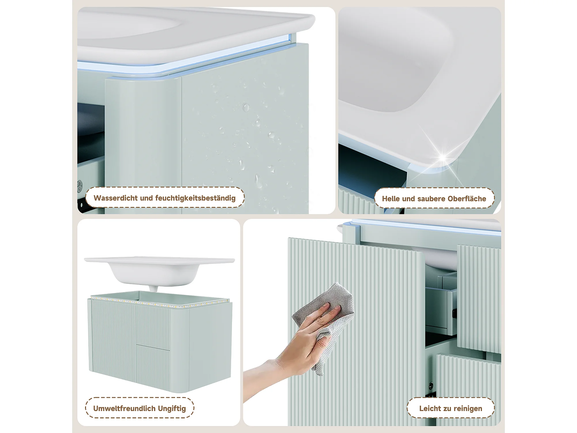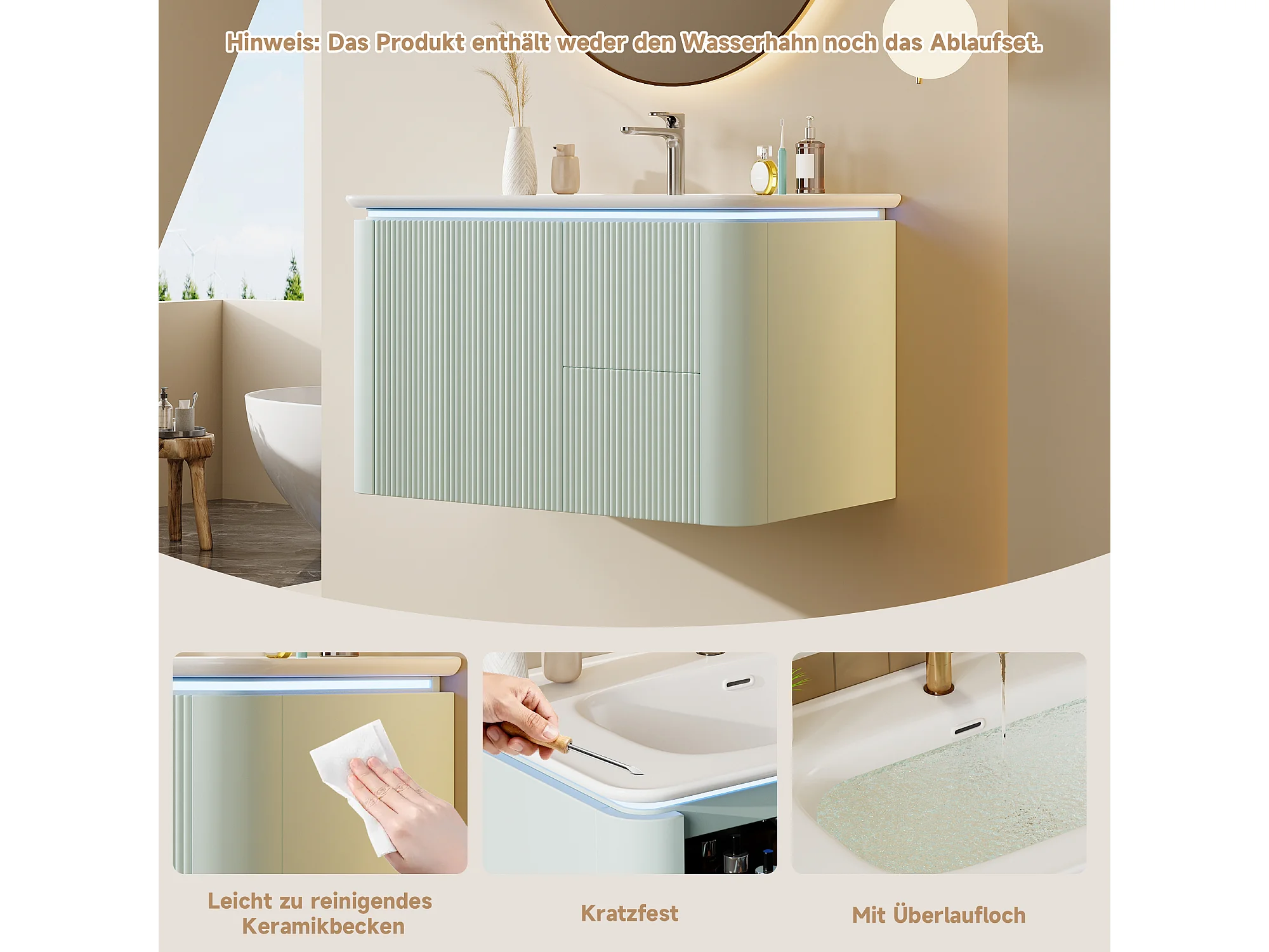 Mobile lavabo sospeso in ceramica con lavabo singolo - 80,5 x 47 x 51 cm - finitura laccata - con LED + 3 cassetti - ceramica + MDF - verde
