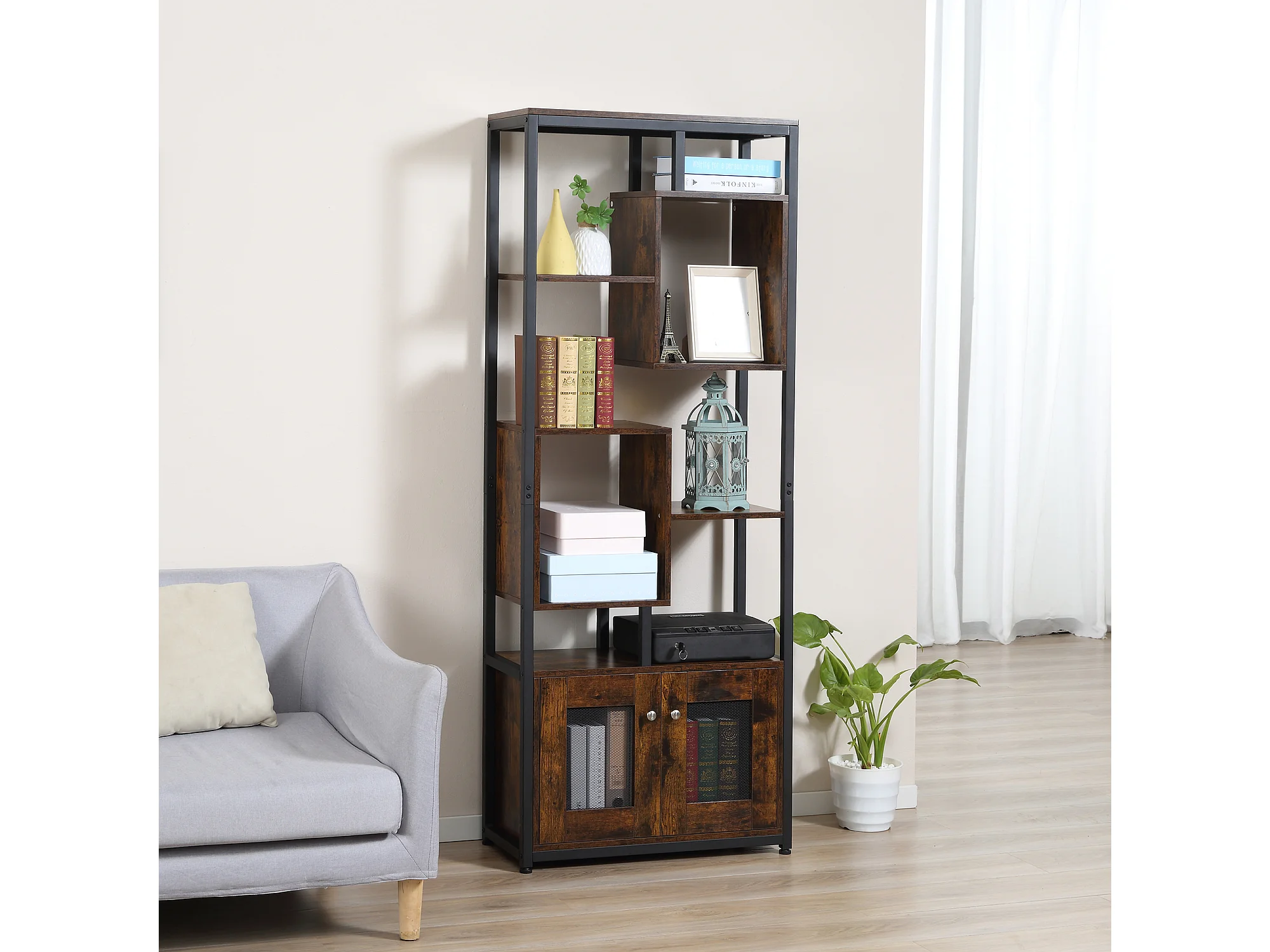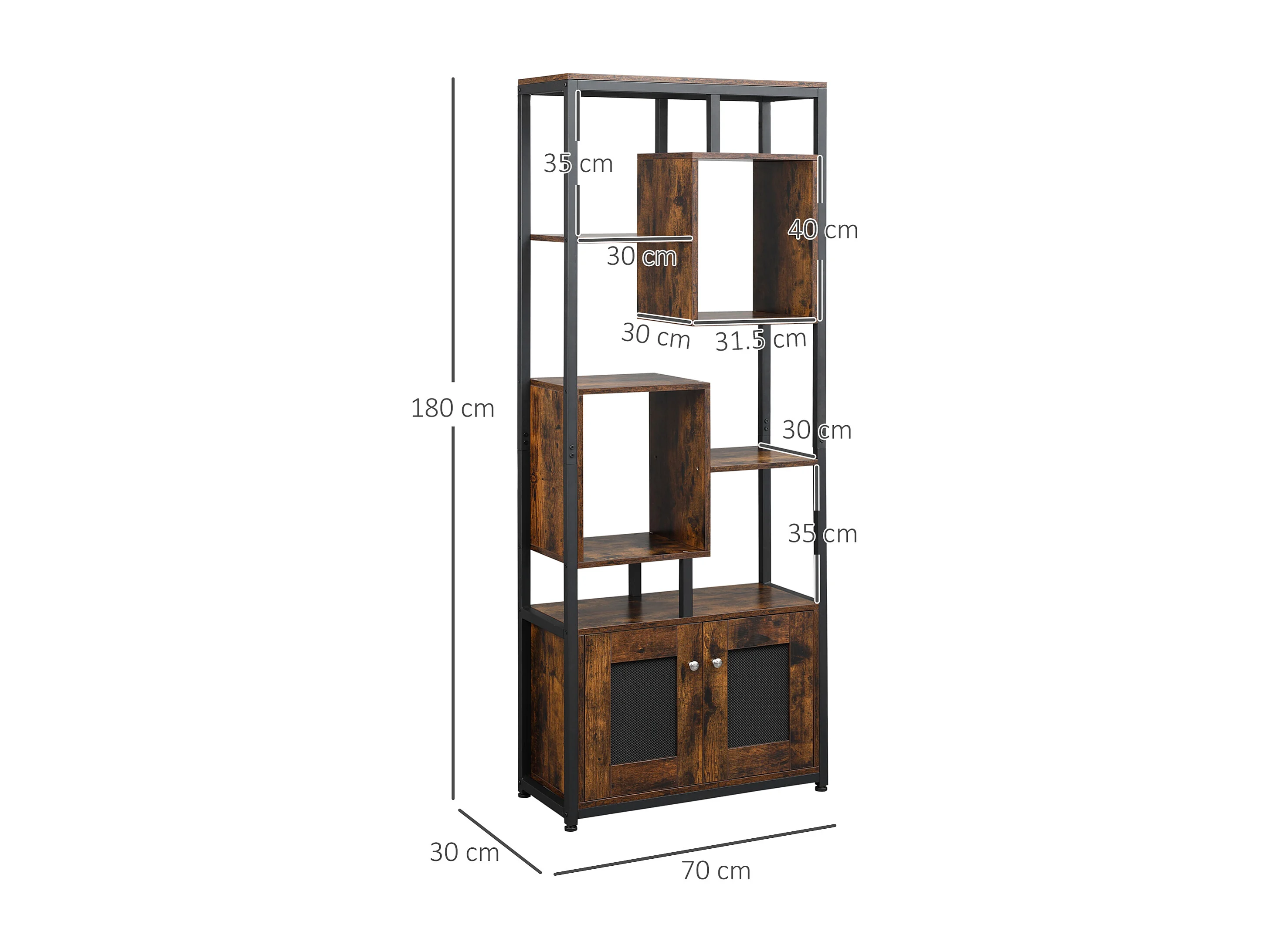 Mobile libreria 8 ripiani armadietto 2 ante stile industriale