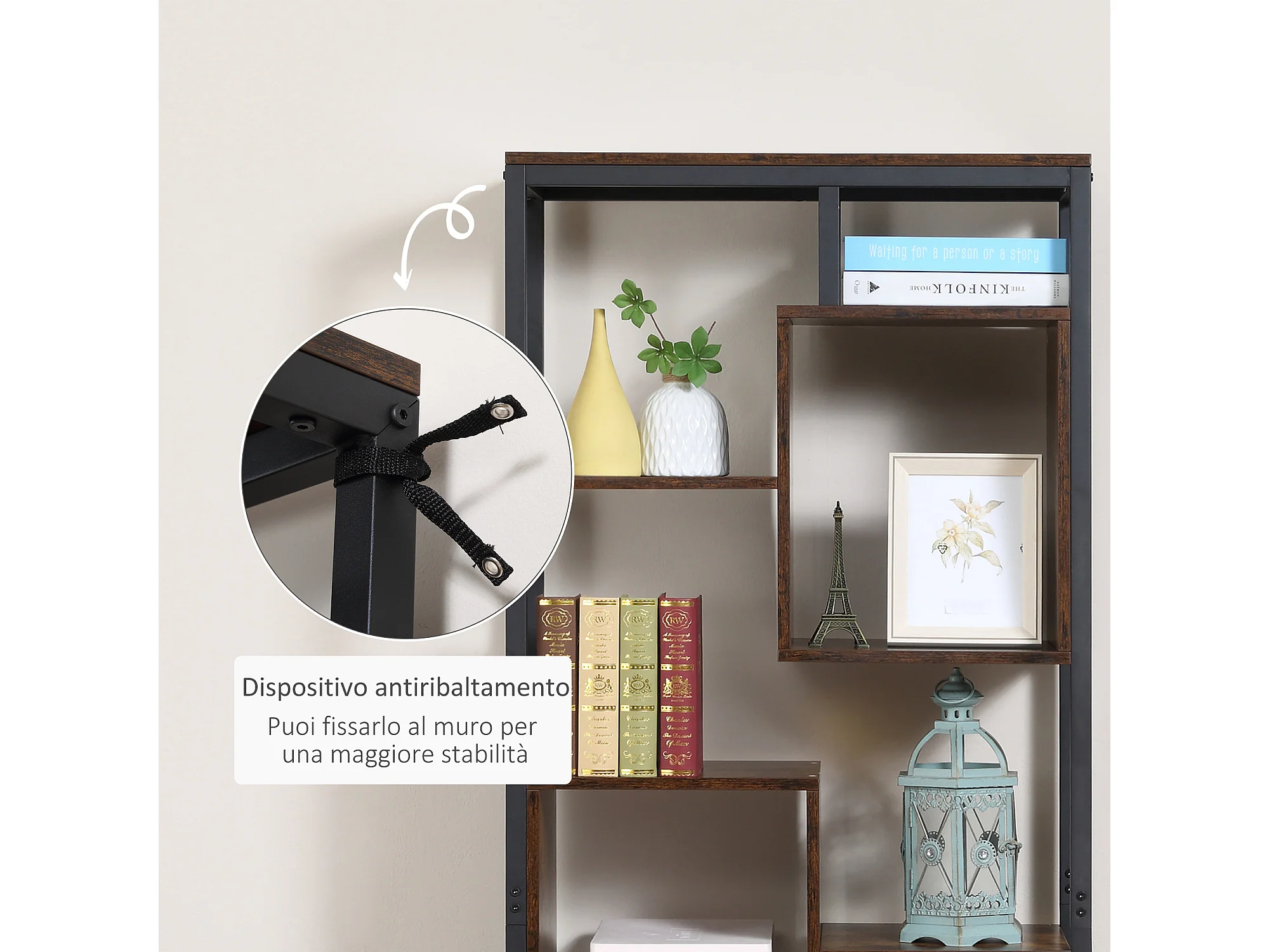 Libreria scaffale a 7 ripiani, libreria verticale salvaspazio struttura in acciaio